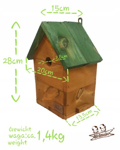 Oferowana budka przeznaczona jest - ze względu na średnicę otworu - dla dwóch ptaków: sikorki, wróble (średnica otworu 2,8CM ) a także inne ptaszki.