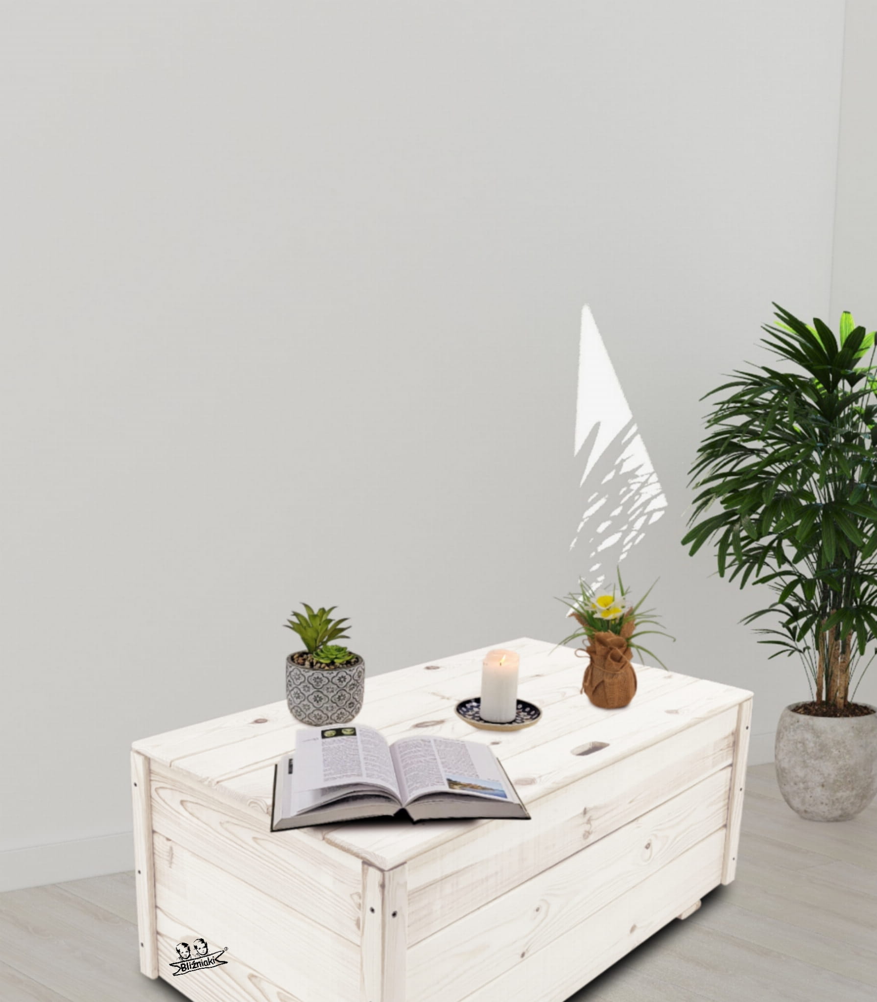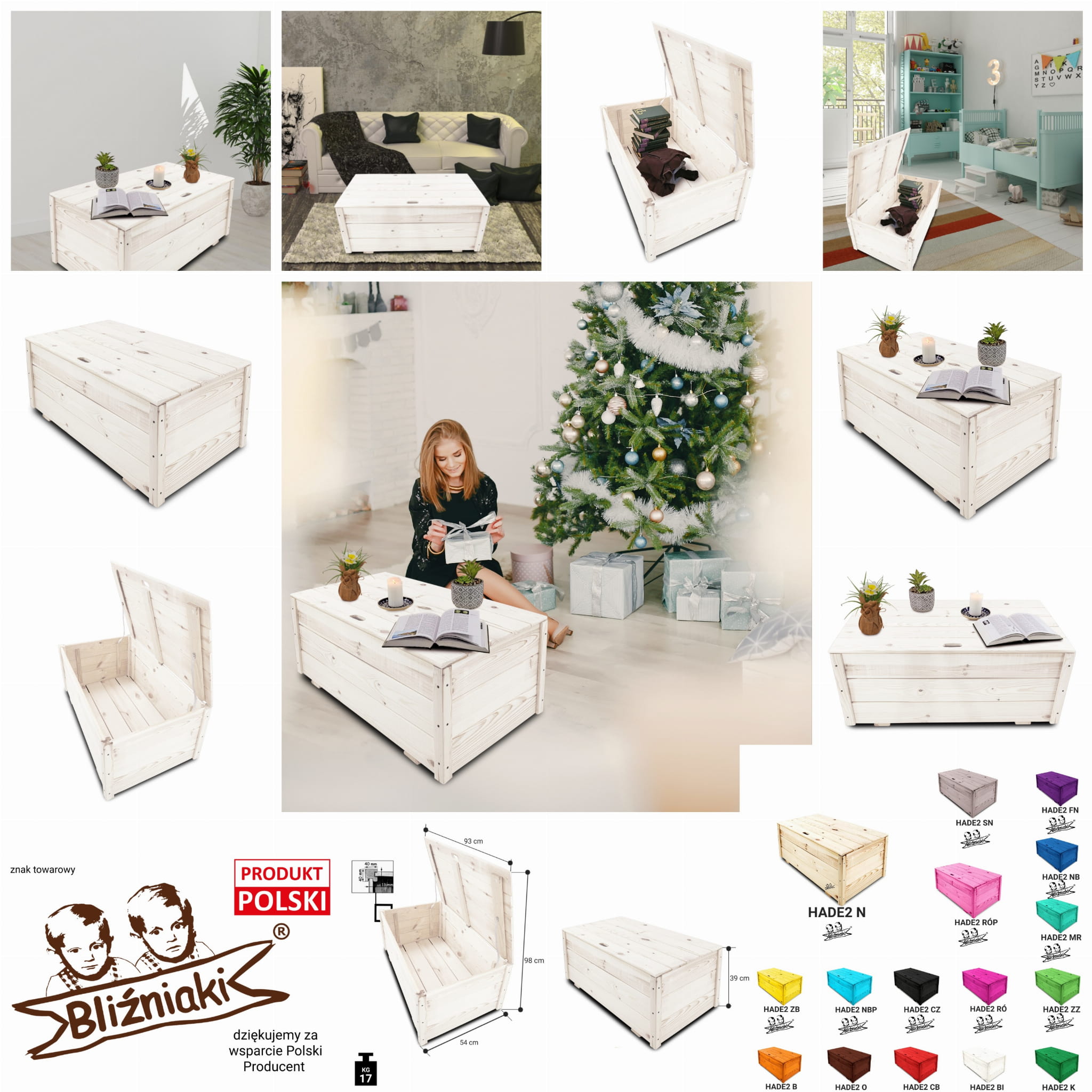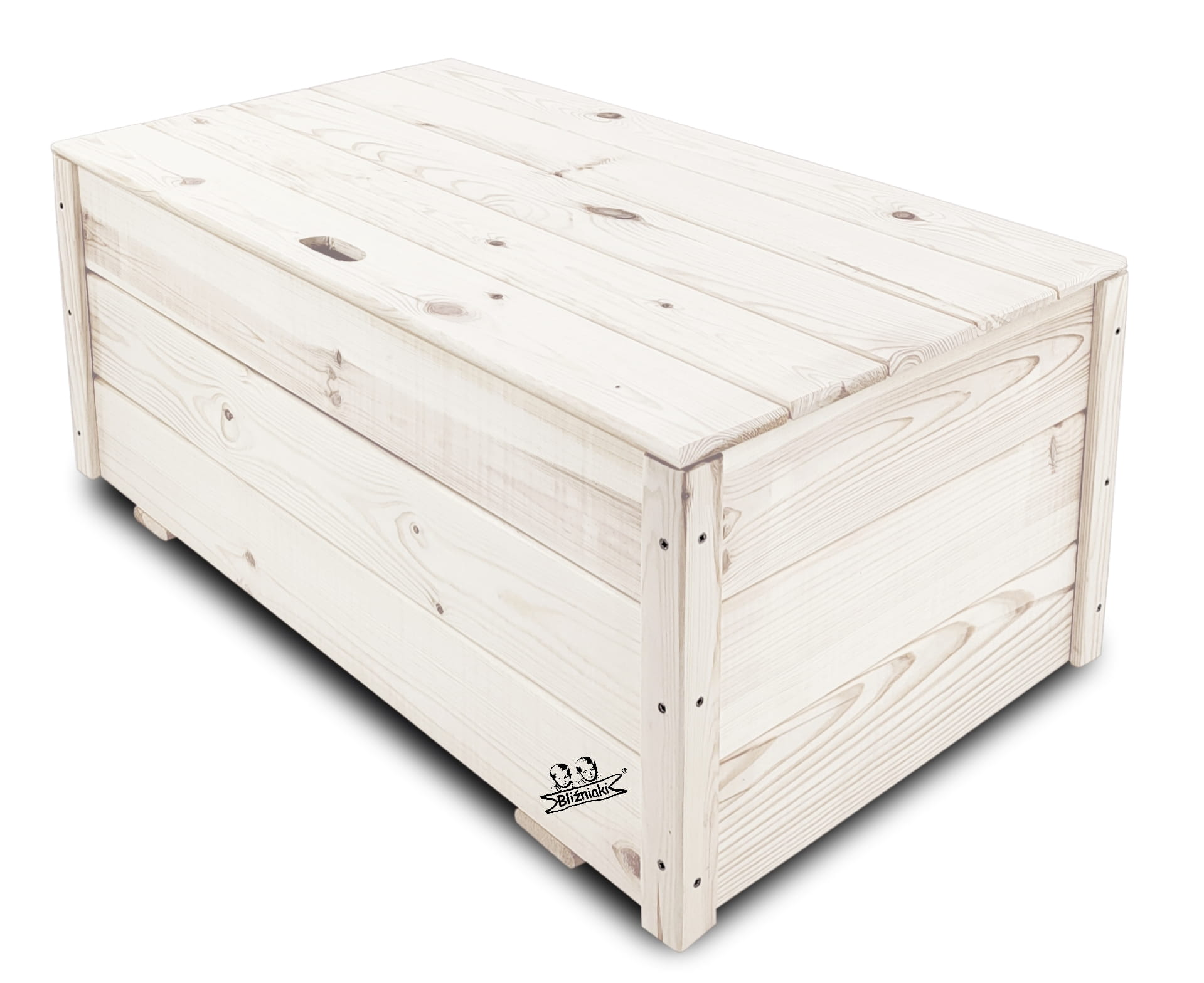 Biała Skrzynia Drewniana Komoda Ze Schowkiem Stolik kawowy do pokoju Mebel z funkcją przechowywania Kufer Na Różności Na Zewnątrz Wewnątrz HADE2 BI