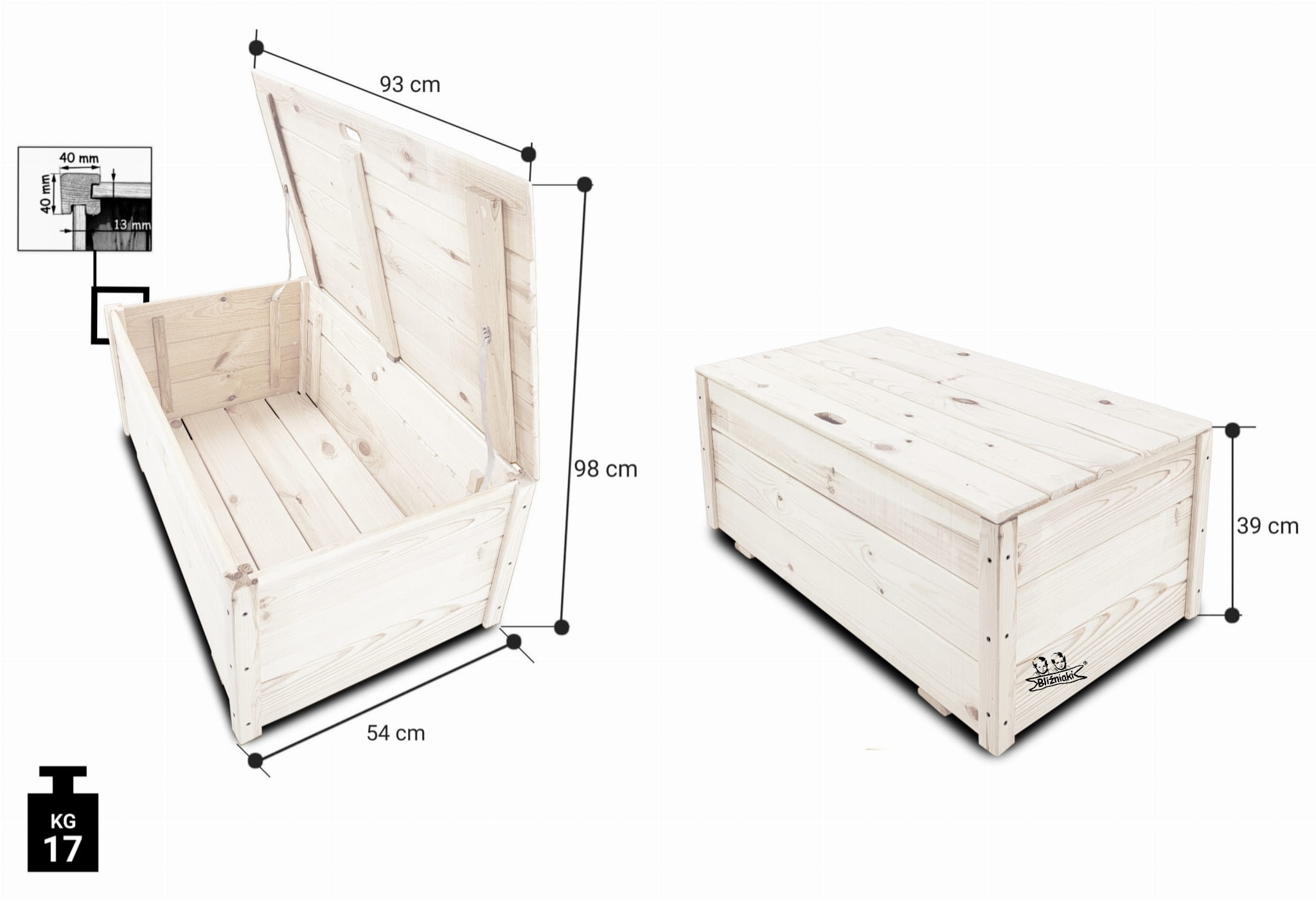 Poddane impregnacji drewno sprawia, że skrzynia HADE2 BI jest odporna na szkodliwe działanie wody oraz wilgoci, promieni UV, a także grzybami i pleśnią, może być więc przechowywana przez cały rok na zewnątrz, na tarasie, w ogrodzie, czy na balkonach .