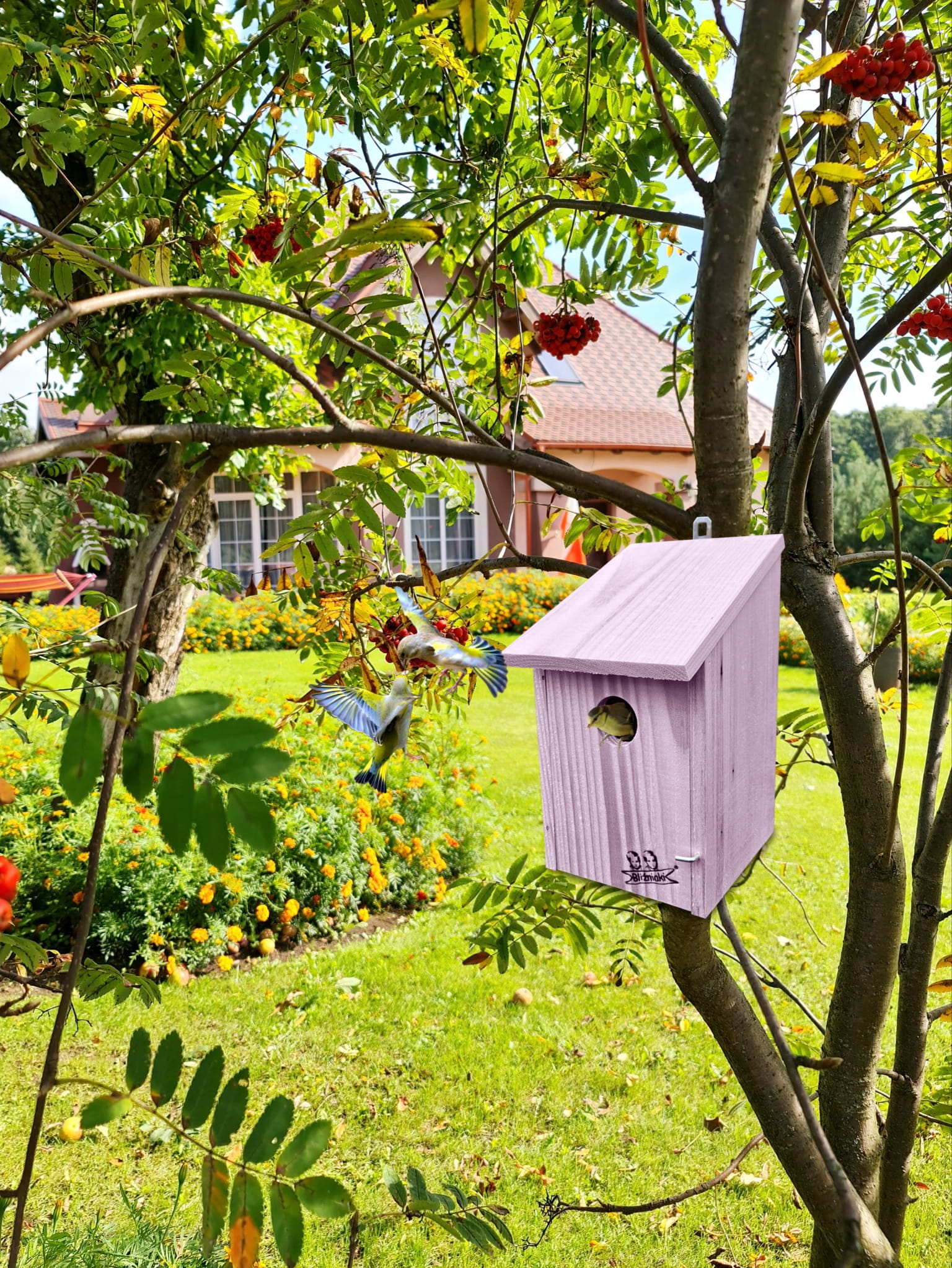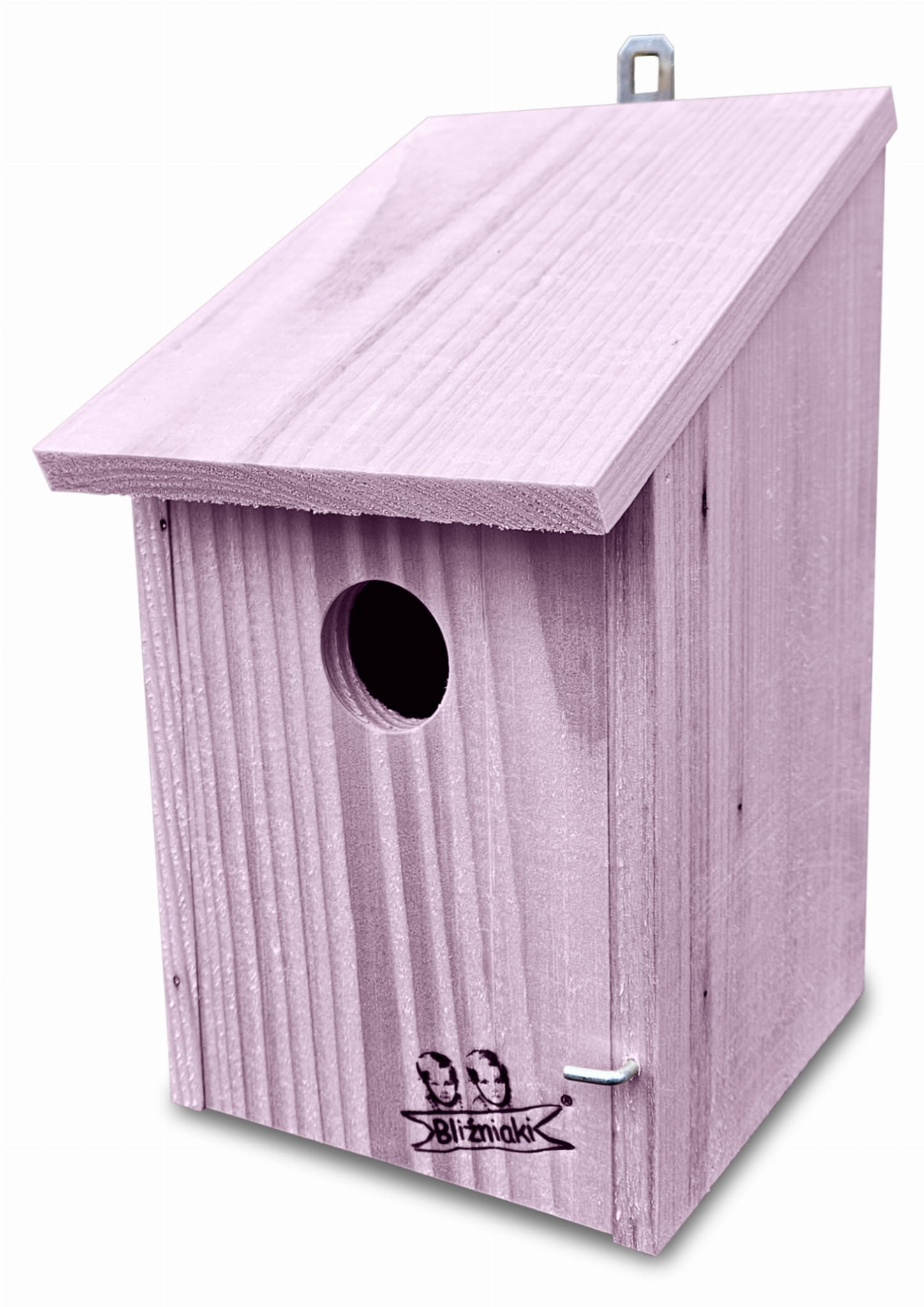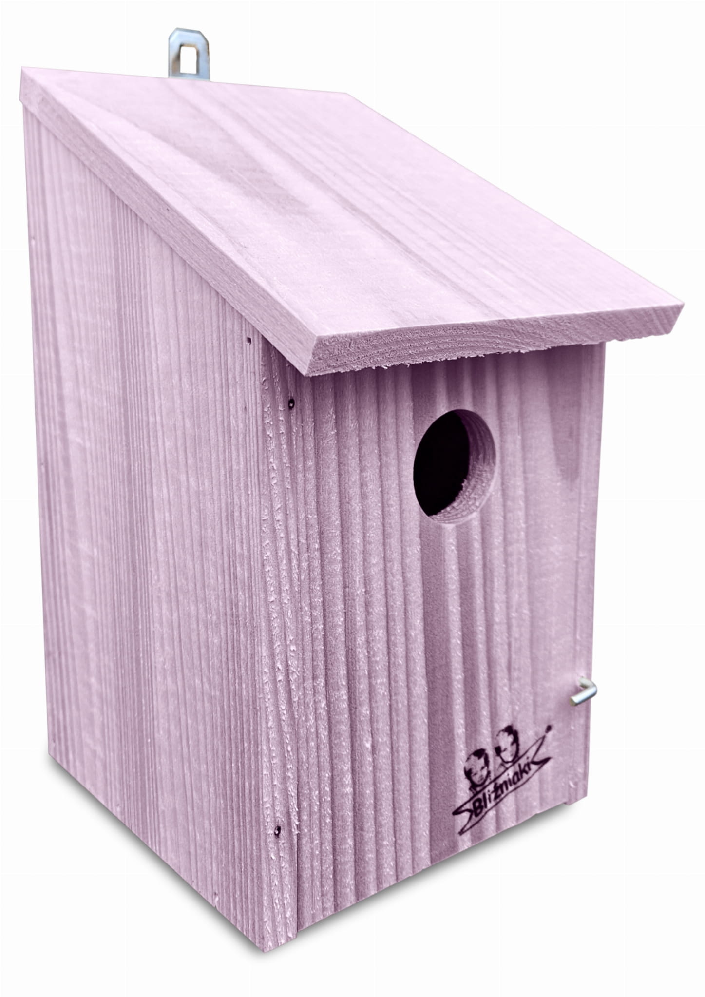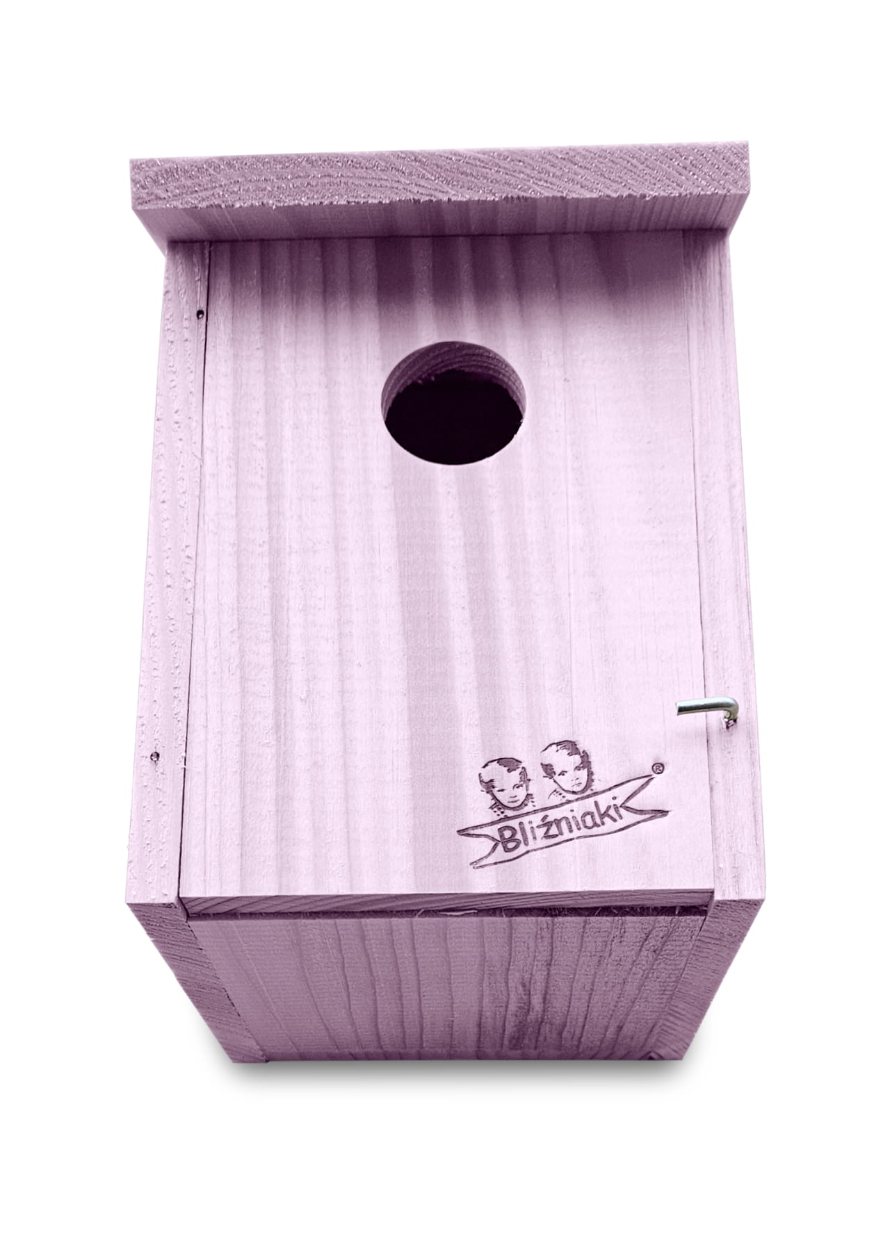 Produkt wykonany został z suszonego drewna sosnowego. Budka w kolorze PASTELOWYM FIOLETOWYM jest zabezpieczona metodą impregnowania. Środek na bazie wody użyty do impregnacji jest w pełni ekologiczny i bezpieczny dla ludzi i zwierząt. Zabezpieczone w taki sposób drewno sprawia, że budka lęgowa jest odporna na szkodliwe działanie wody oraz wilgoci, promieni UV, a także grzybów i pleśni, może być więc przechowywana przez cały rok na zewnątrz.
