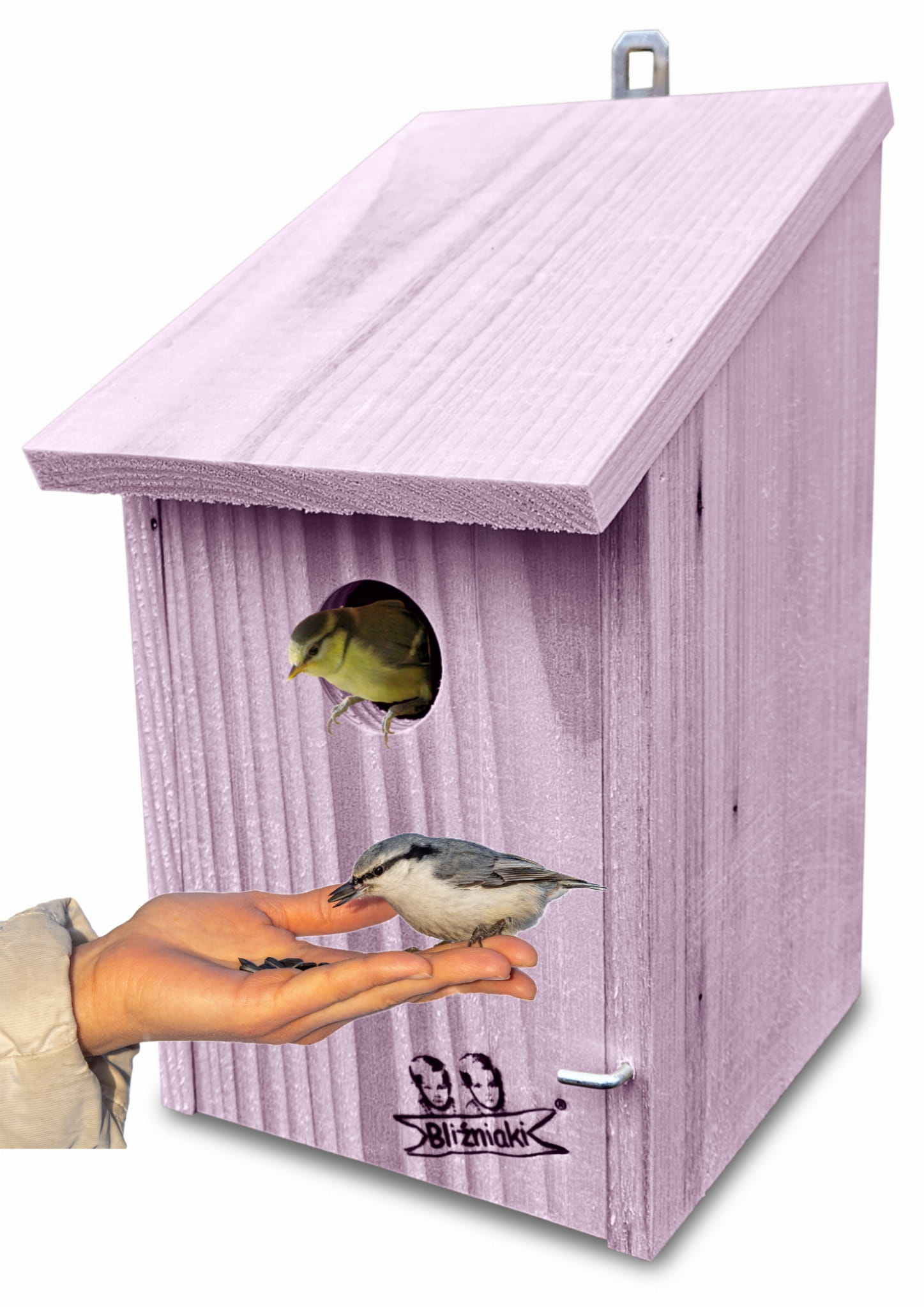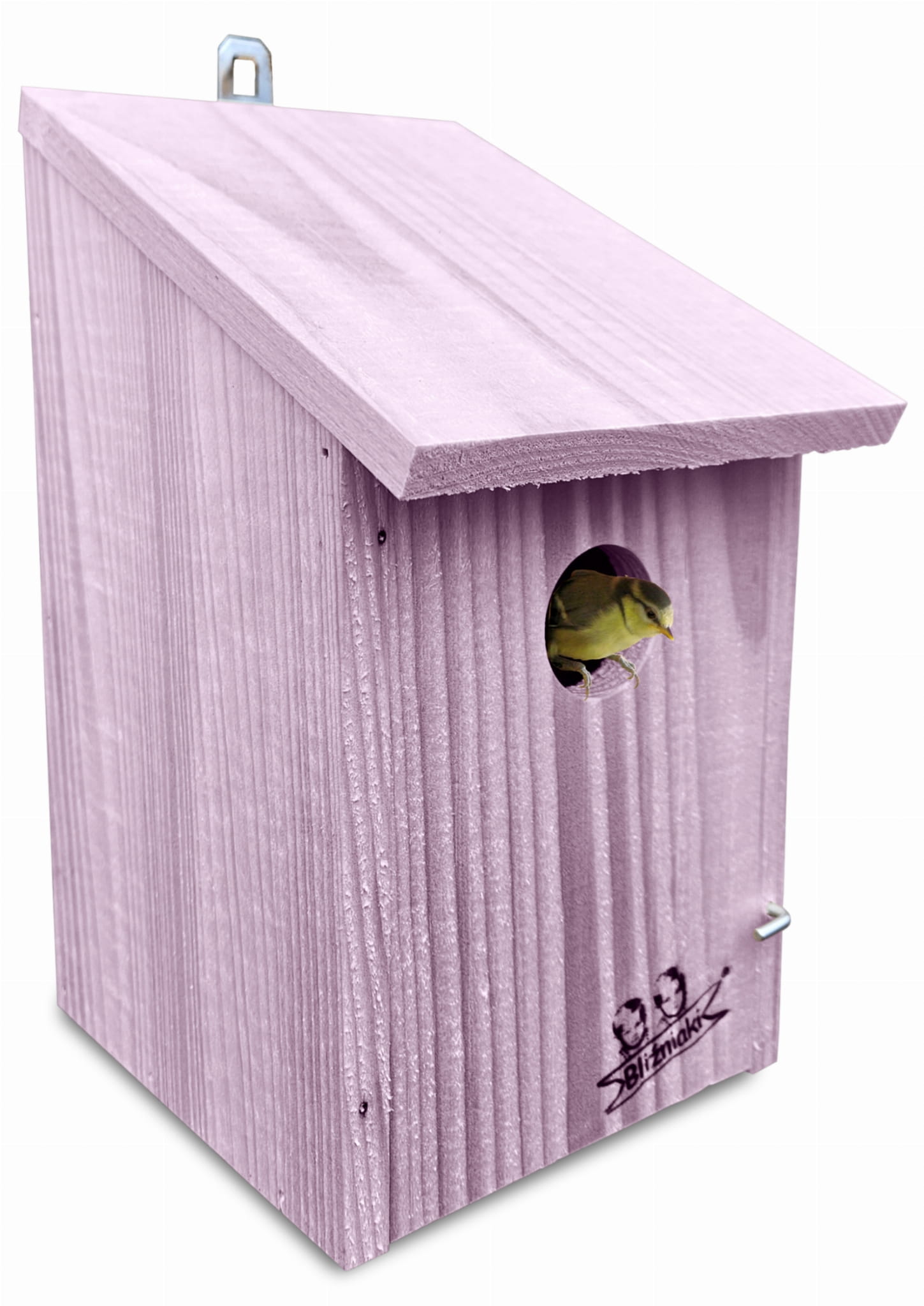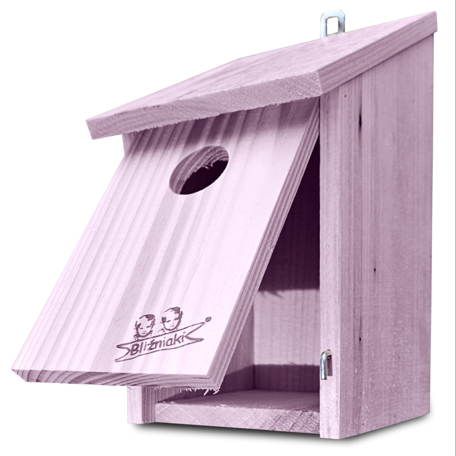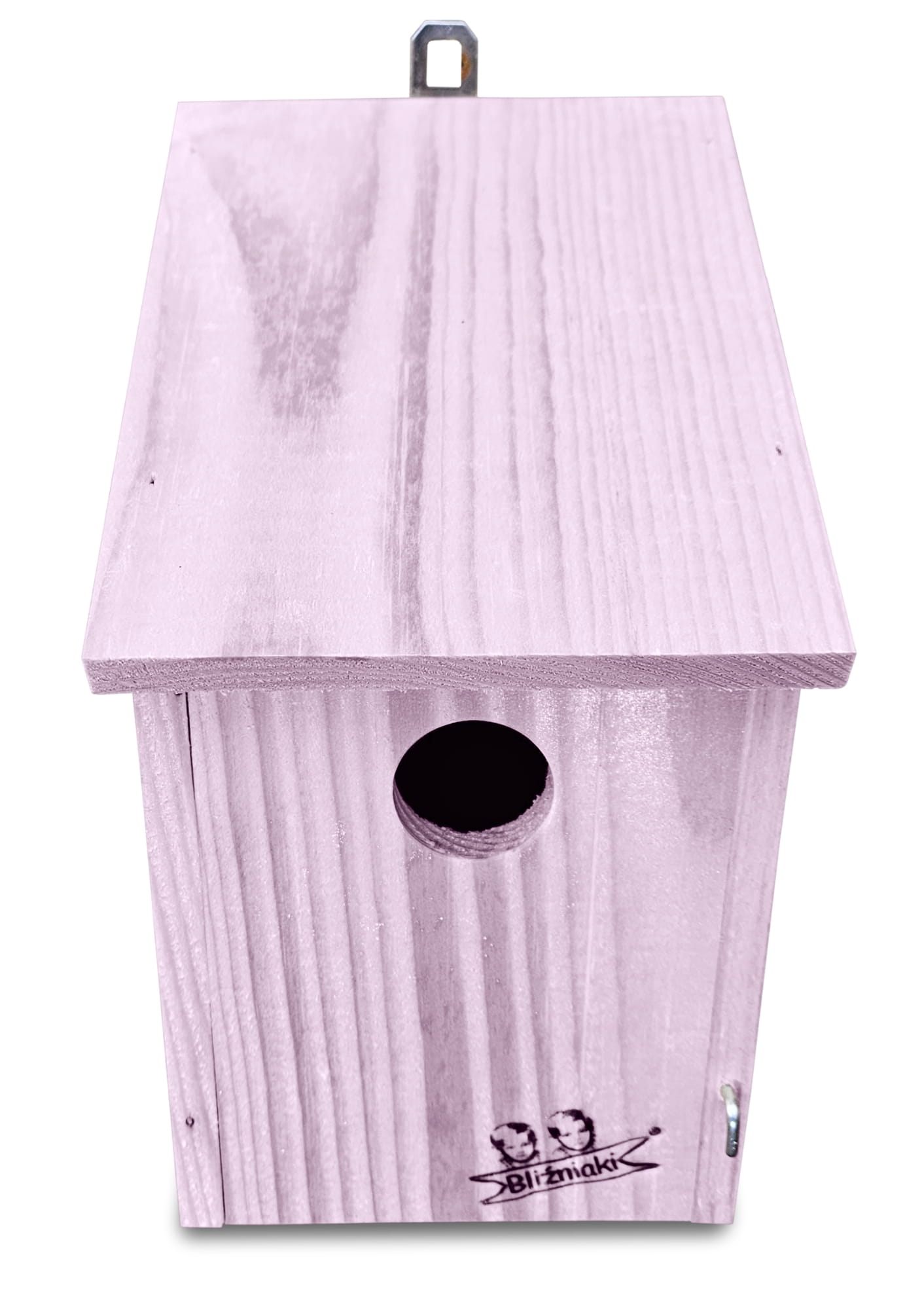 Produkt wykonany został z suszonego drewna sosnowego. Budka w kolorze PASTELOWYM FIOLETOWYM jest zabezpieczona metodą impregnowania. Środek na bazie wody użyty do impregnacji jest w pełni ekologiczny i bezpieczny dla ludzi i zwierząt. Zabezpieczone w taki sposób drewno sprawia, że budka lęgowa jest odporna na szkodliwe działanie wody oraz wilgoci, promieni UV, a także grzybów i pleśni, może być więc przechowywana przez cały rok na zewnątrz.
