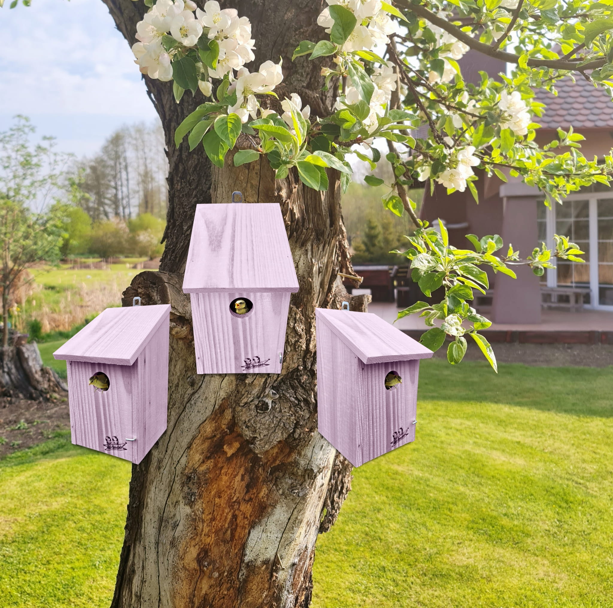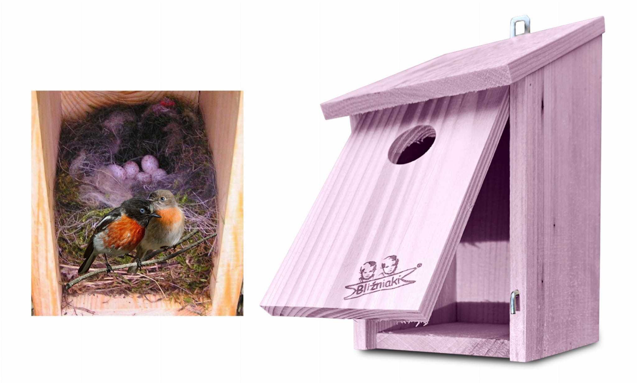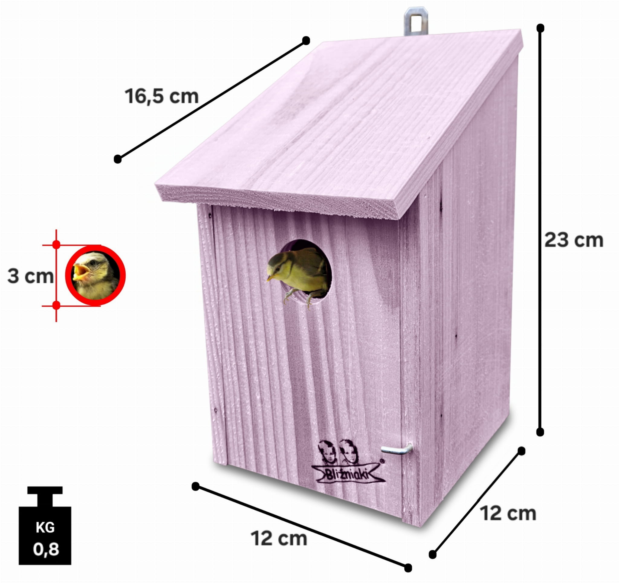 Przestrzeń i wygoda: zaprojektowane specjalnie z myślą o małych ptakach, zapewnią im odpowiednią przestrzeń do swobodnego poruszania się i zakładania gniazd. Skrzynki posiadają wlot o średnicy 30 mm oraz otwieraną przednią ścianę.