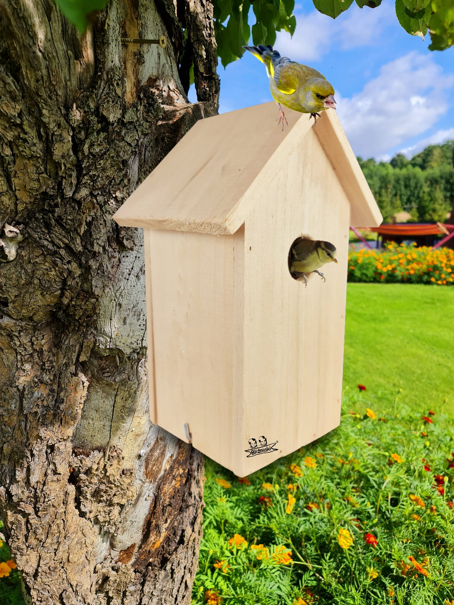 Budka Lęgowa Dla Ptaków Drewniana Naturalna Dziupla Wlot 25mm BL70 N