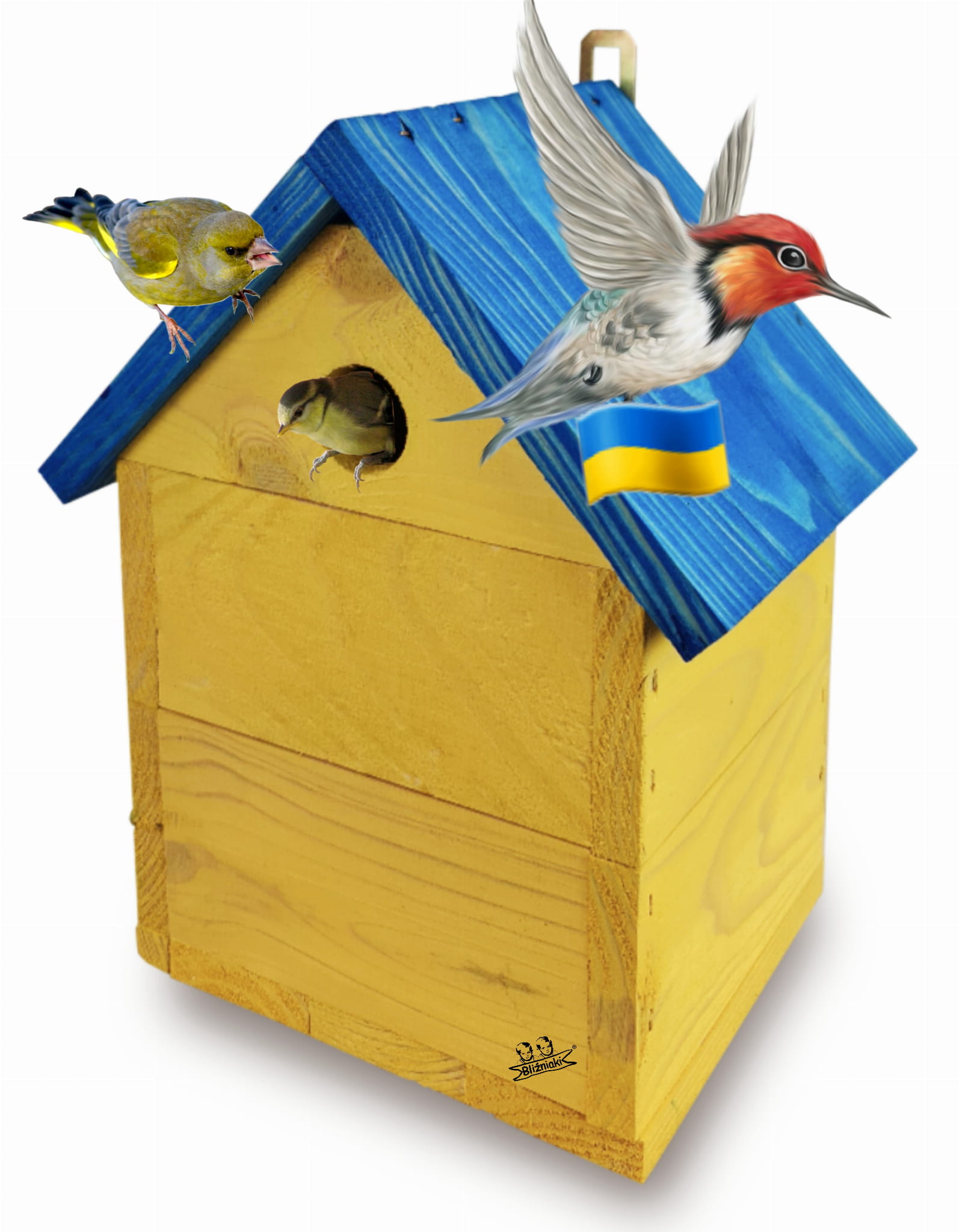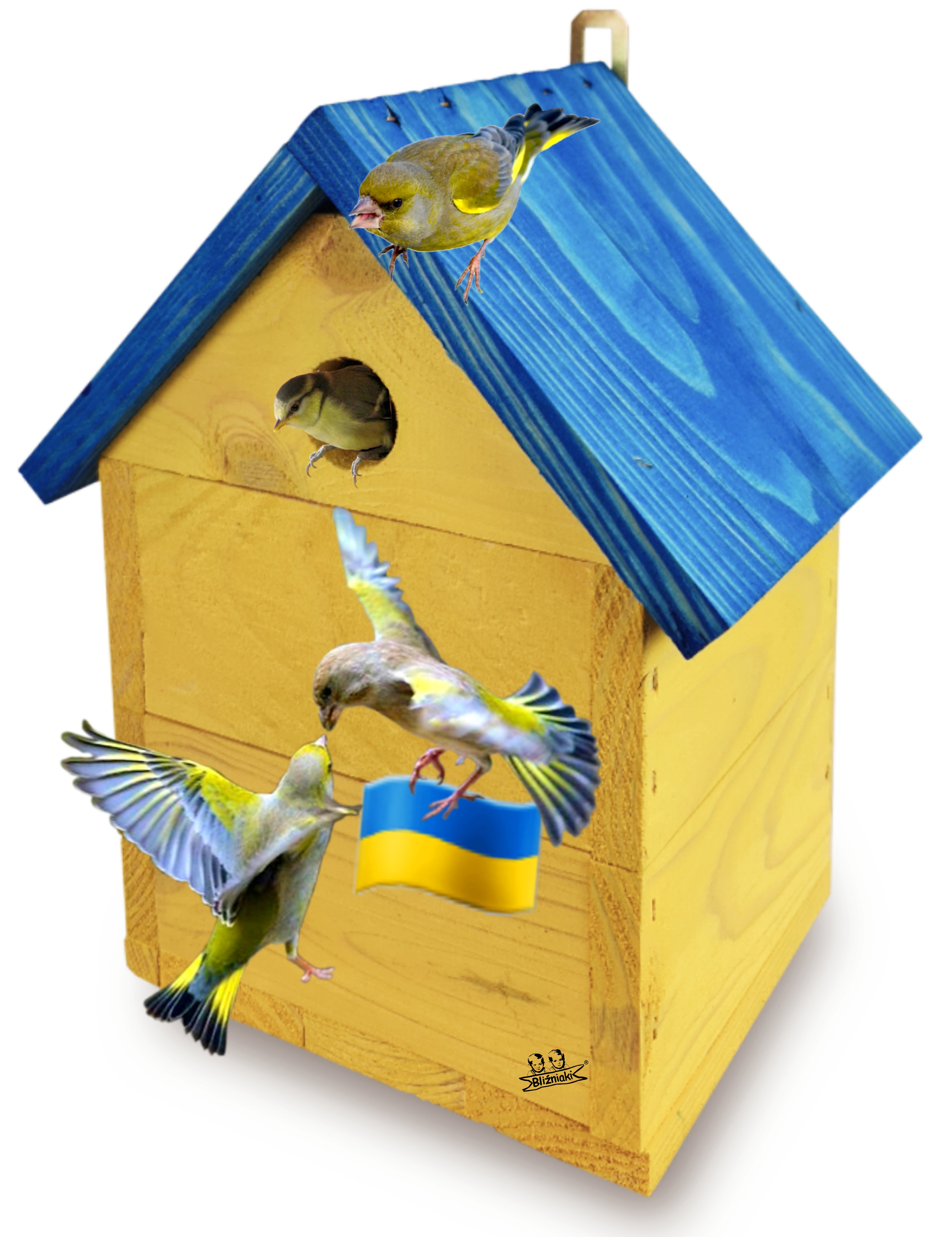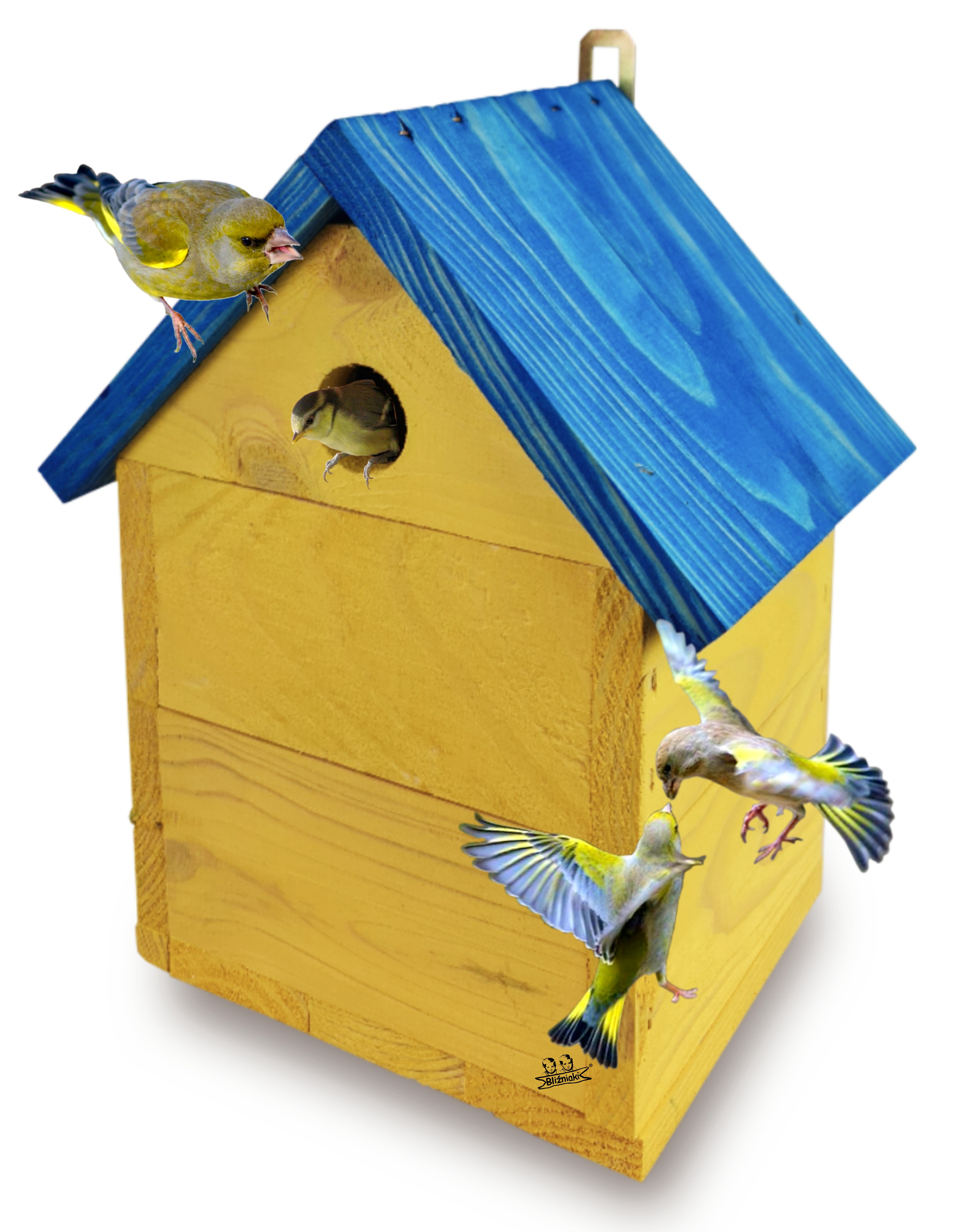 - Budka lęgowa w kolorze niebiesko-żółtym . Bardzo ładnie komponuje się w otoczeniu