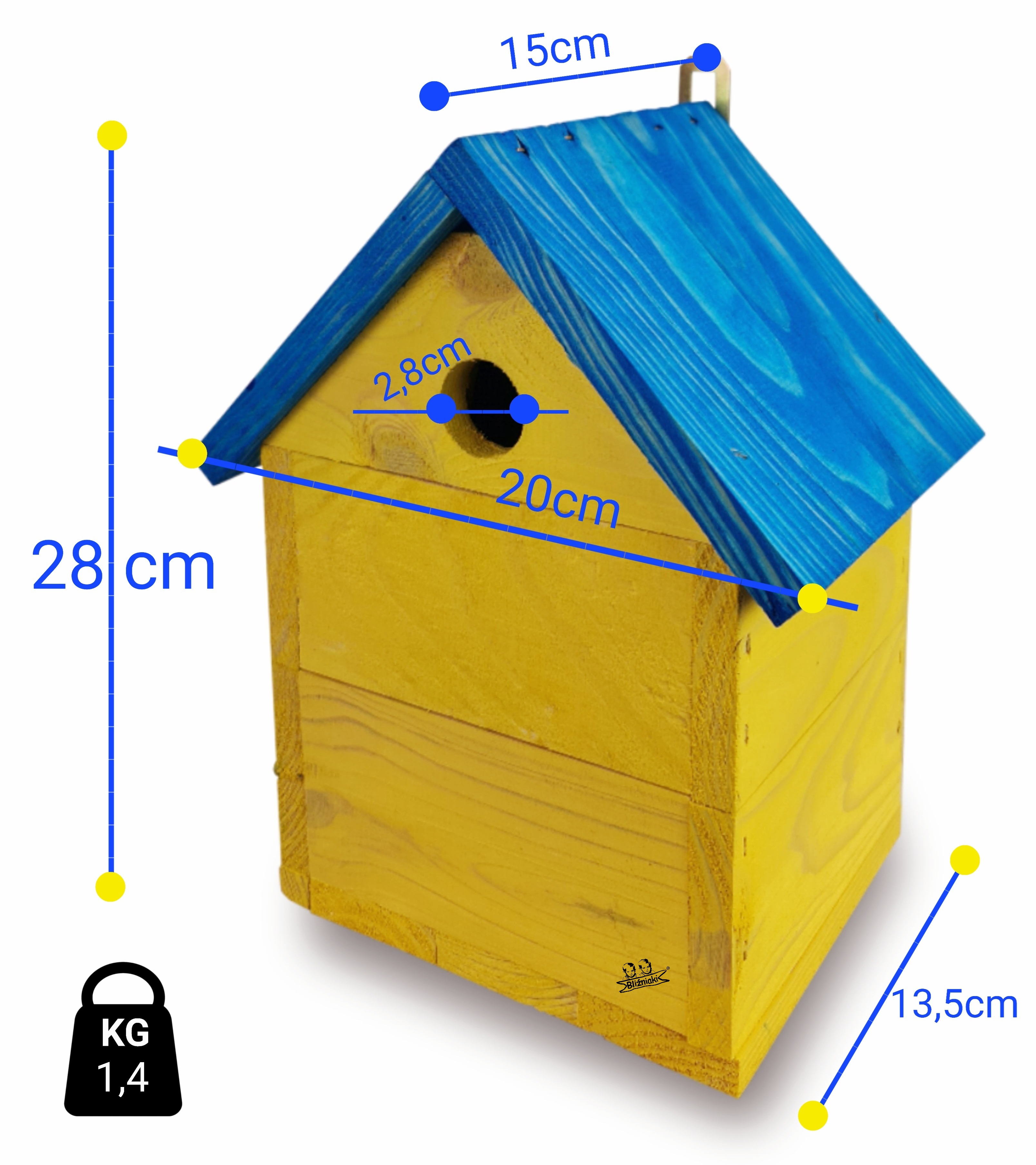 Budka Lęgowa Skrzynka Dla Ptaków 28 mm 2,8 cm wlotu Dla Małych Ptaków Typ Sikorka Strzyżyk Kowalik Muchołówka ( BL90 ZB NB )
