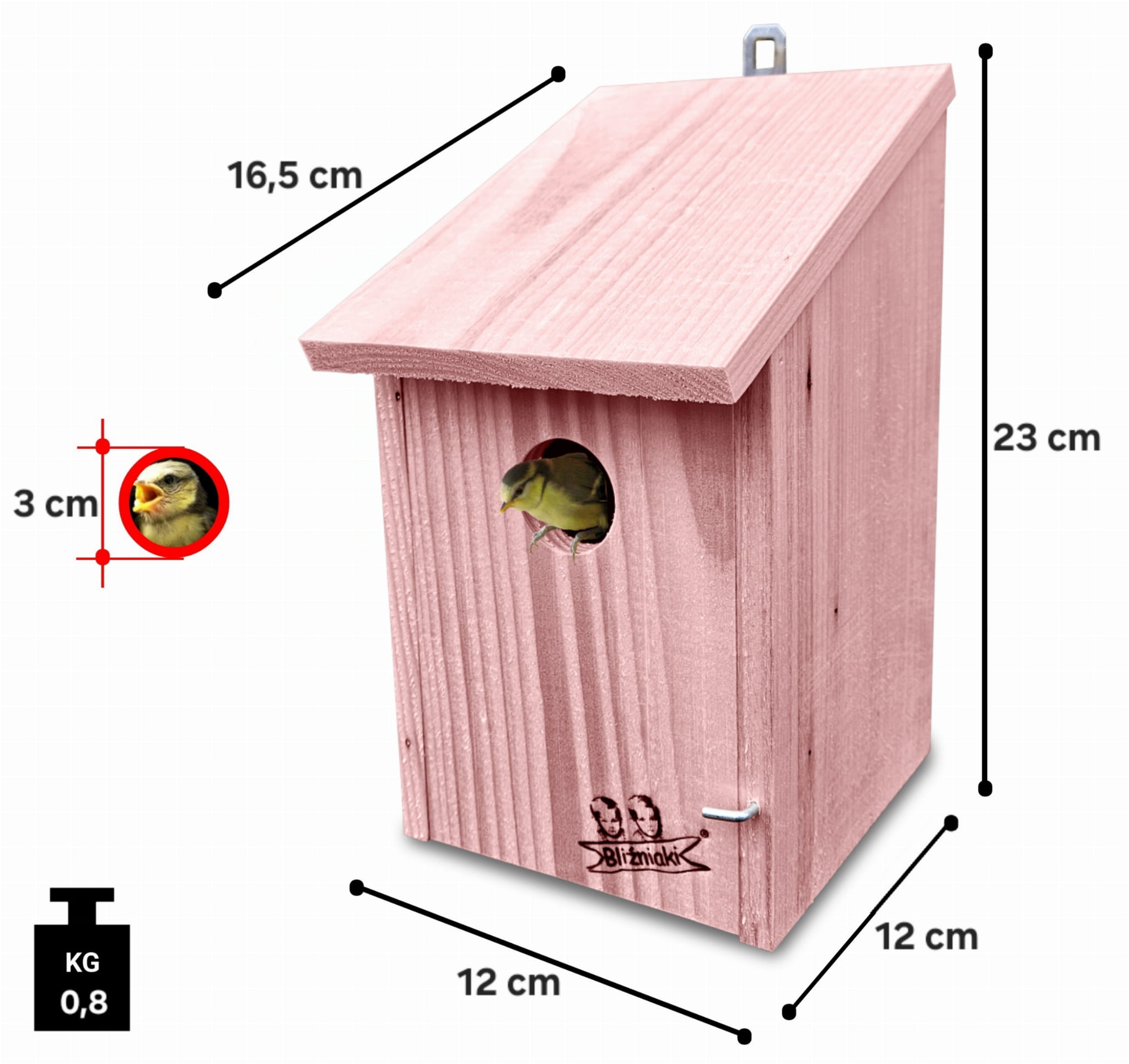 Średnica otworu budki - 3 cm,