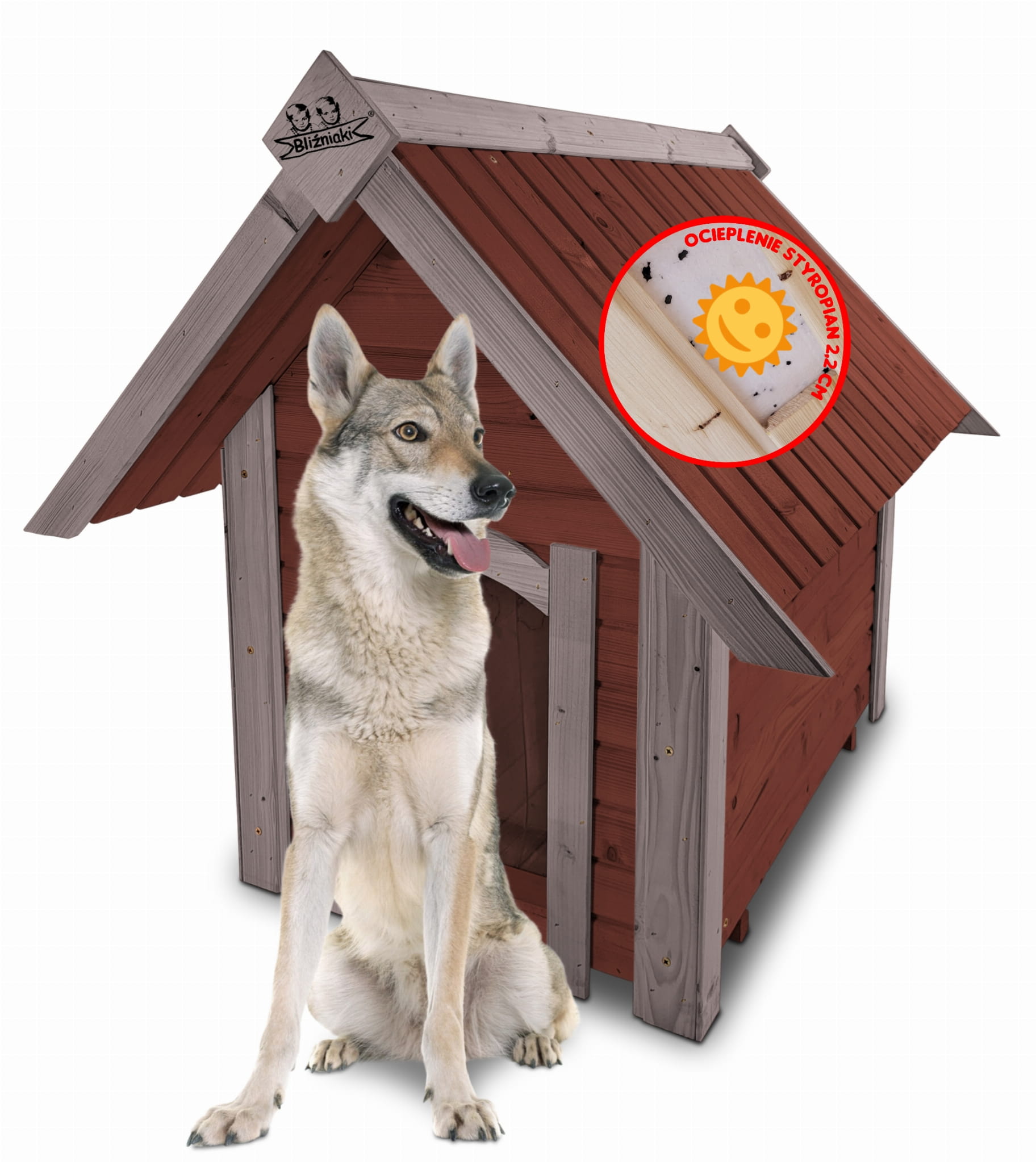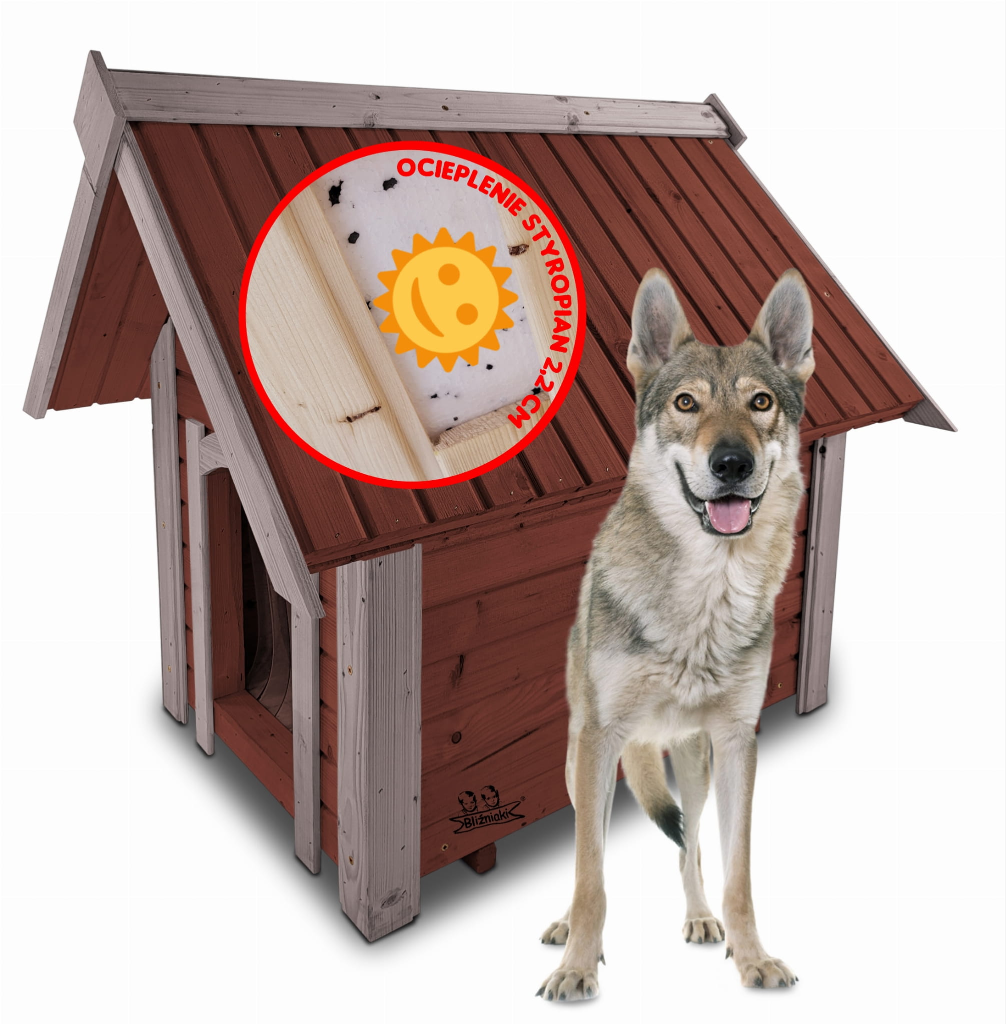 - Domek dla psa OCIEPLONY JEST STYROPIANEM O GRUBOŚCI 2,2CM co zapewnia jeszcze większy komfort przebywania w środku : latem - izoluje przed przegrzaniem a zimą chroni przed utratą ciepła, jest to buda całoroczna dla Psów