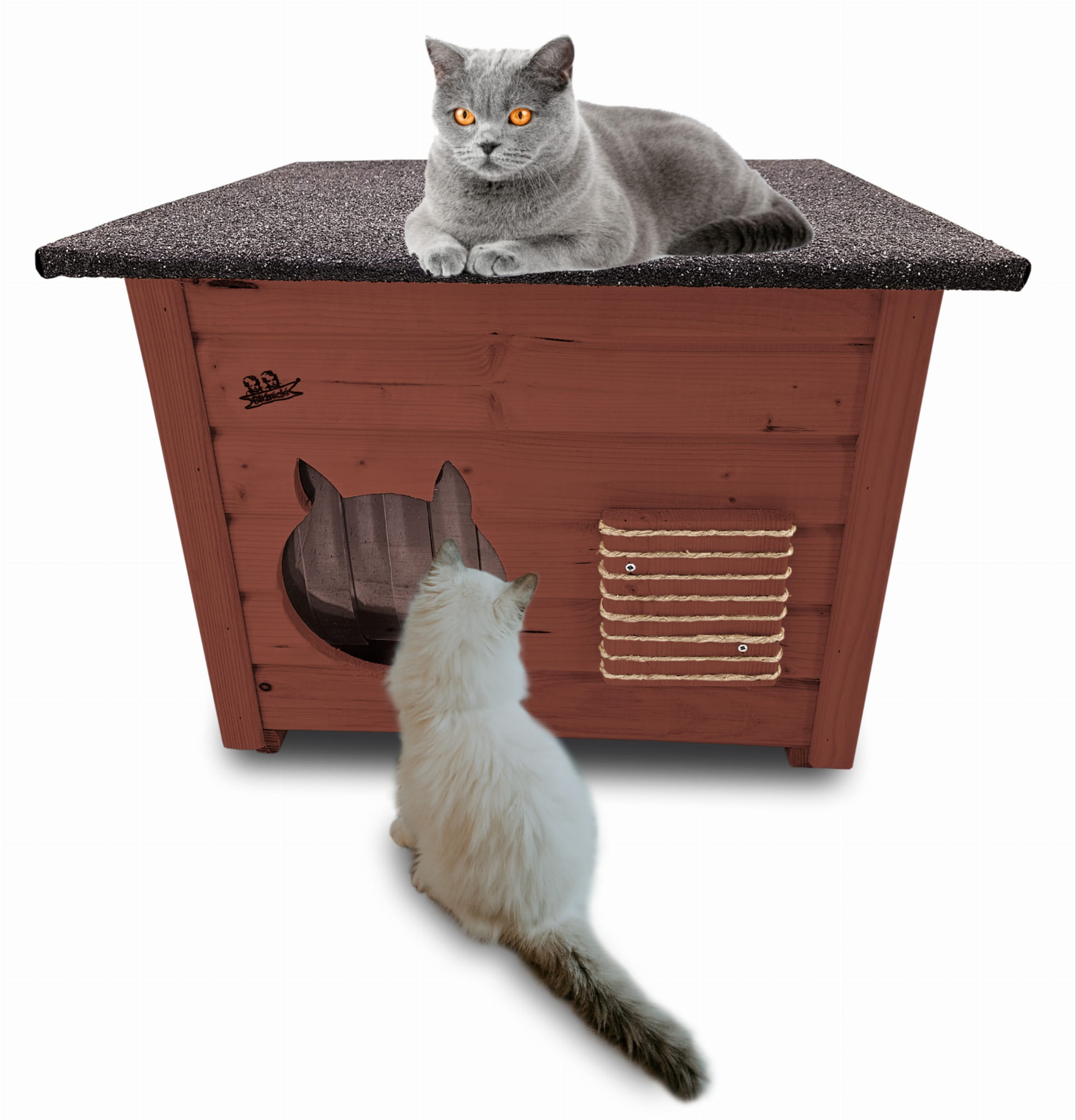 DOM Dla Kota drewniany z asfaltowym dachem Brązowy Duży domek buda LEGOWISKO Drapak ZASŁONA DOMKI DLA KOTÓW DOMKOT2 O