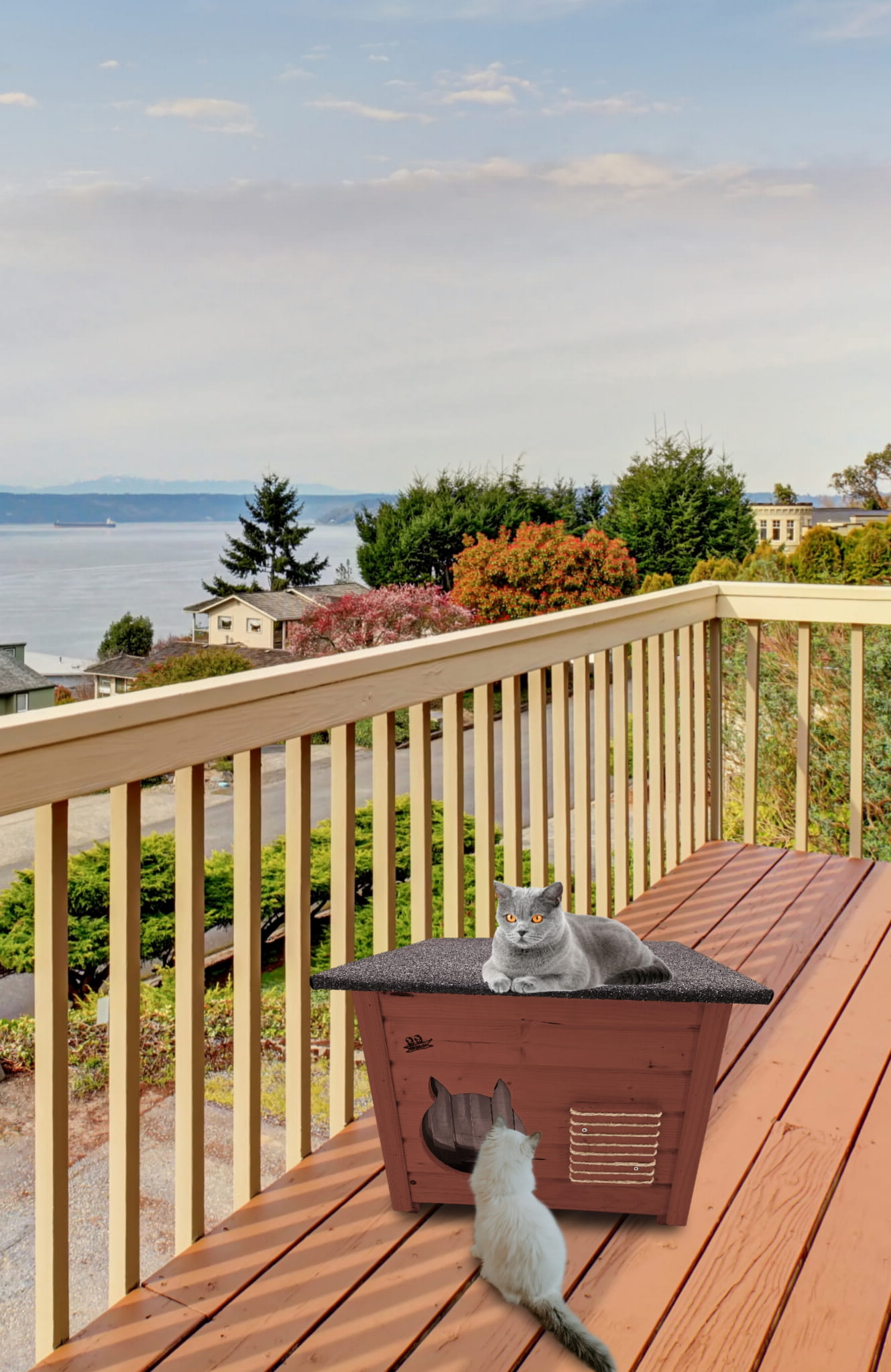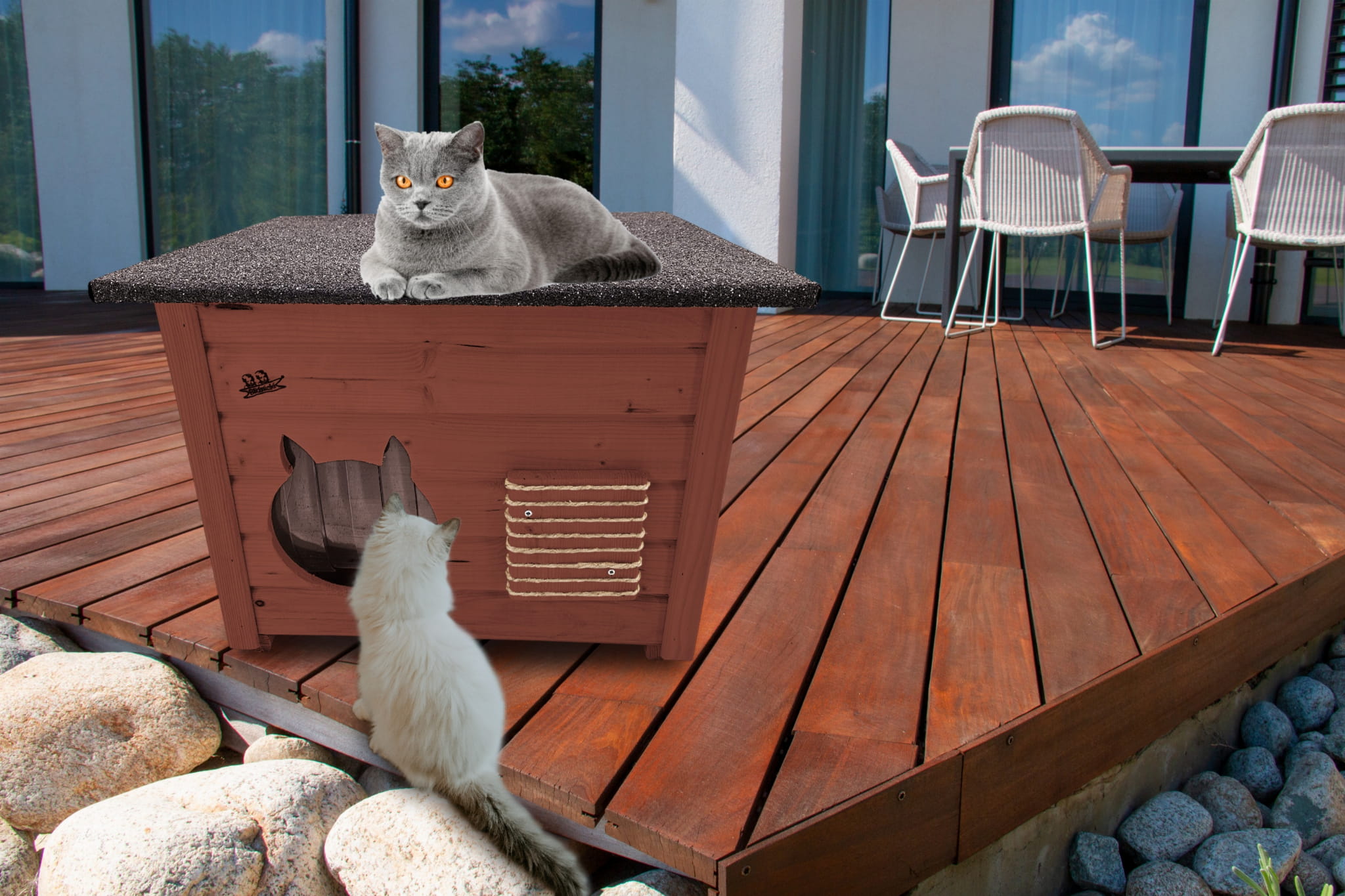 Domek zapewni kotom spokojne, komfortowe miejsce odpoczynku i schronienie przed zimnem oraz upałami.