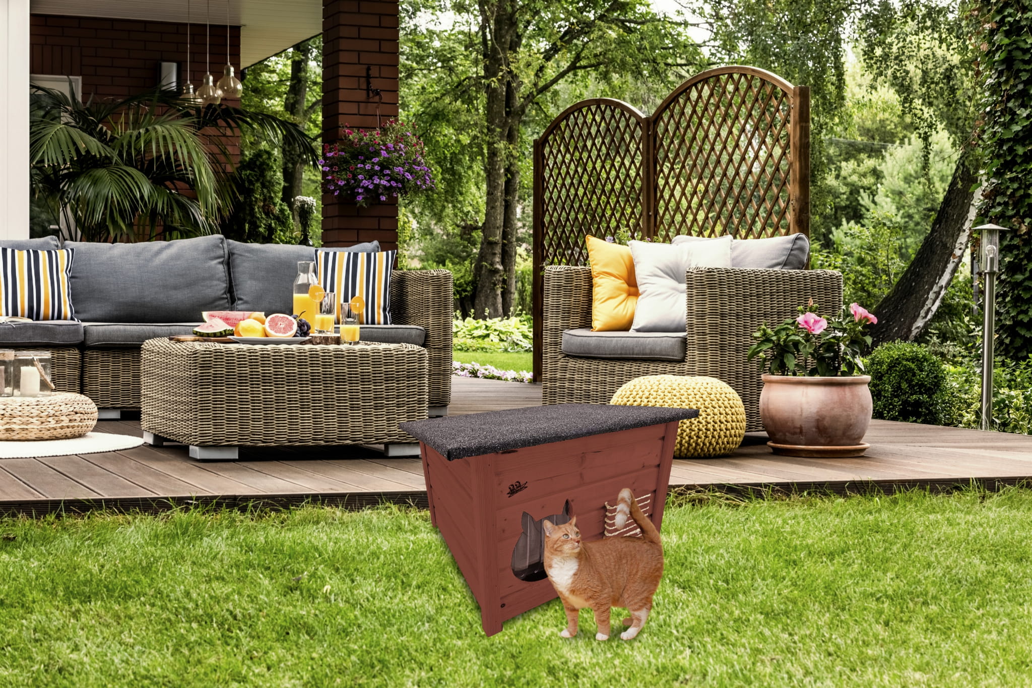Produkt DOMEK DLA KOTA został zaimpregnowany środkiem na bazie wody, co czyni go dekoracyjnym a także przyjaznym dla przyrody.