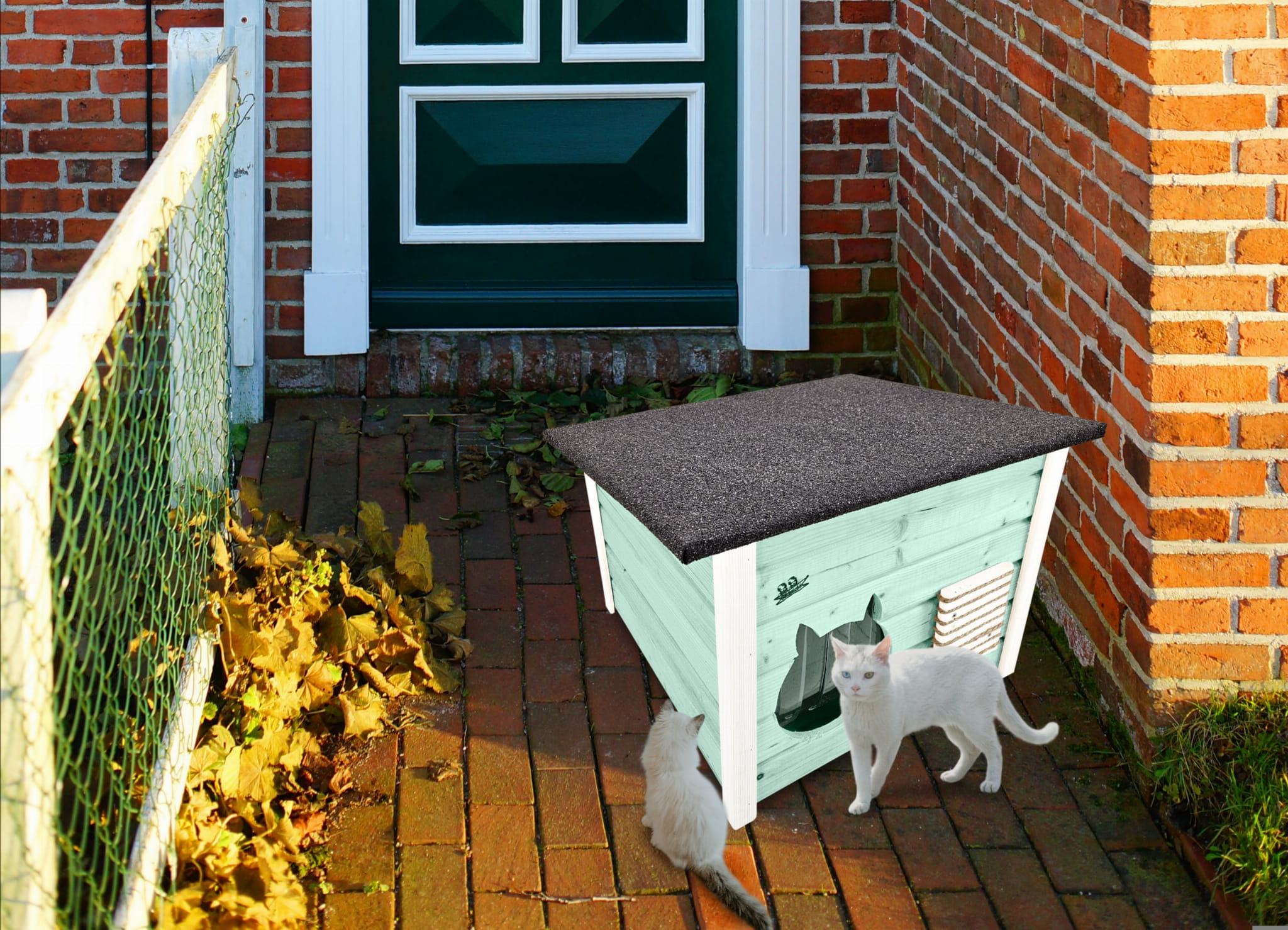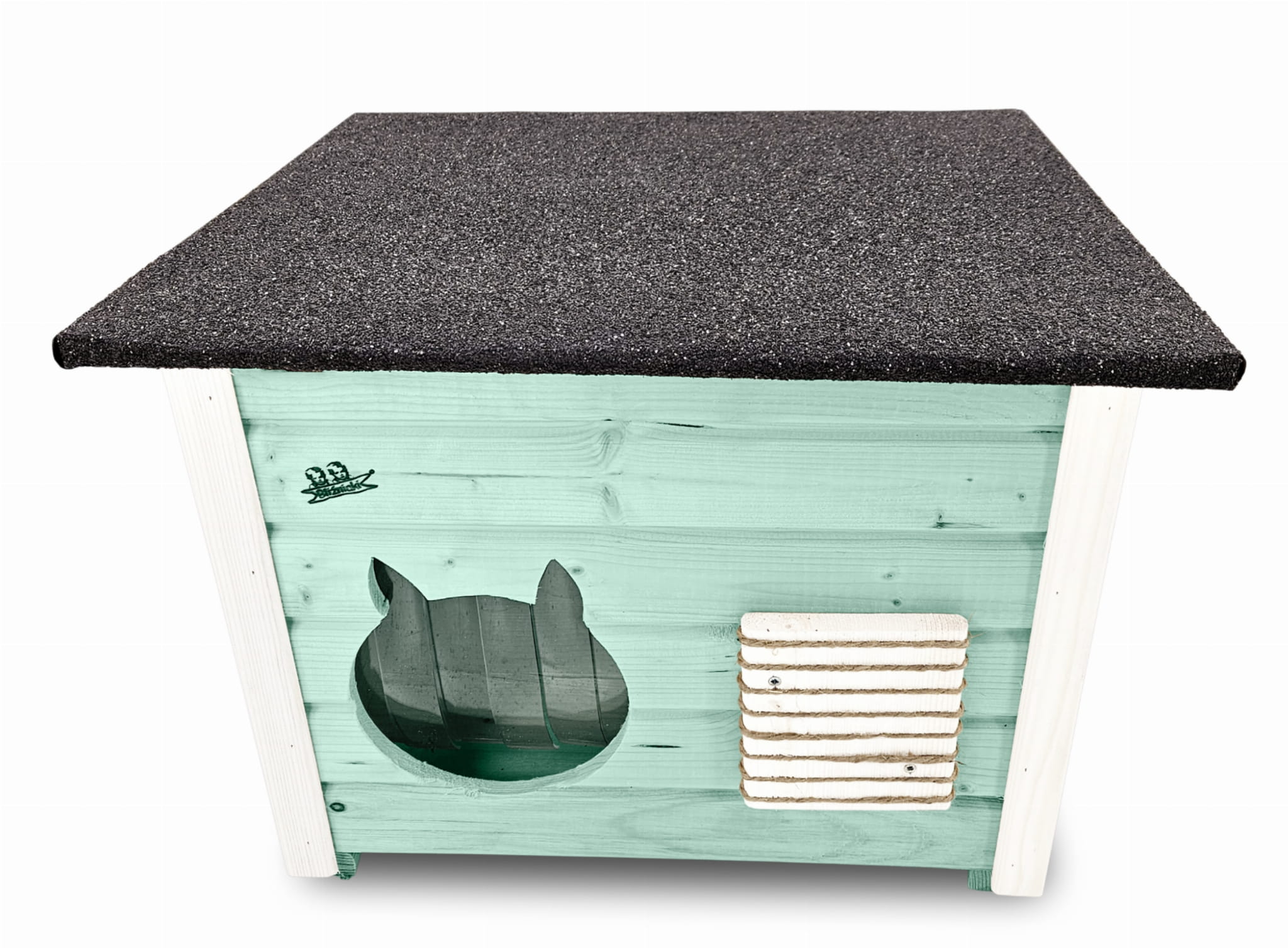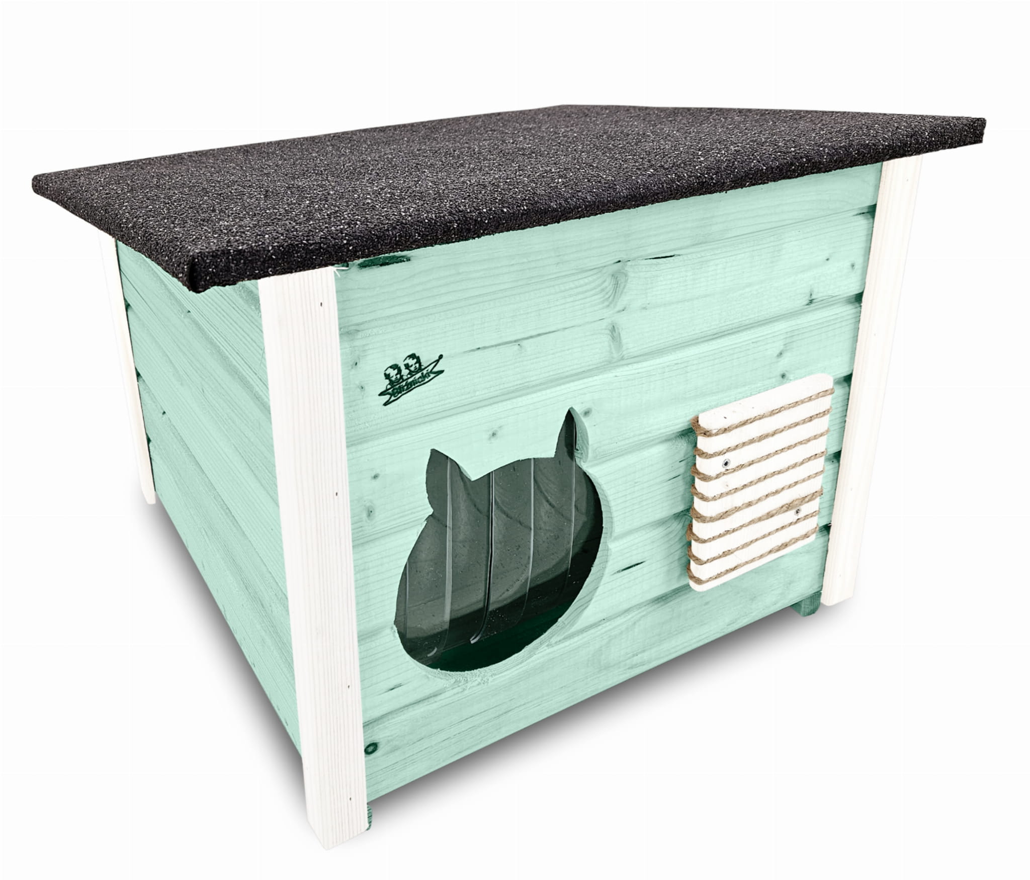 Domek zapewni kotom spokojne, komfortowe miejsce odpoczynku i schronienie przed zimnem oraz upałami.