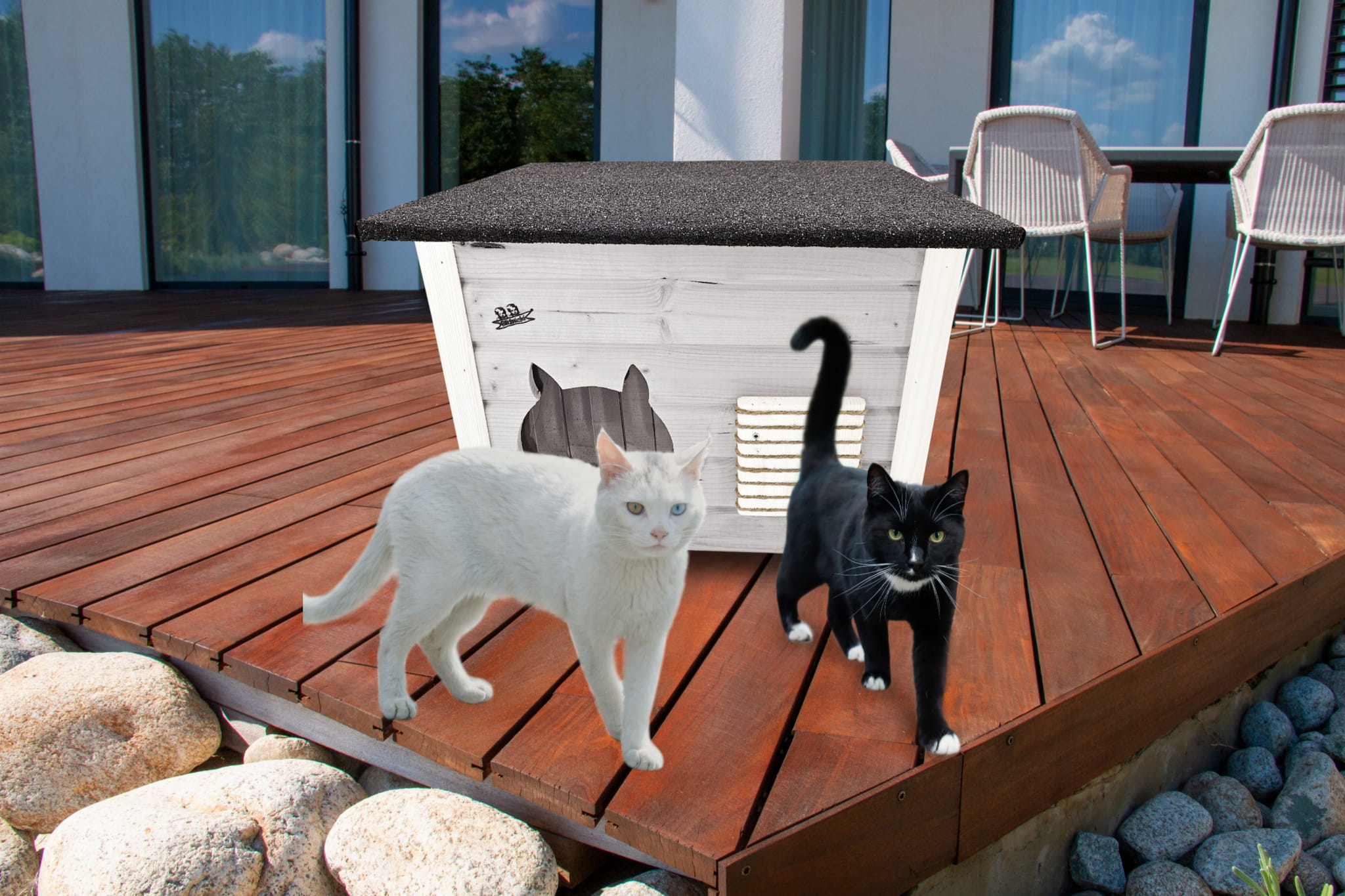 Domek zapewni kotom spokojne, komfortowe miejsce odpoczynku i schronienie przed zimnem oraz upałami.