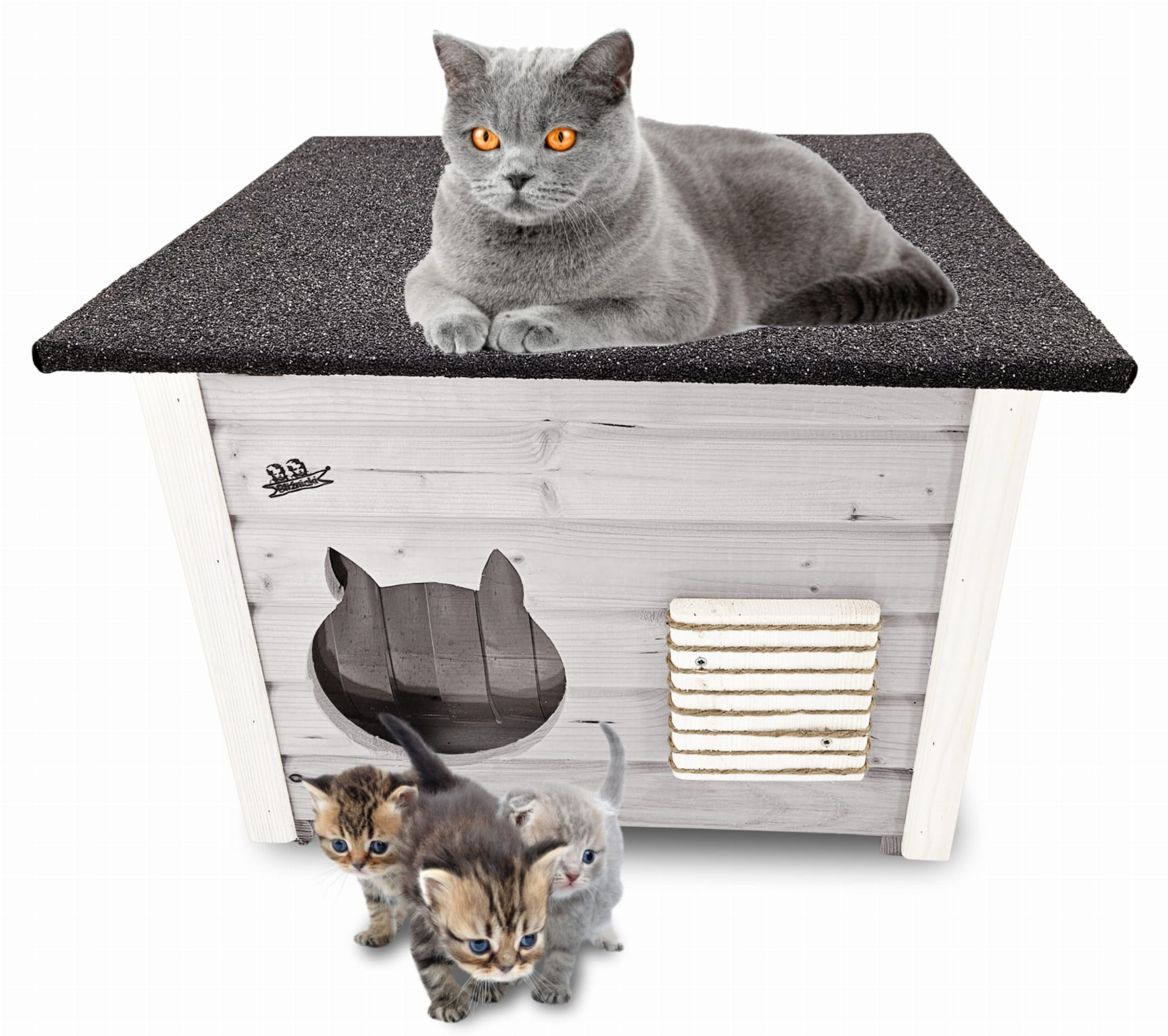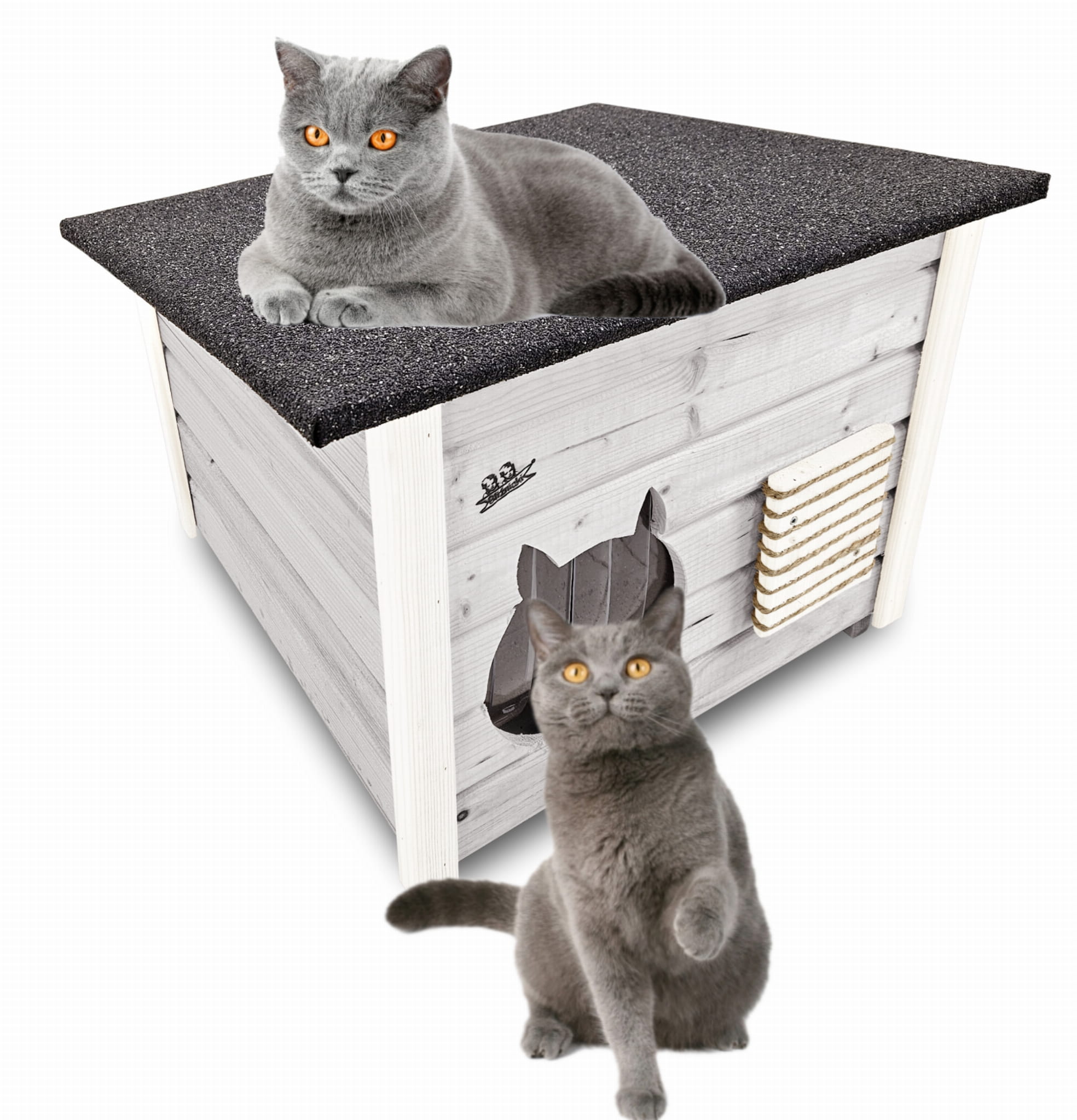 DOM Dla Kota drewniany z asfaltowym dachem Duży domek buda LEGOWISKO Drapak ZASŁONA DOMKI DLA KOTÓW DOMKOT2 SNP BI