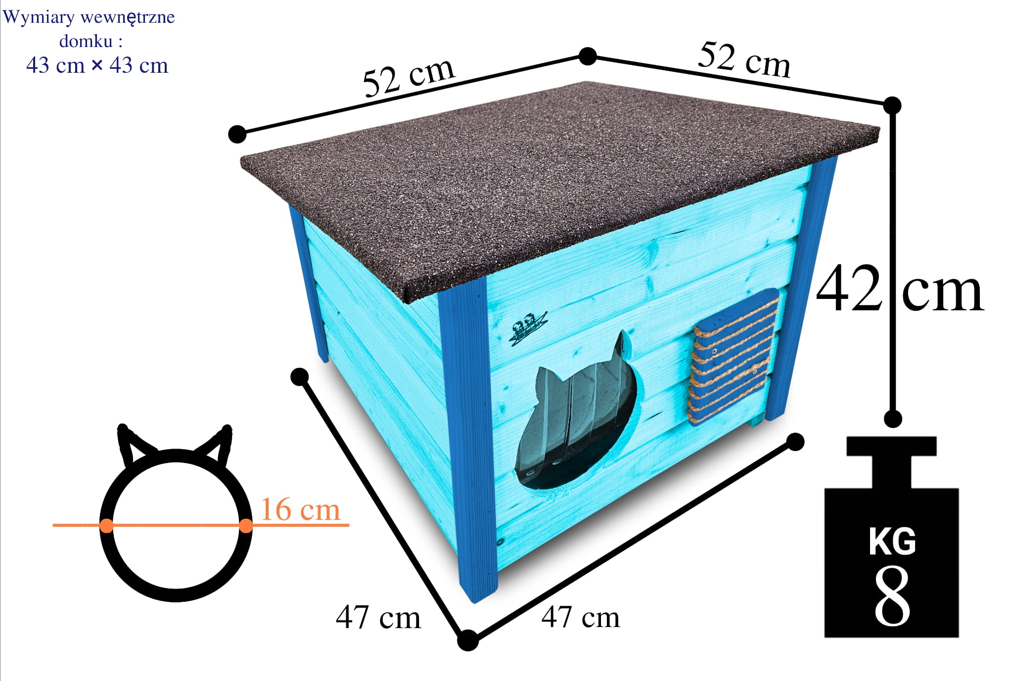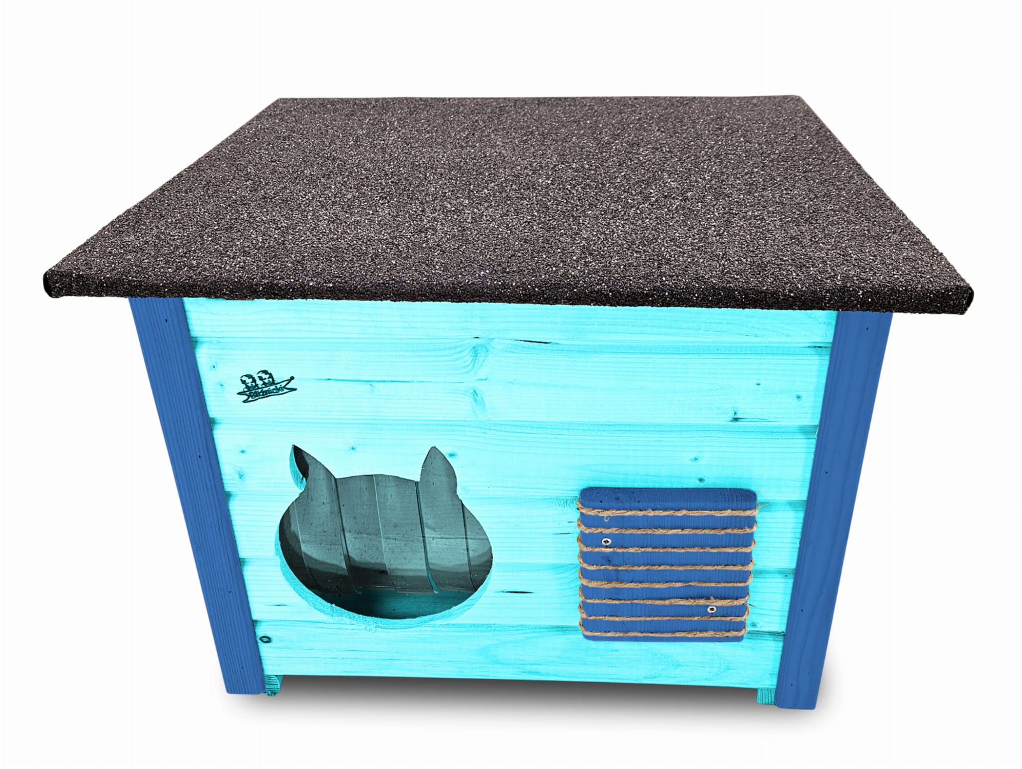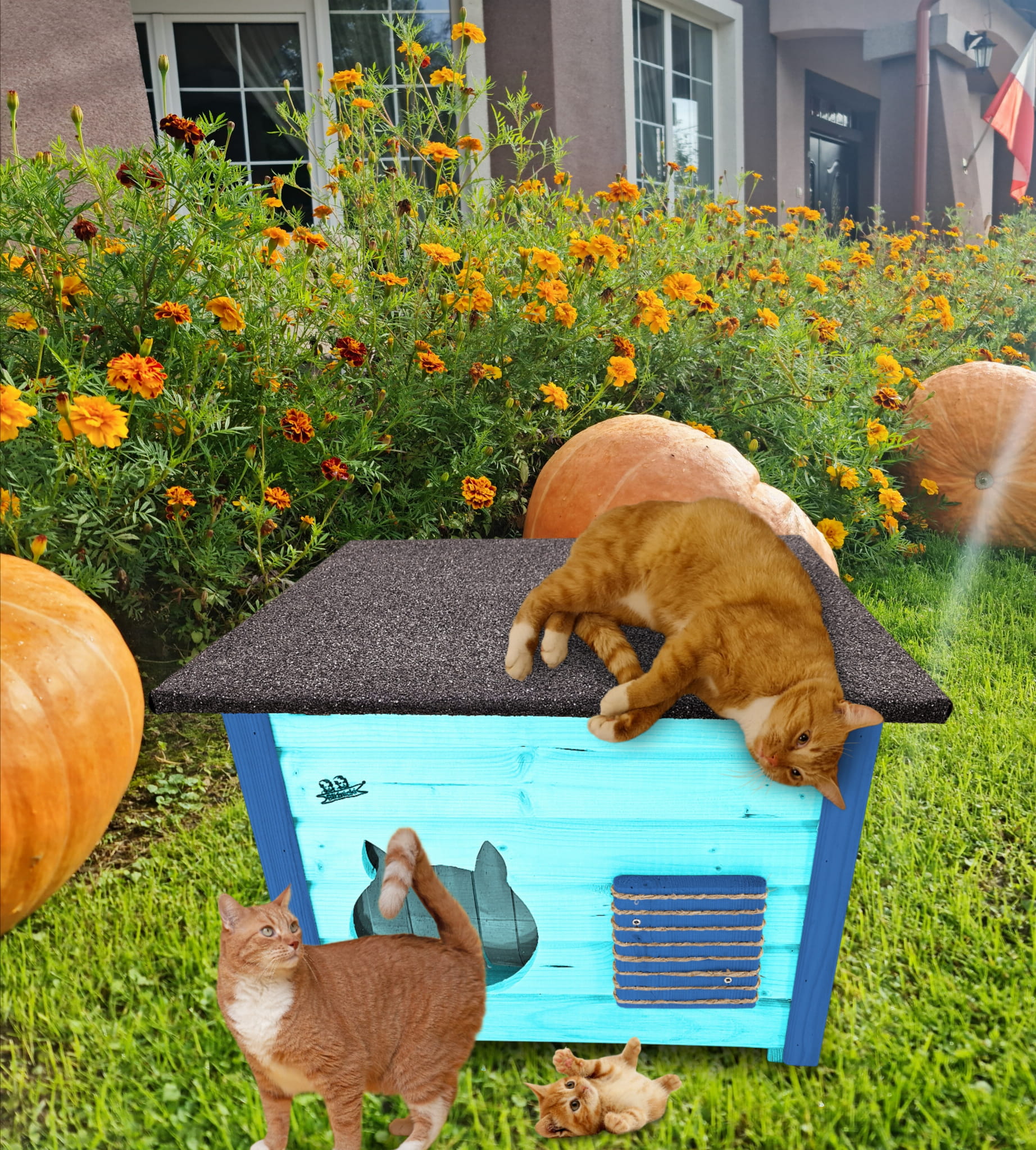 Domek zapewni kotom spokojne, komfortowe miejsce odpoczynku i schronienie przed zimnem oraz upałami.