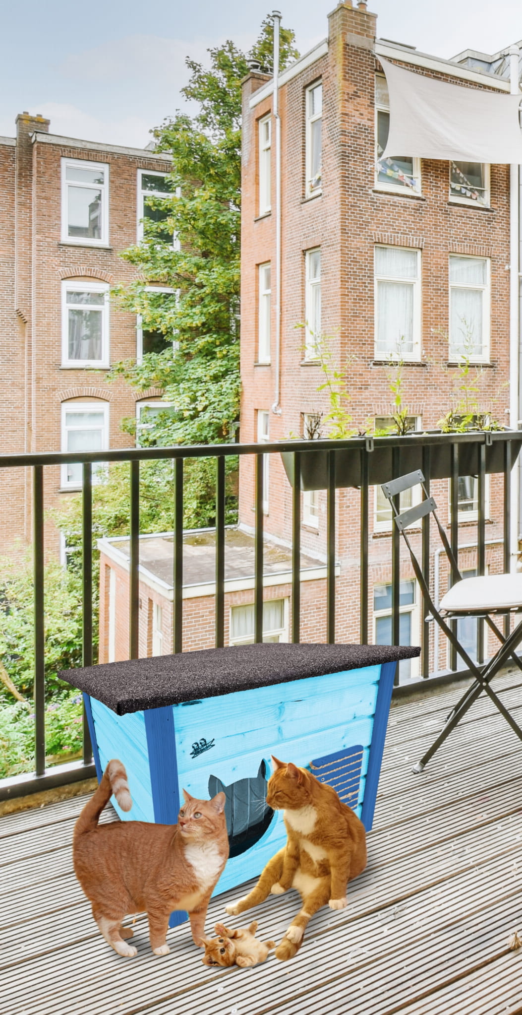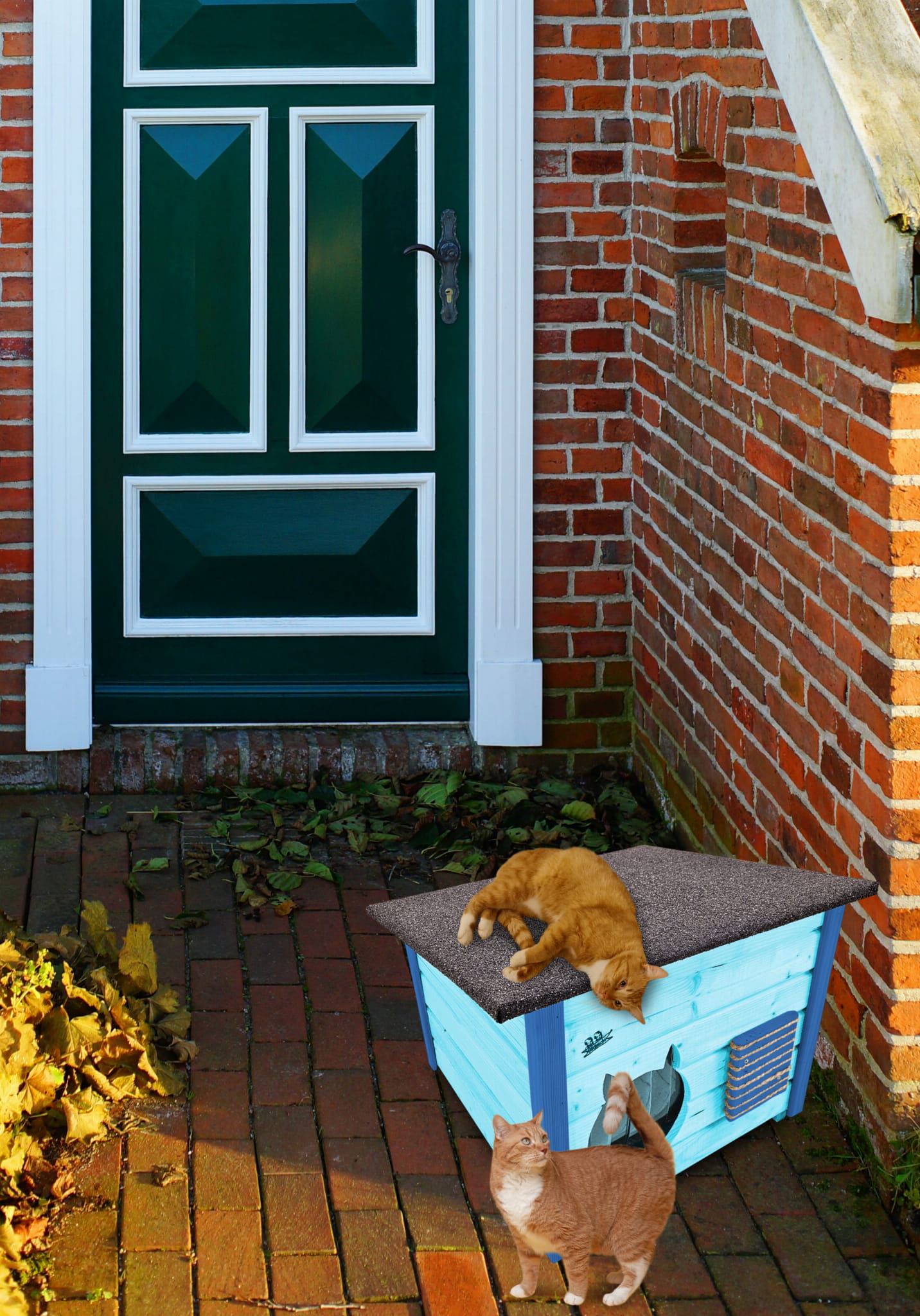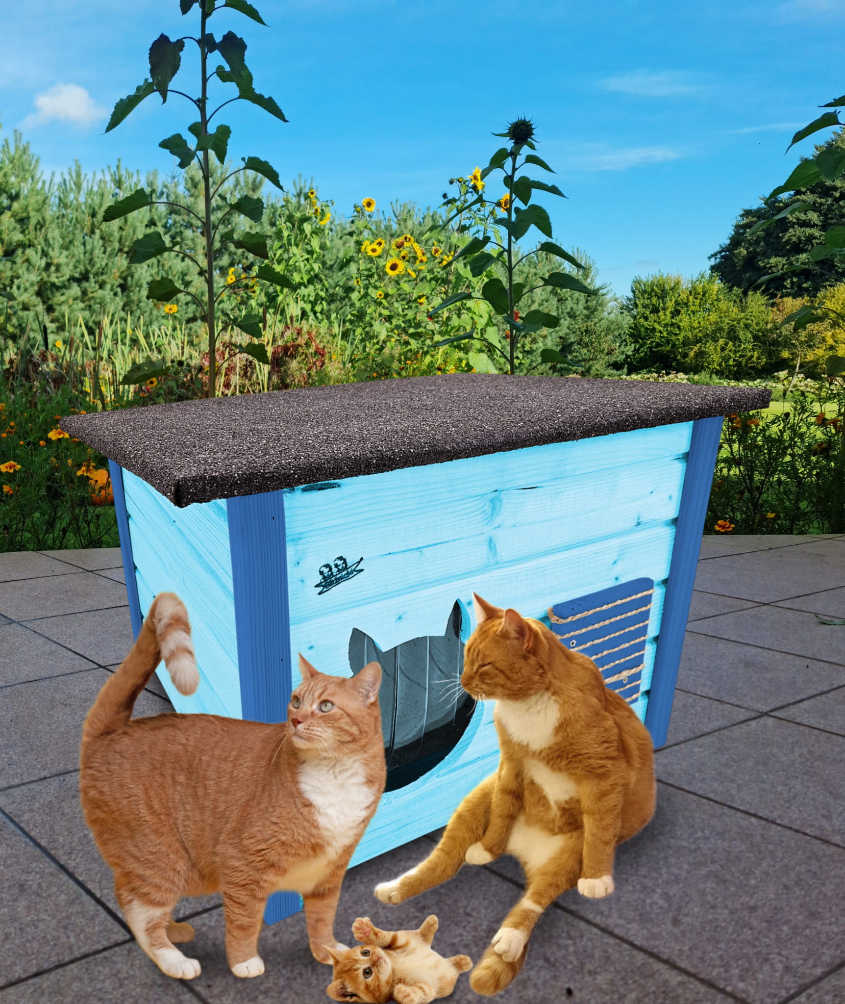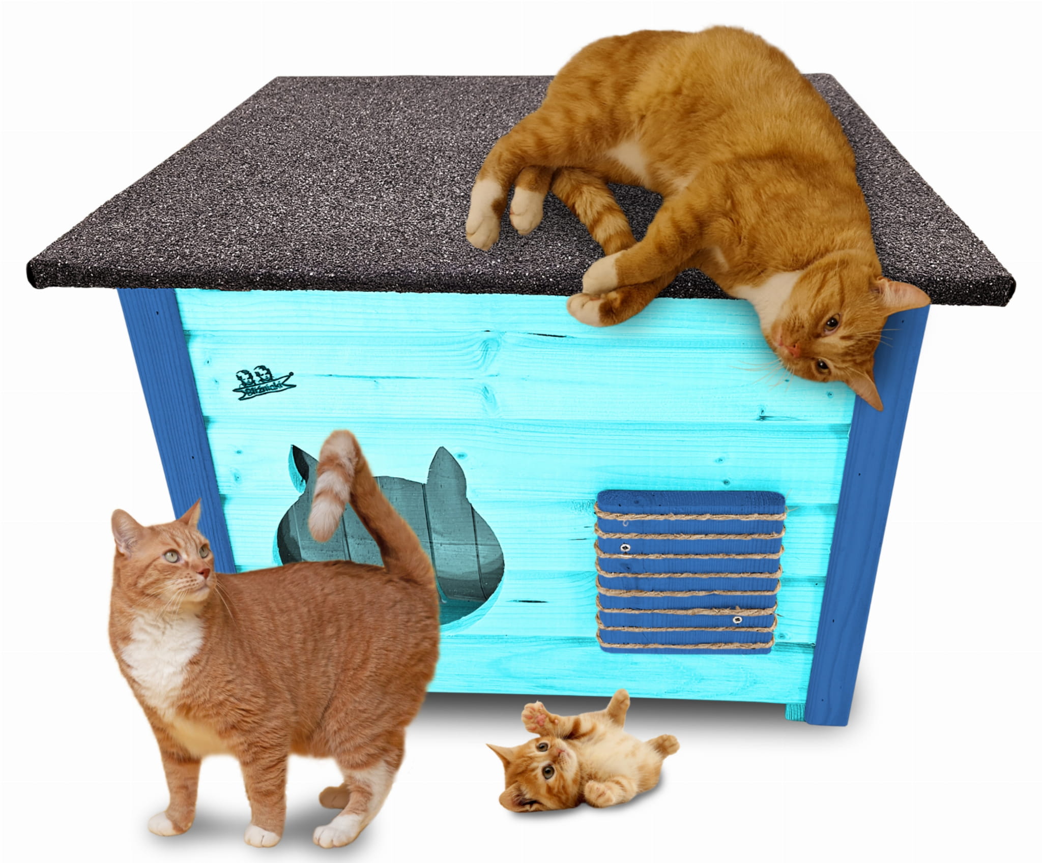 Domek zapewni kotom spokojne, komfortowe miejsce odpoczynku i schronienie przed zimnem oraz upałami.