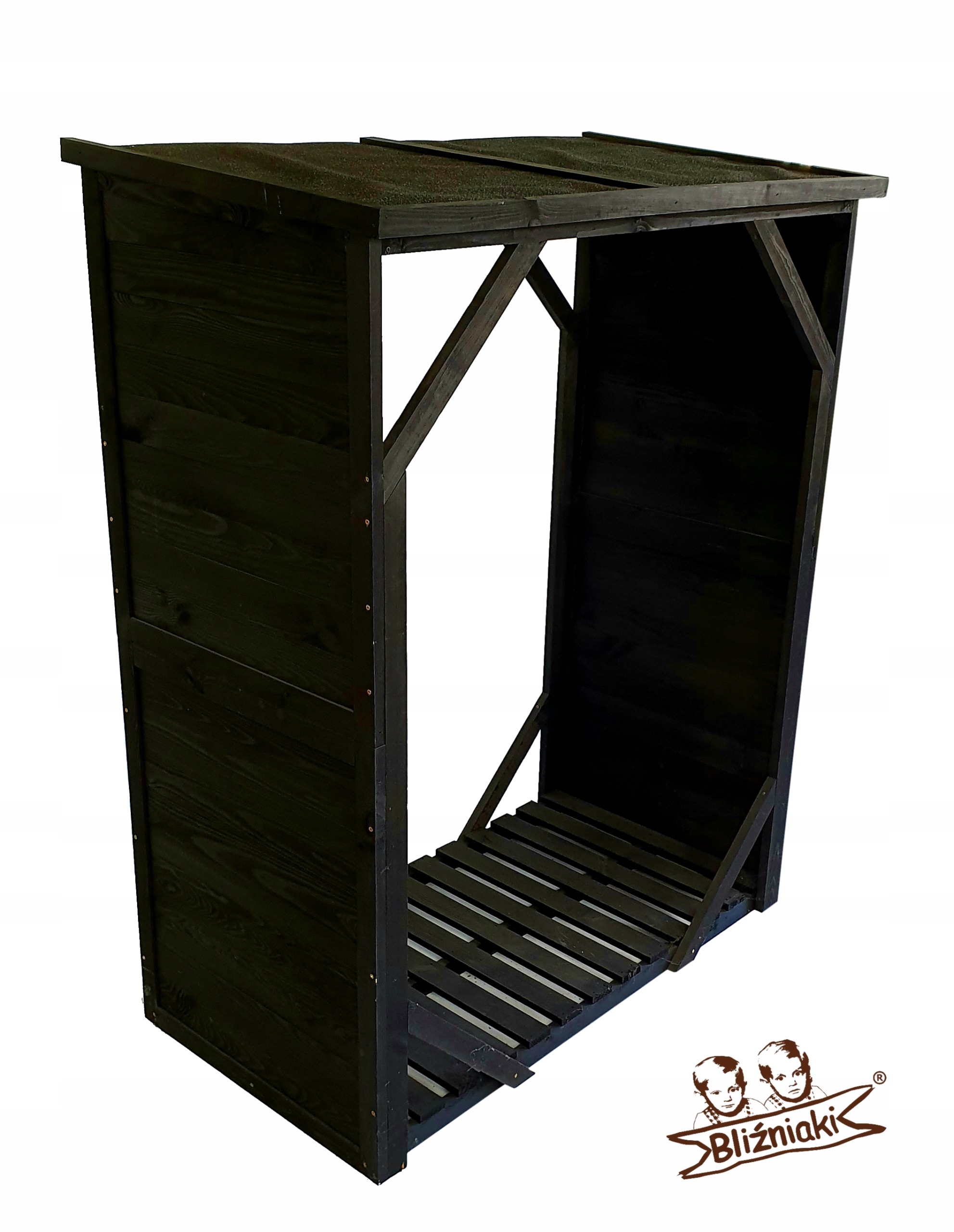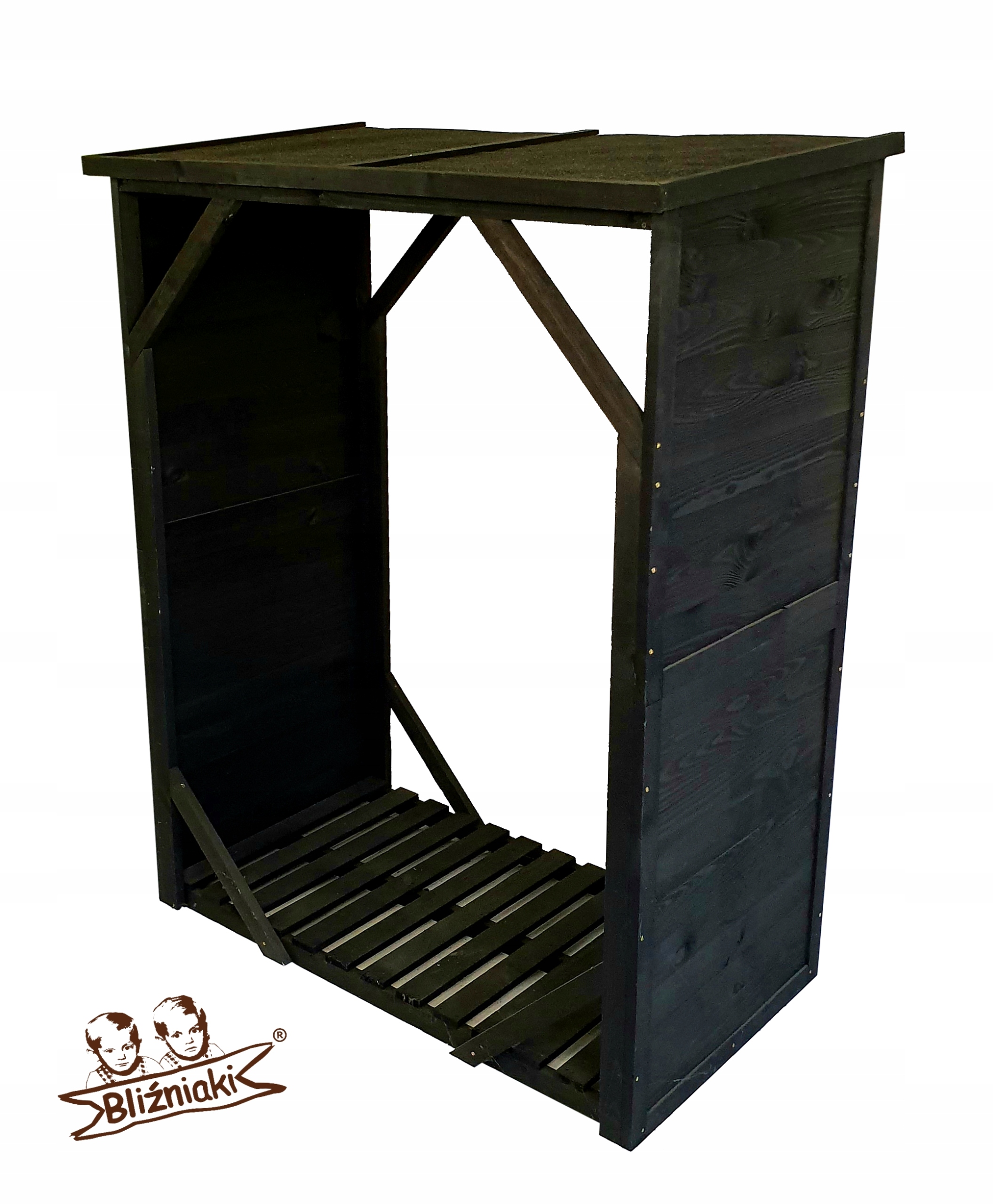 Stojak został wykonany z mocnego drewna sosnowego w kolorze czarnym. Dach został pokryty papą- zachowa dzięki temu dłuższą żywotność.