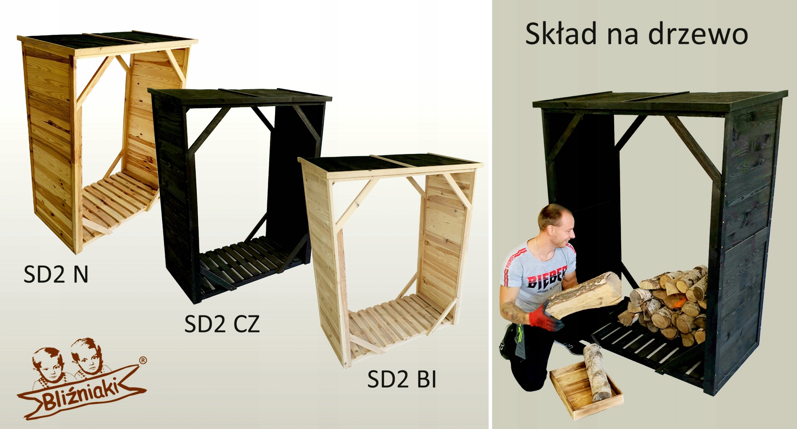 Drewniany stojak-skład na drewno kominkowe Model: SD2