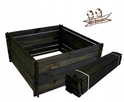DUŻY KOMPOSTOWNIK DREWNIANY POJEMNIK NA ODPADY CZARNY BIO OGRODOWY KUBATURA 400L 95X95X46 SZYBKI MONTAŻ(KOM1 CZ)