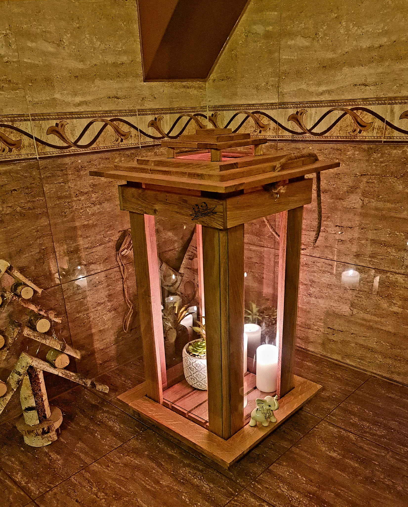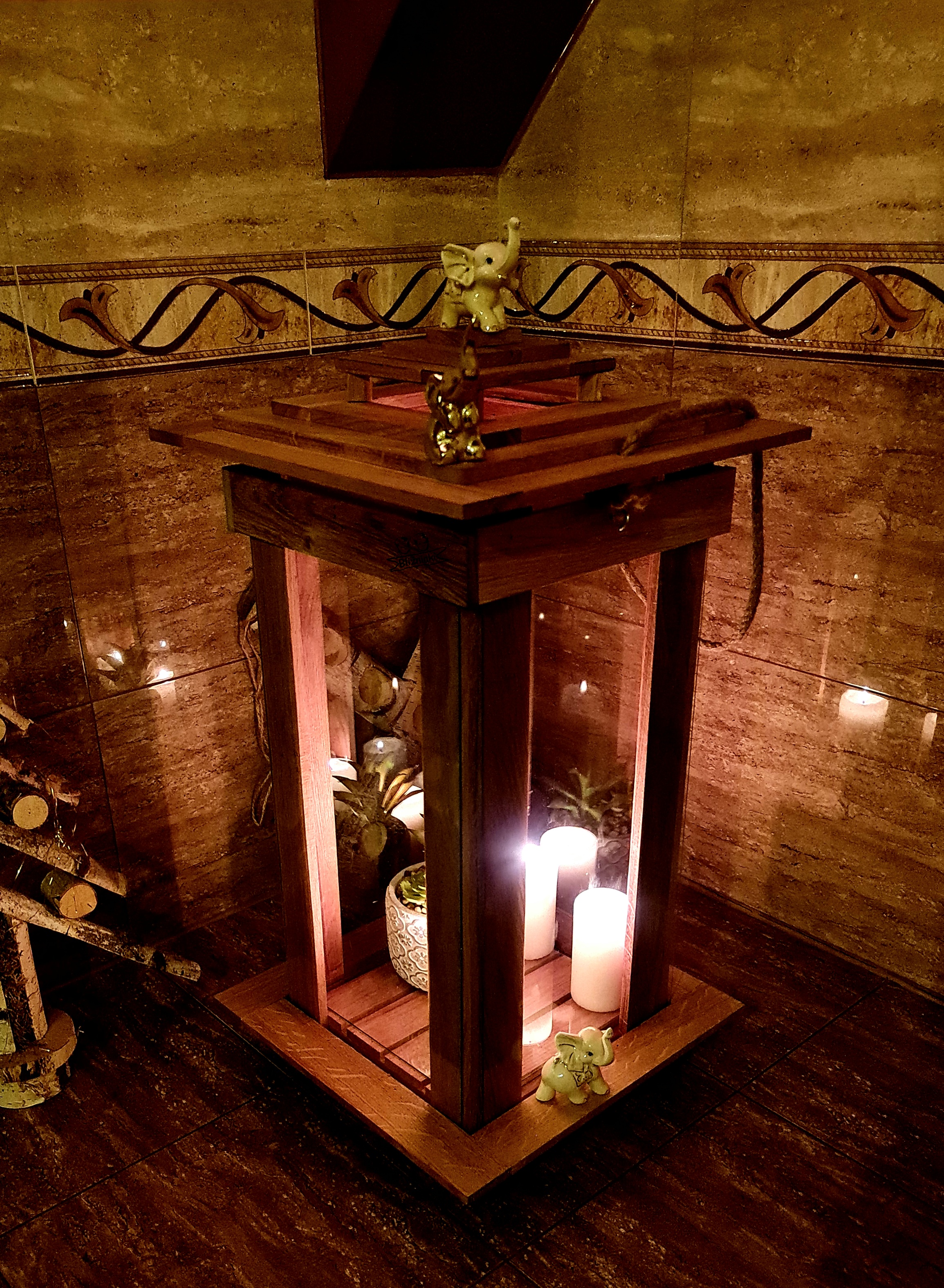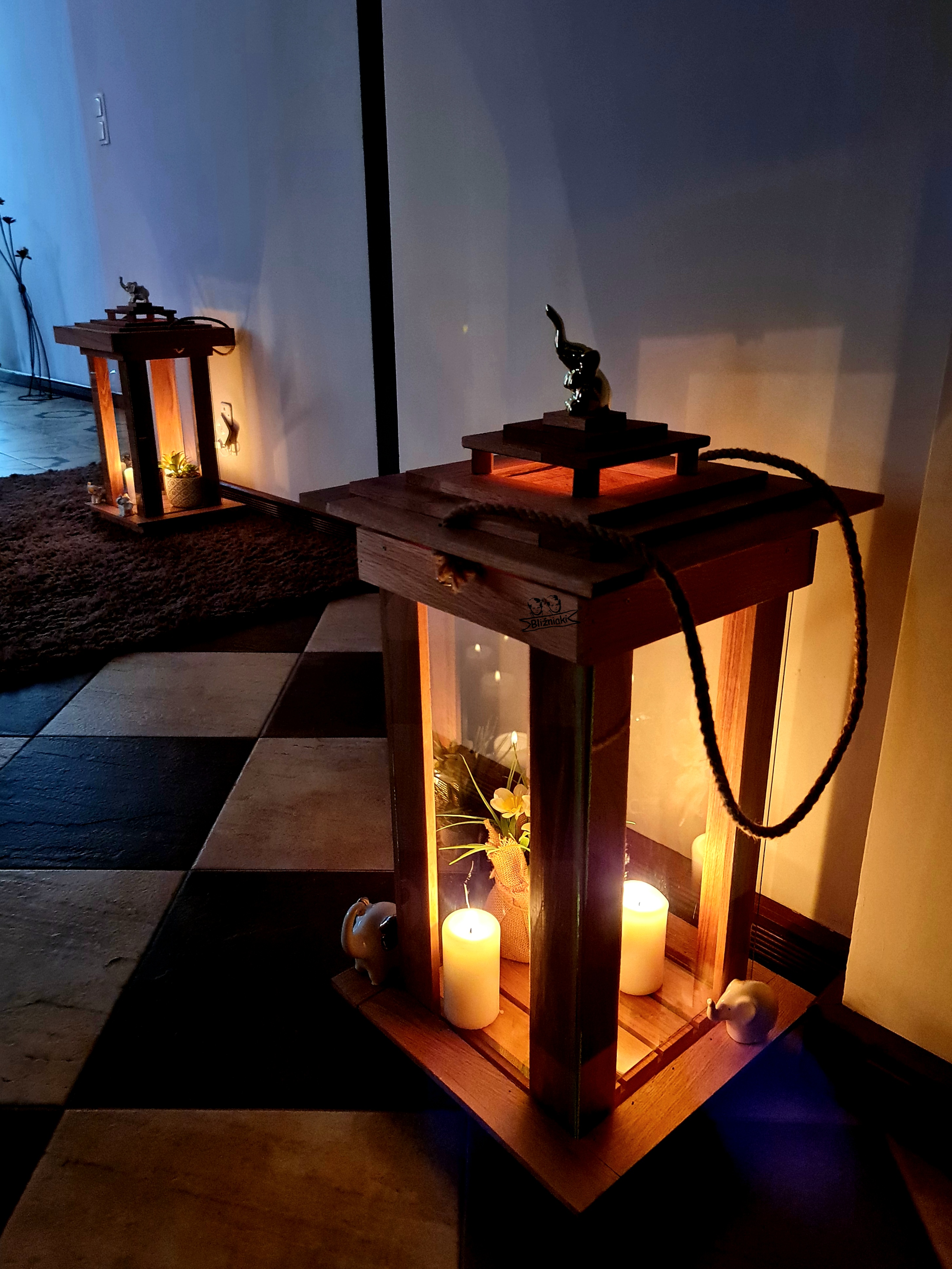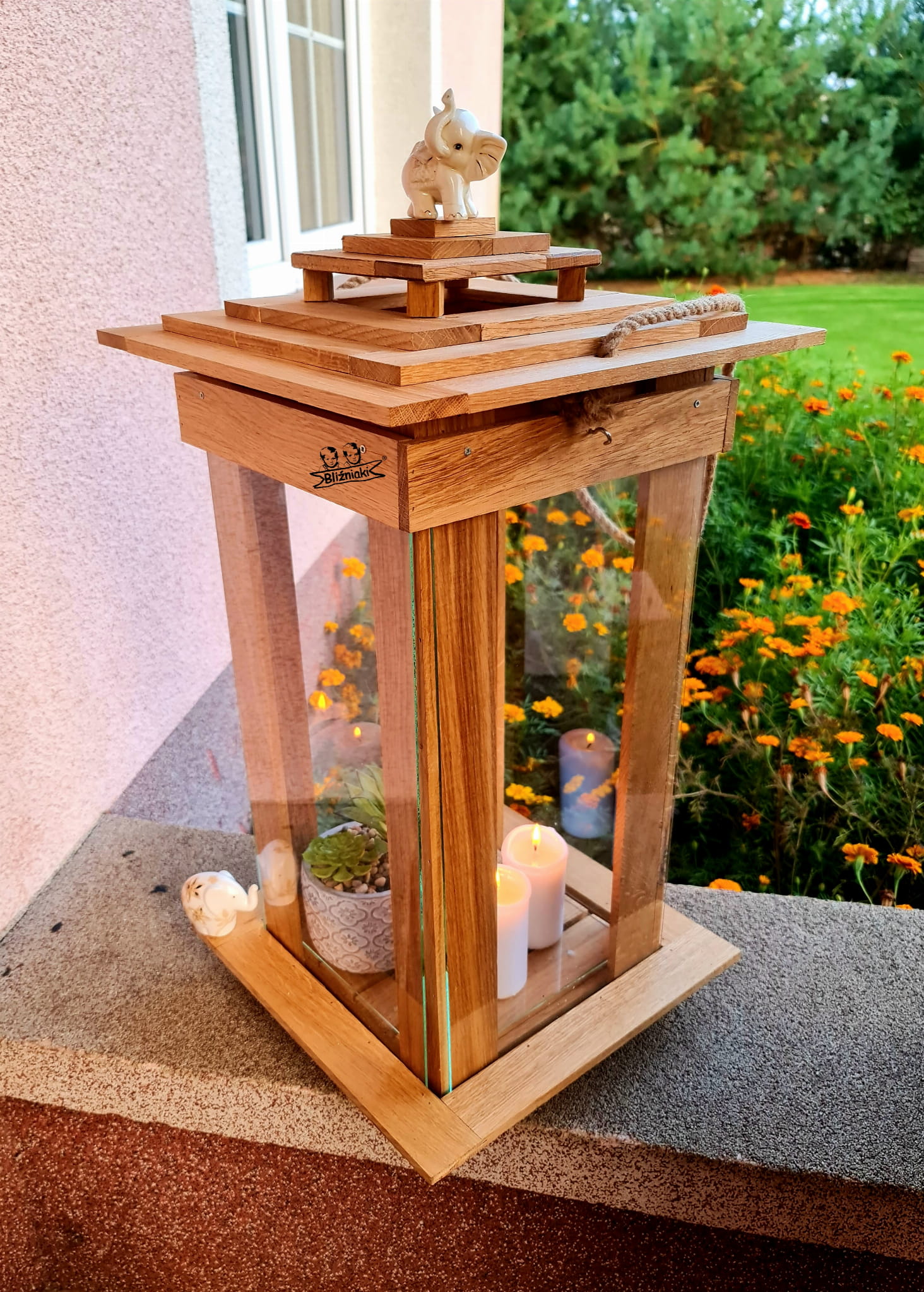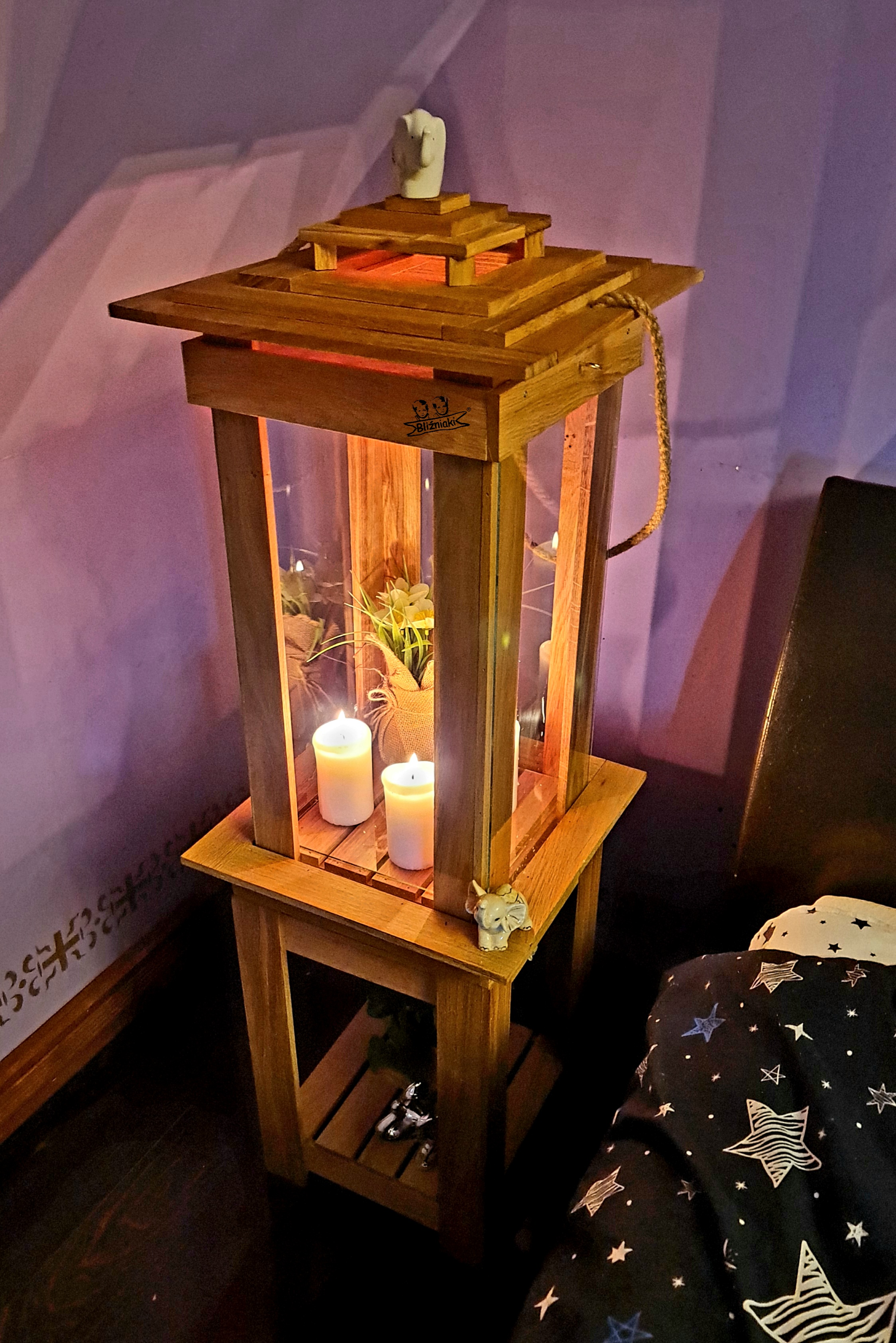 PRZEDMIOTEM AUKCJI JEST LAMPION wykonany jest z solidnego drewna i szkła .Zrobiony jest ręcznie z dbałością o każdy drobny szczegół . Lampiony obecnie są najmodniejszą dekoracją każdego pomieszczenia, który tworzy fenomenalny element każdego modnego salonu, ogródka.Lampion może służyć również jako kpliczka . Pokrywa lampionu otwierana jest od góry dzięki czemu jest trudno dostępny dla dzieci. Dziecko nie jest w stanie otworzyć lampionu i wyciągnąć gorącej świeczki dzięki czemu się nie poparzy.