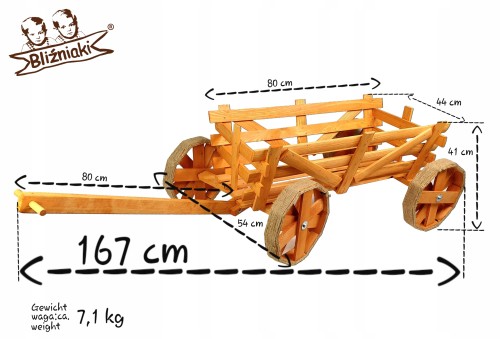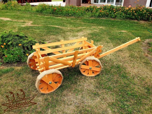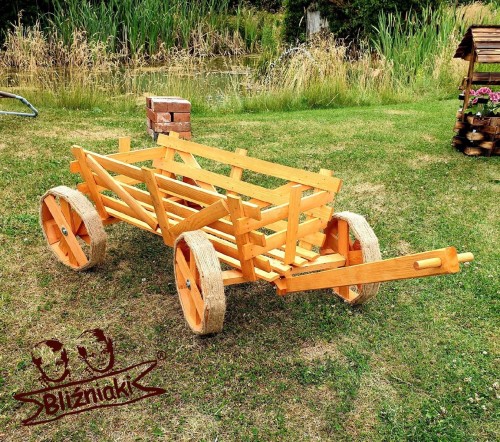 Ozdobny drewniany wóz drabiniasty wykonany z najlepszej jakości drewna sosnowego impregnowanego: