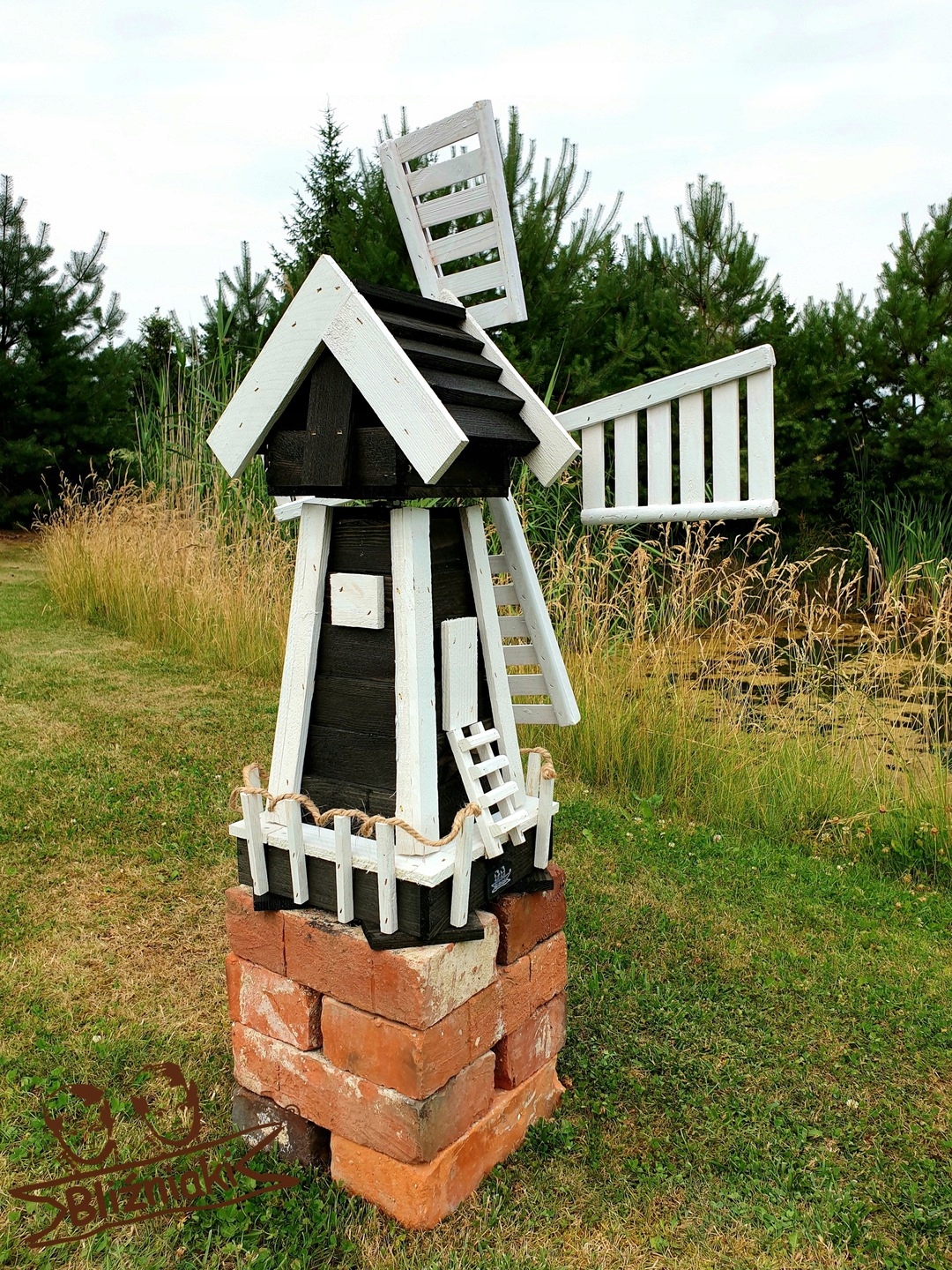 Dekoracyjny wiatrak z drewna Solidny 73 CM Figura drewniana Impregnowany ozdobny Czarno-biały WP1 CZ BI
