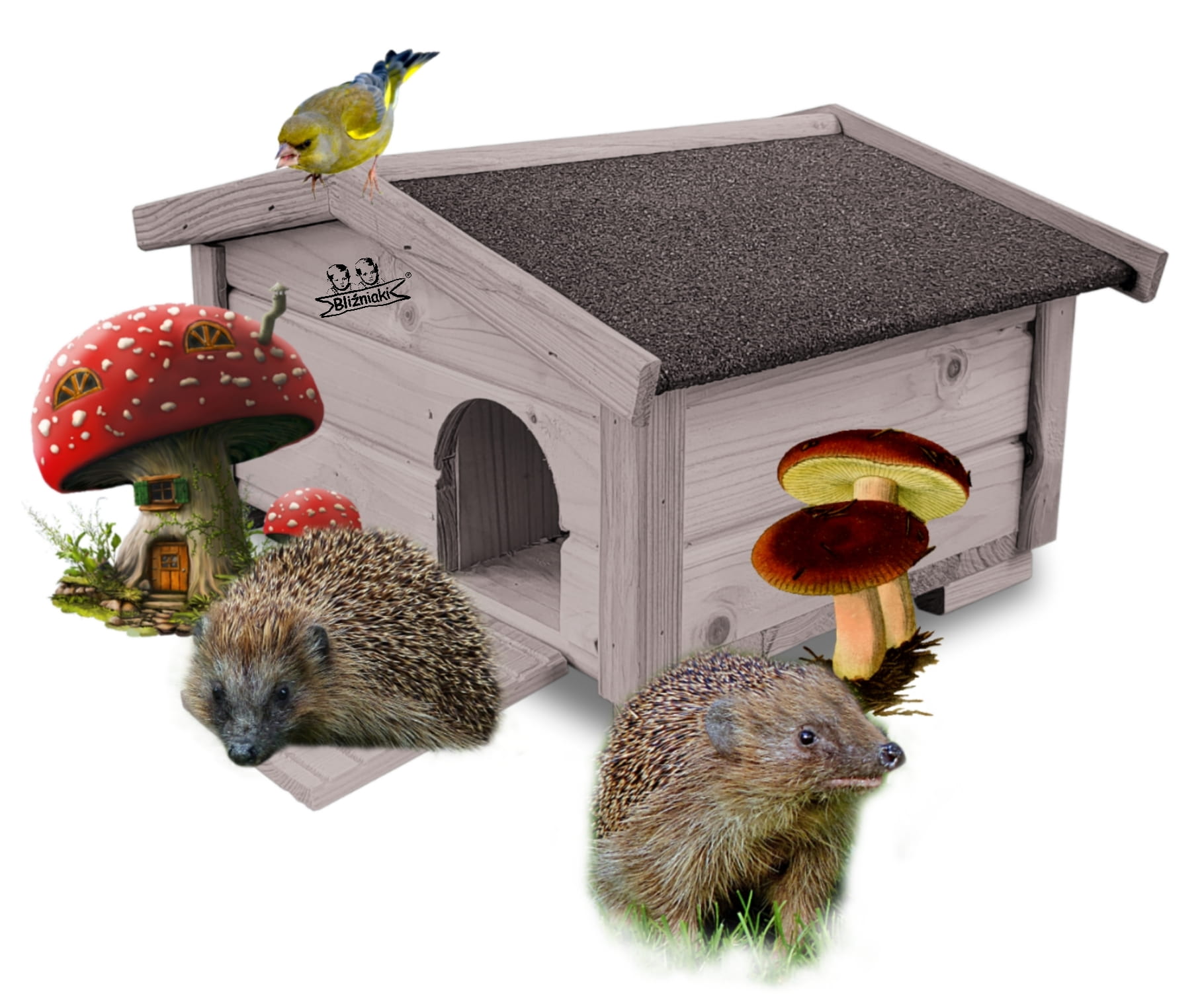 Domek drewniany dla jeża stanowić będzie niezwykle dekoracyjny element architektury ogrodowej. schronienie całoroczne dla jeża, miejsce do hibernacji od jesieni do wiosny a także jako domek do lęgowania i bytowania tych przyjaznych stworzeń w pozostałej części roku.