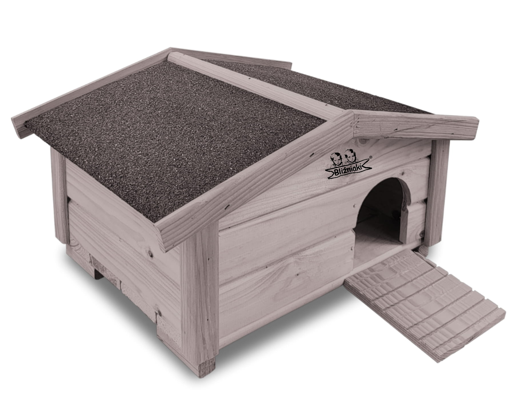 Domek dla jeża wykonany w całości z drewna, dach, będzie doskonałym schronieniem na każdą porę roku. Dach wzmocniony PAPĄ BITUMICZNĄ przed przeciekaniem i termoizolacją , czyni go odpornym na warunki atmosferyczne na każdą porę roku.