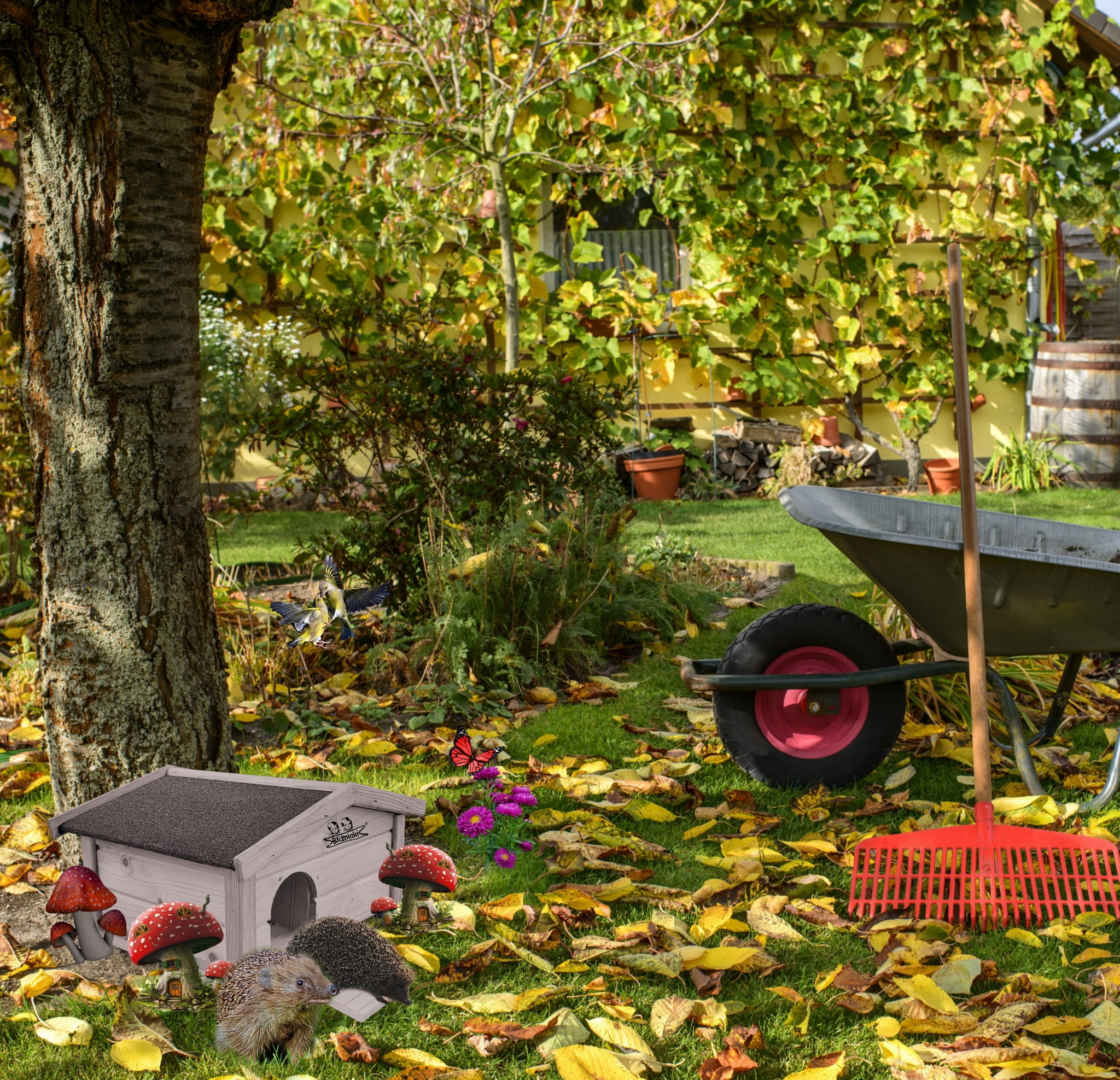 - domek dla jeża stanowi również dekoracyjny element malej architektury ogrodowej