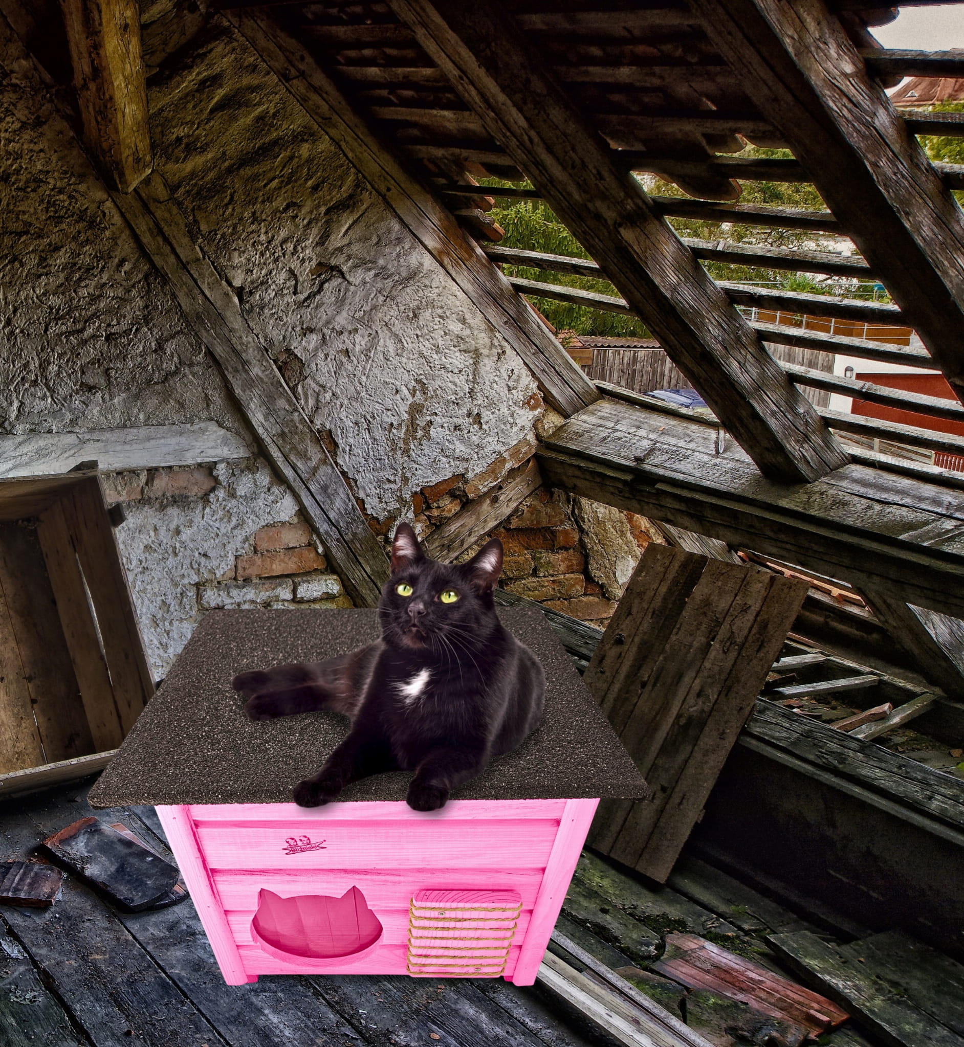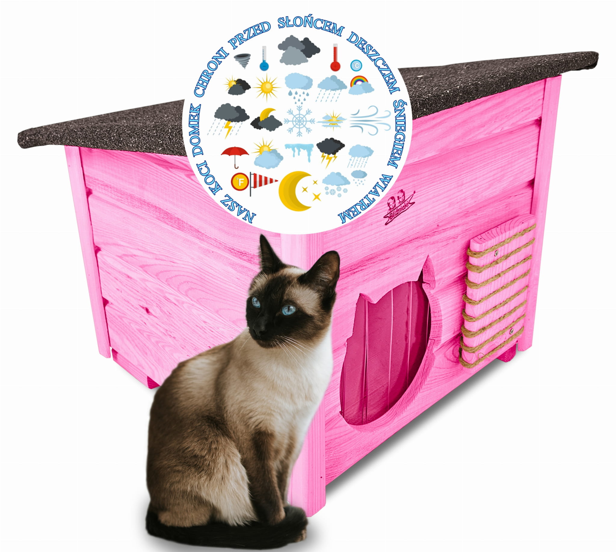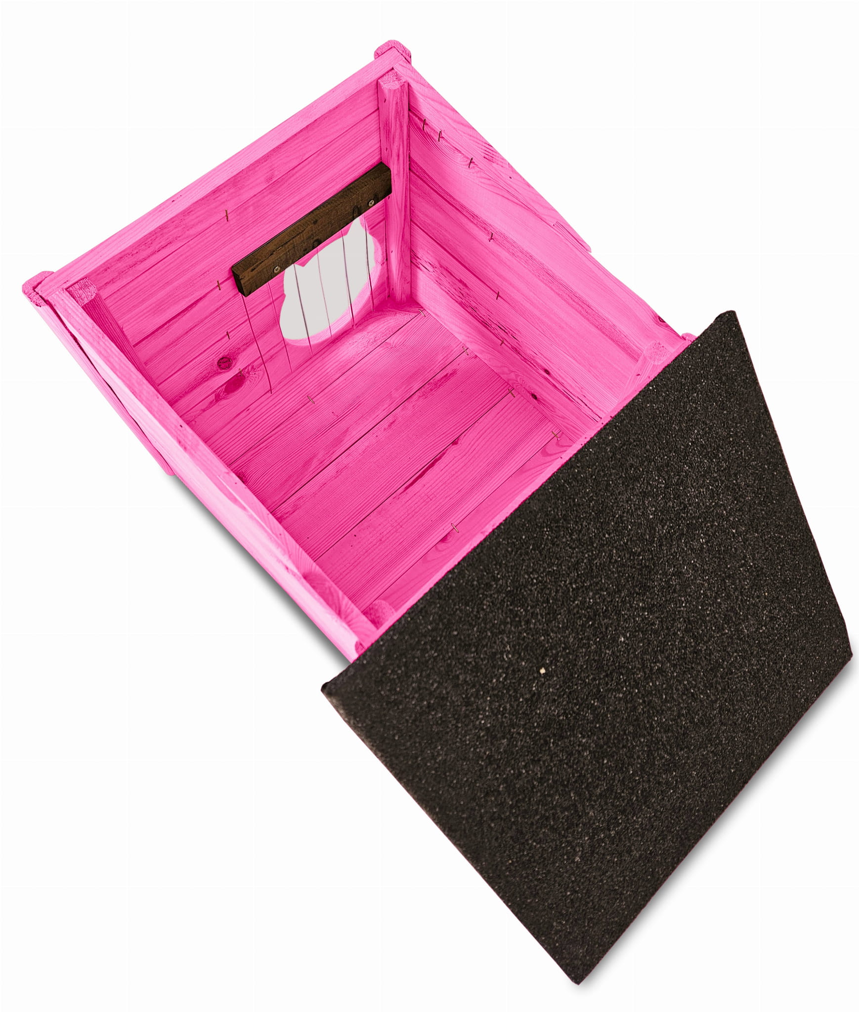 Poddane impregnacji drewno sprawia, że oferowana przez nas DOMEK DLA KOTA jest odporna na szkodliwe działanie wody oraz wilgoci, promieni UV, a także grzybów i pleśni a przy tym ma piękny różowy kolor drewna.