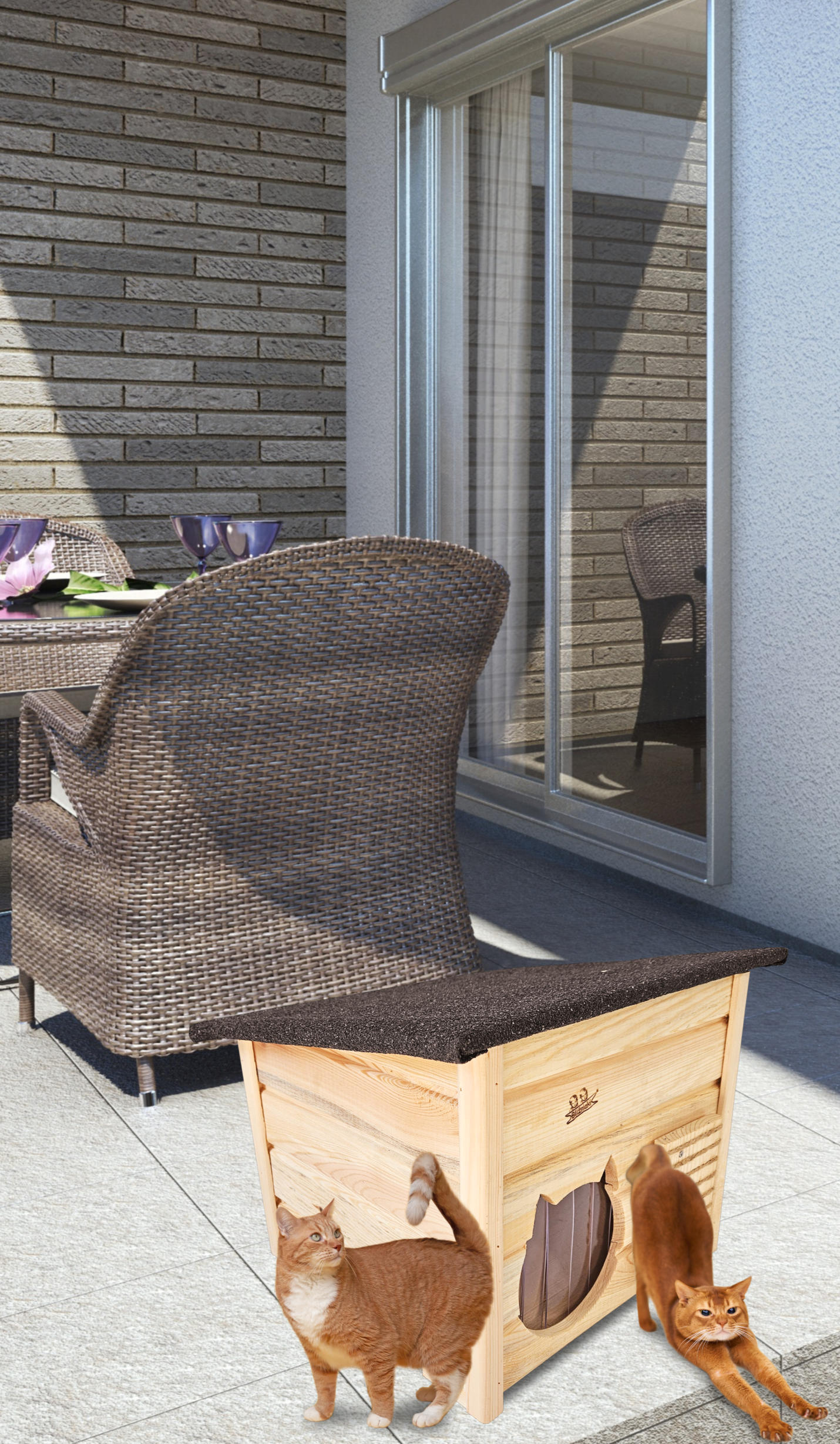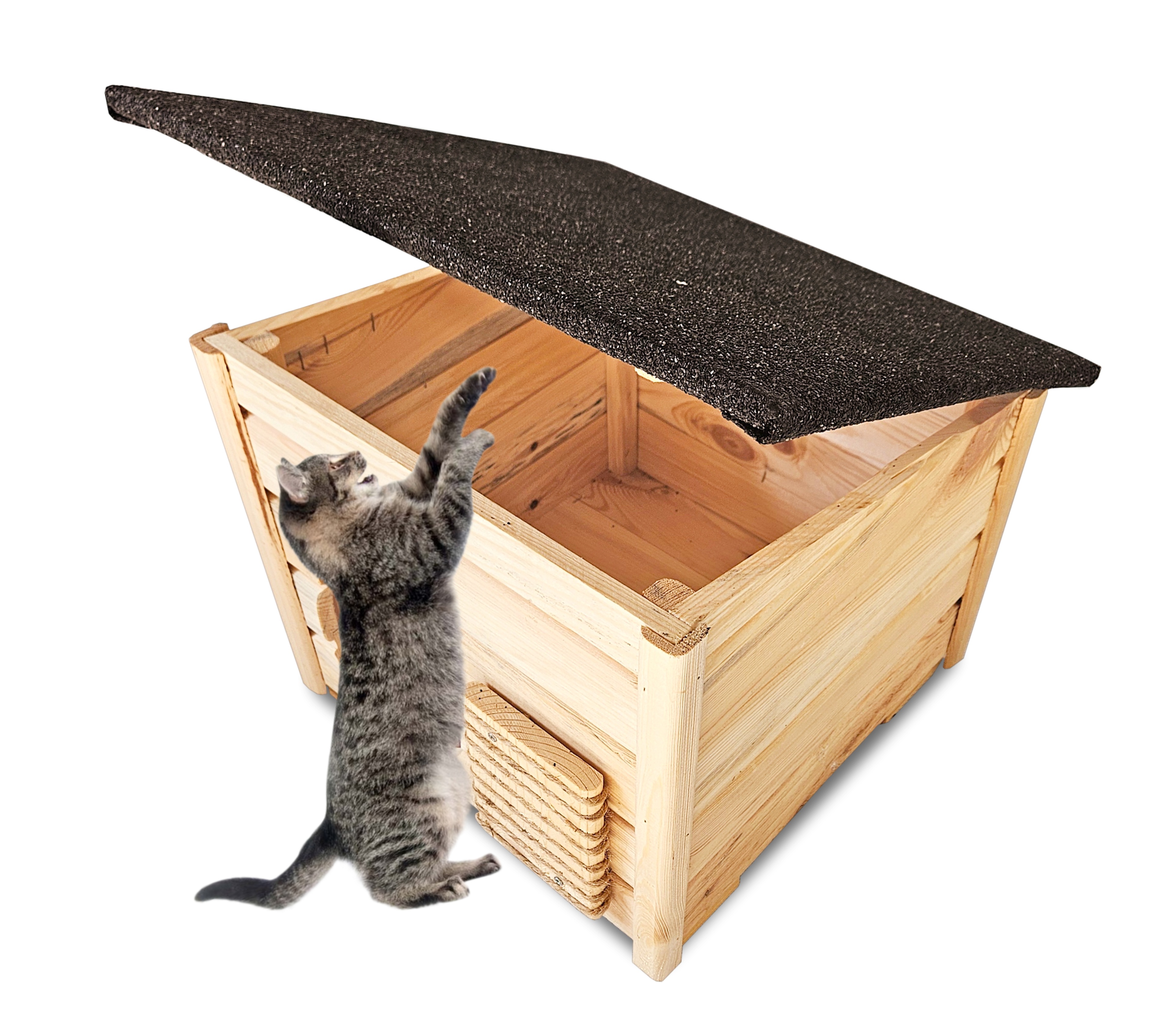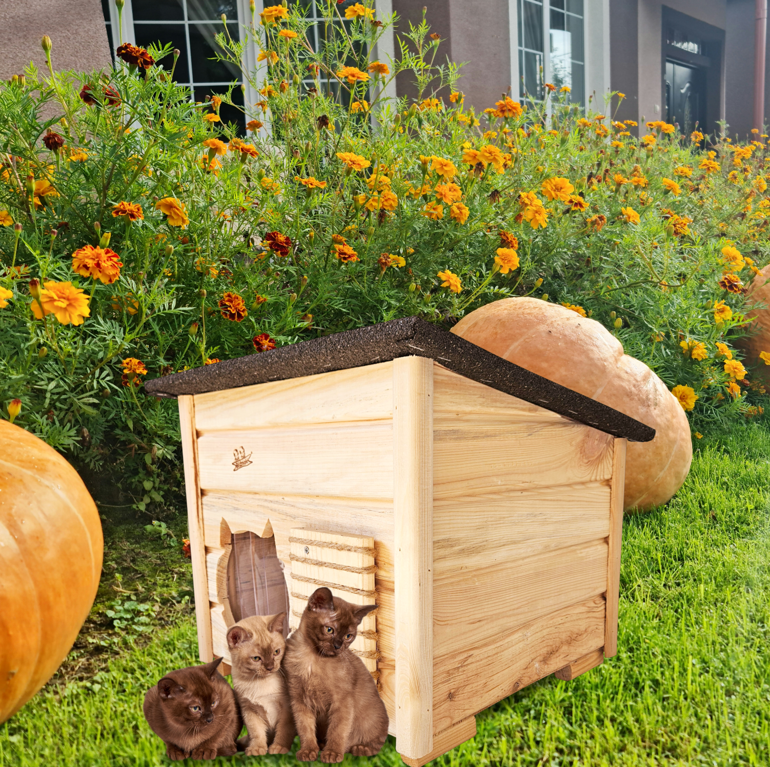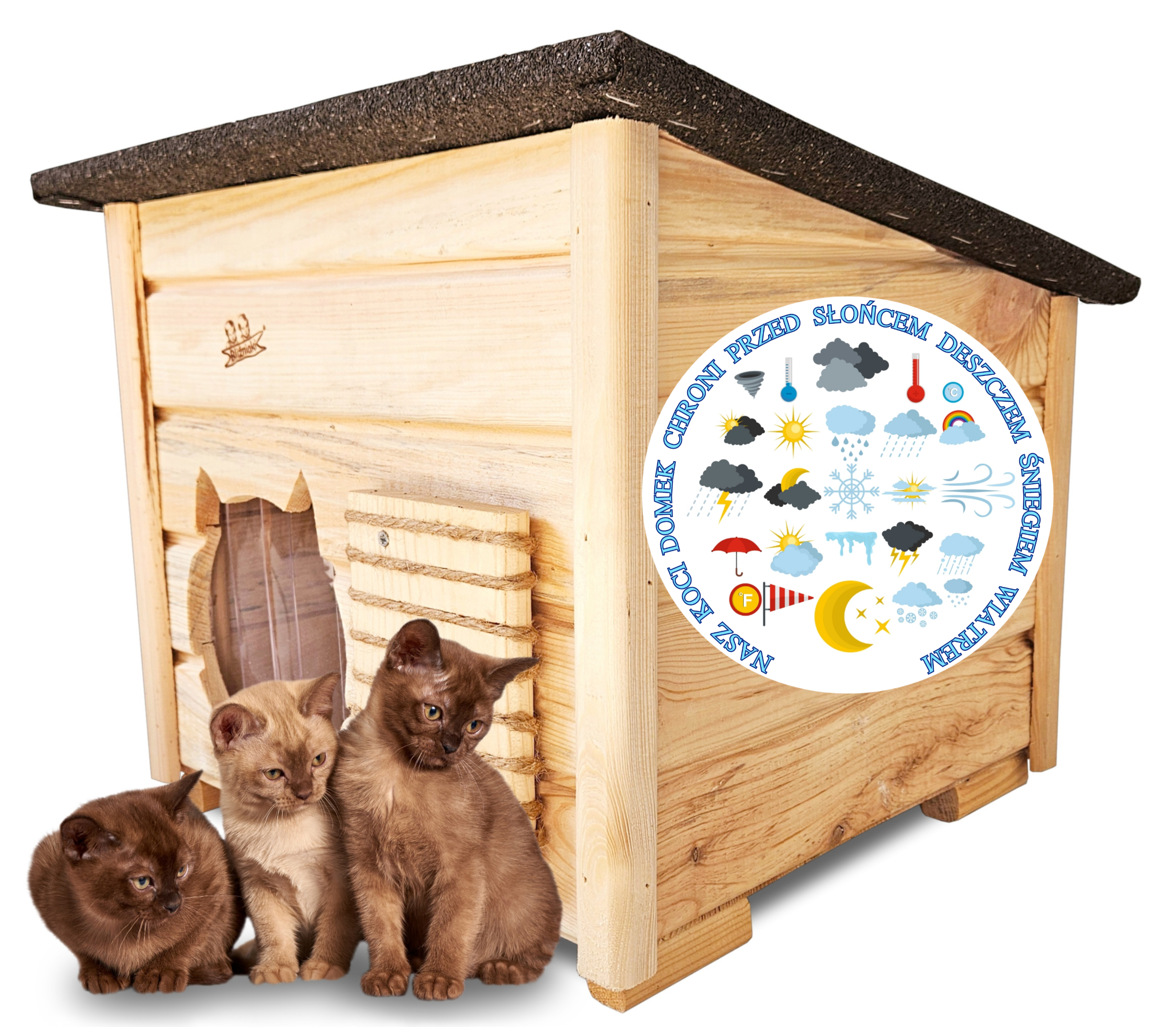 Domek zapewni kotom spokojne, komfortowe miejsce odpoczynku i schronienie przed zimnem oraz upałami.