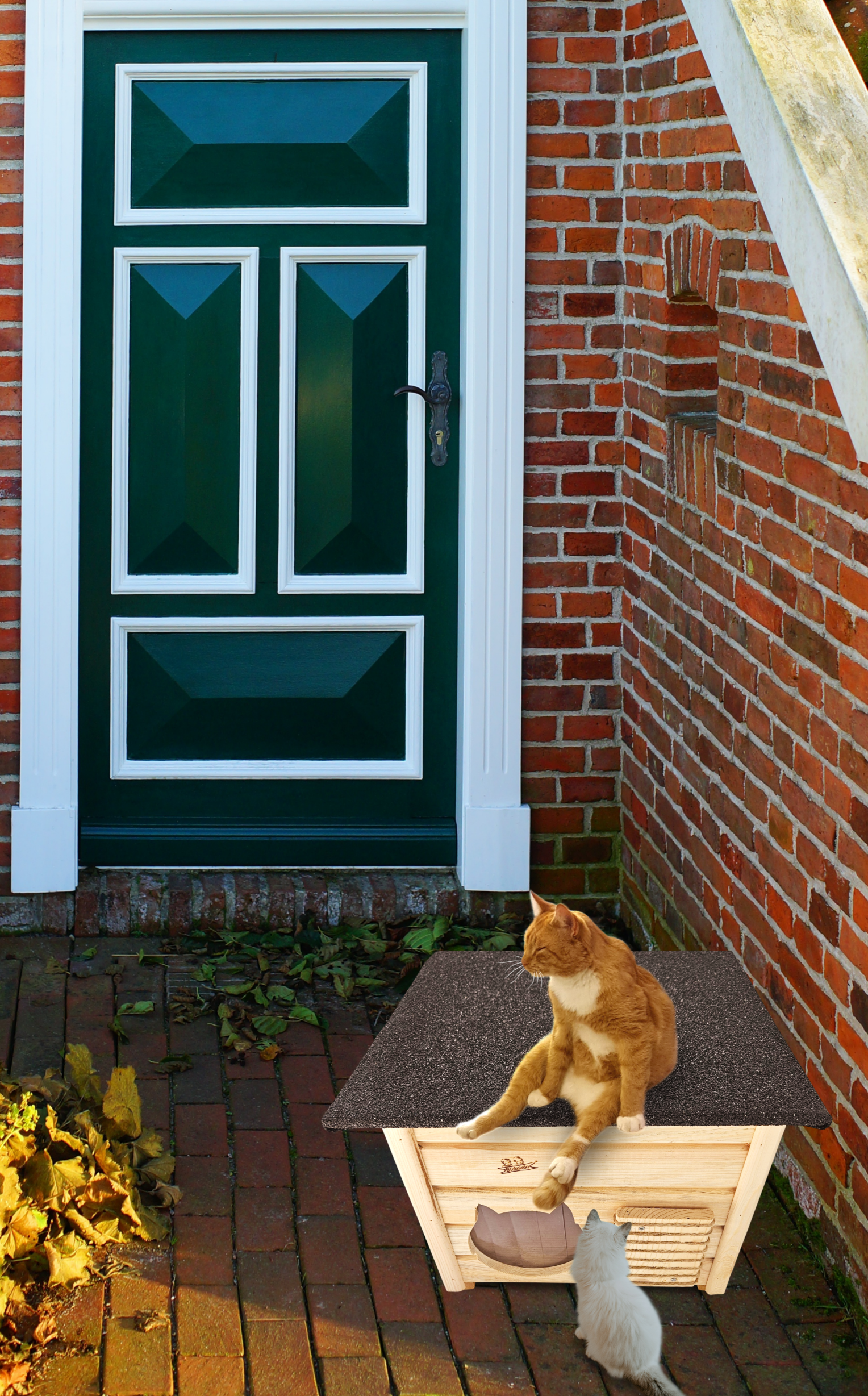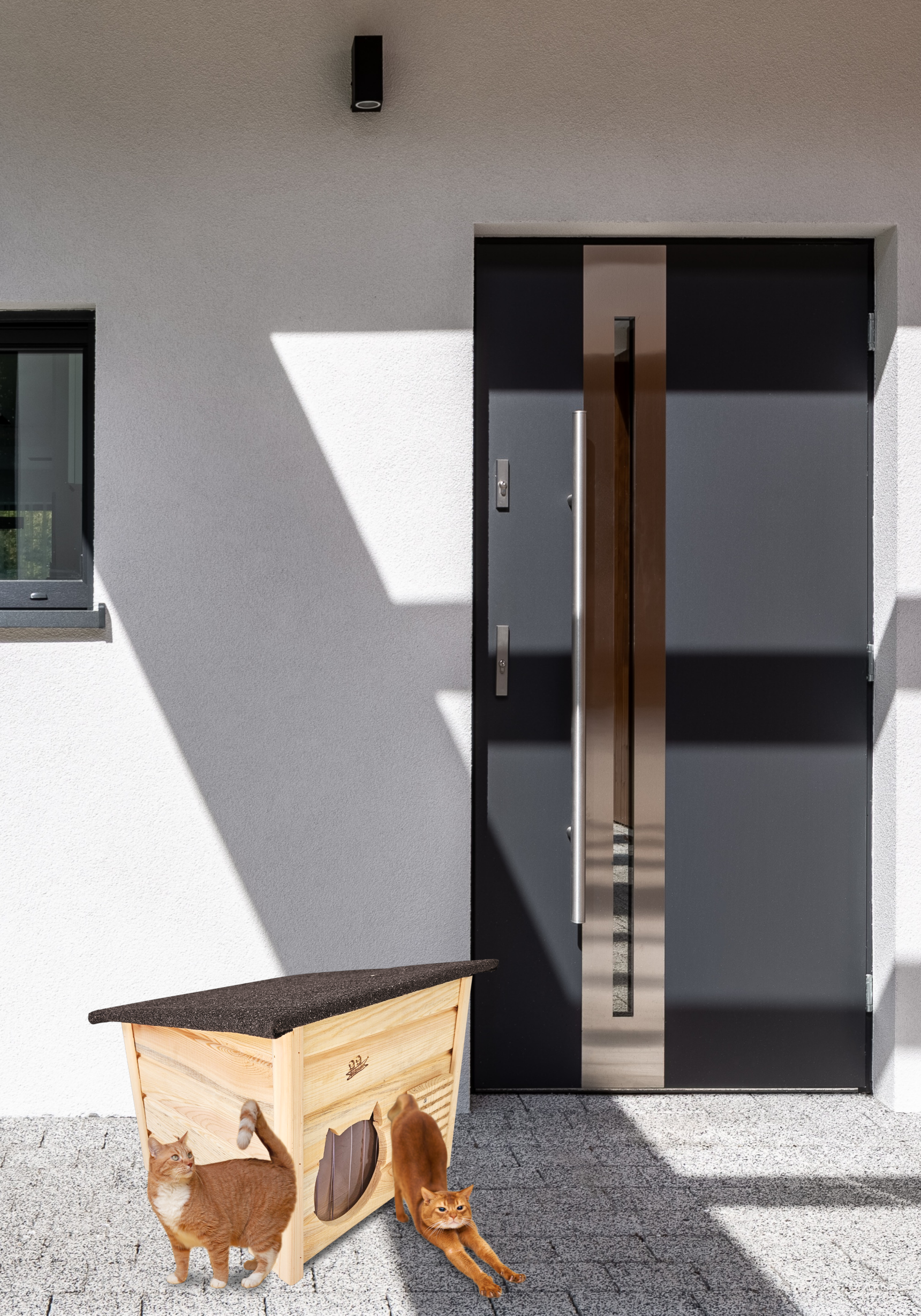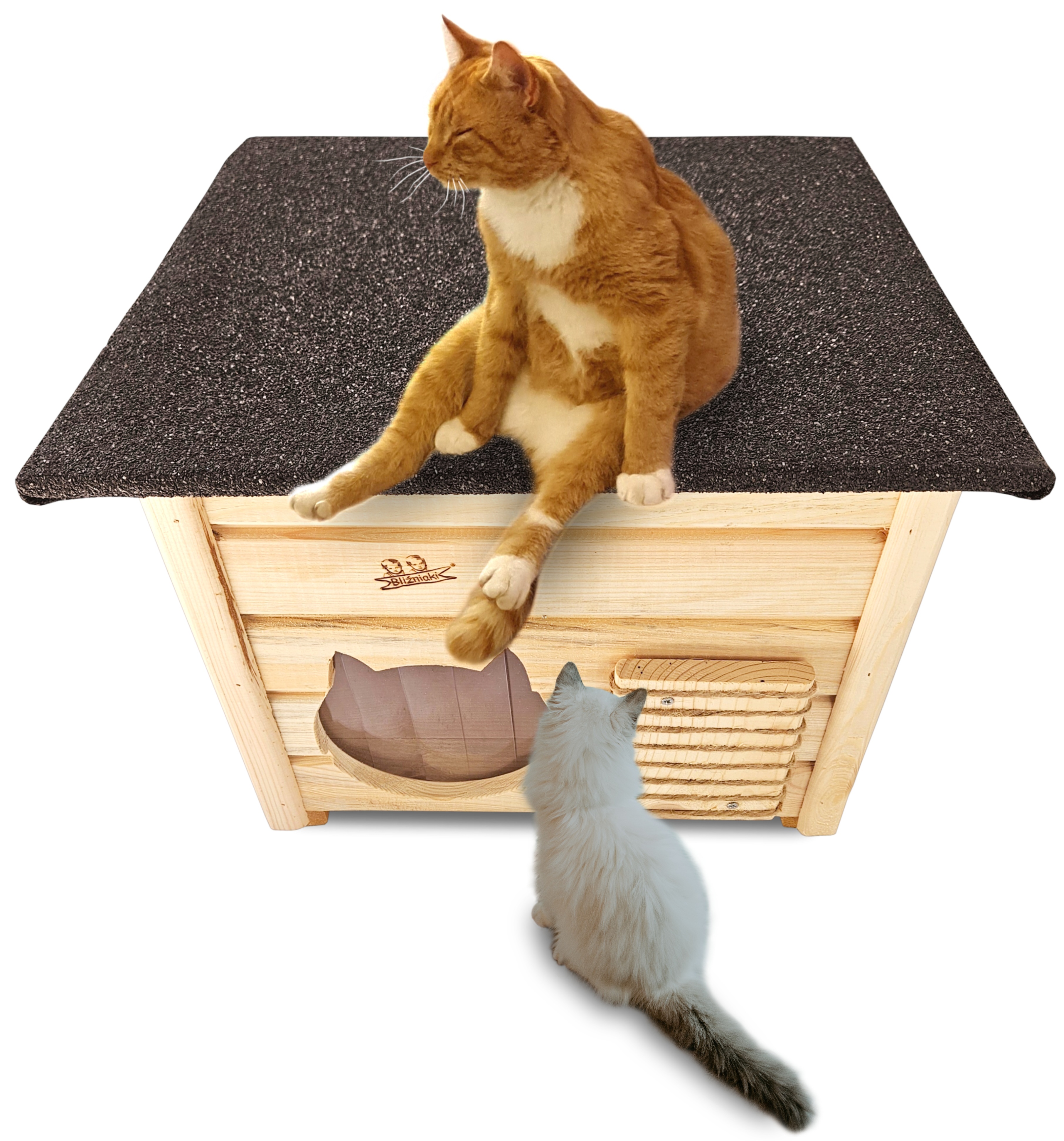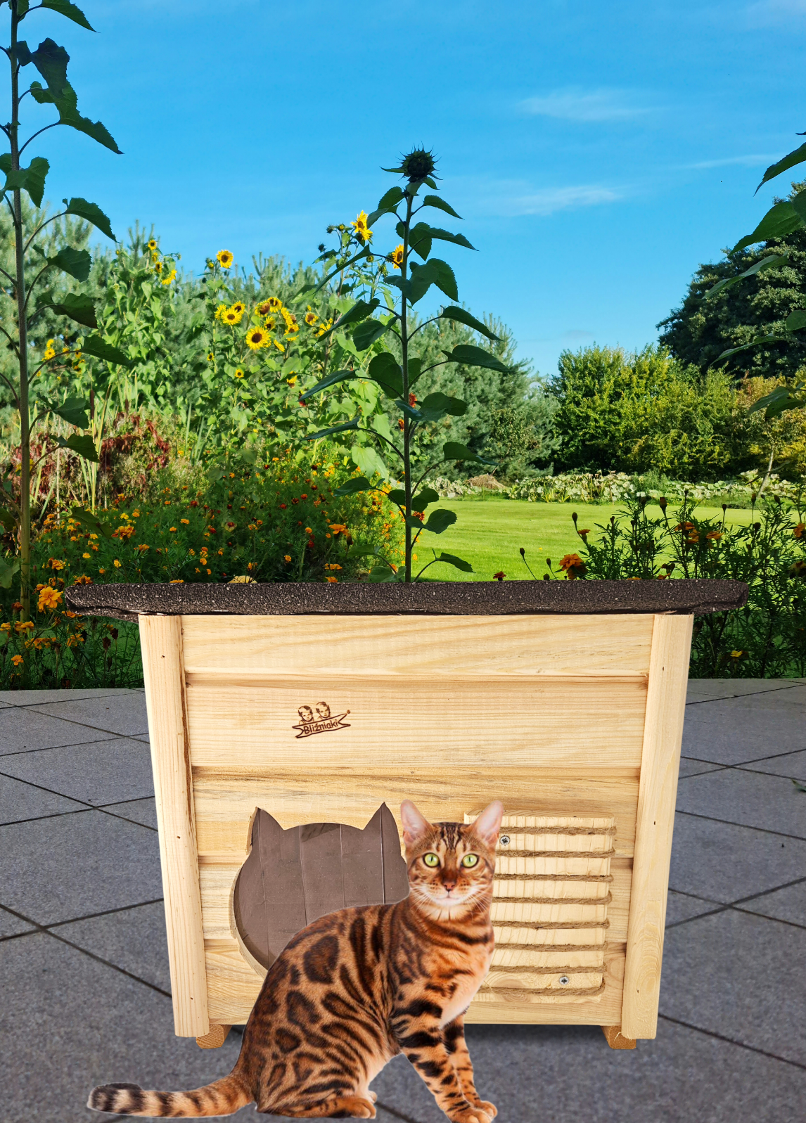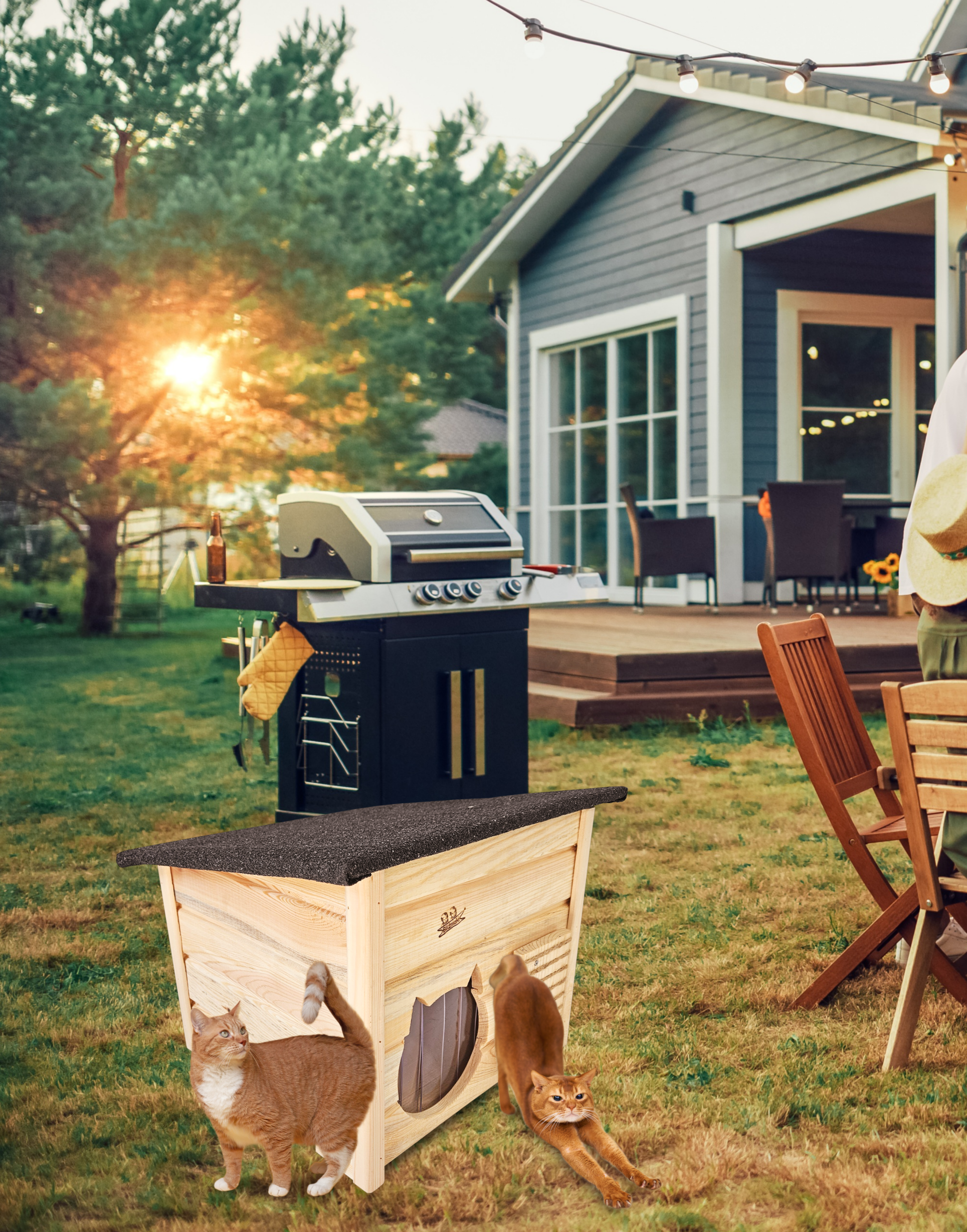 Domek zapewni kotom spokojne, komfortowe miejsce odpoczynku i schronienie przed zimnem oraz upałami.