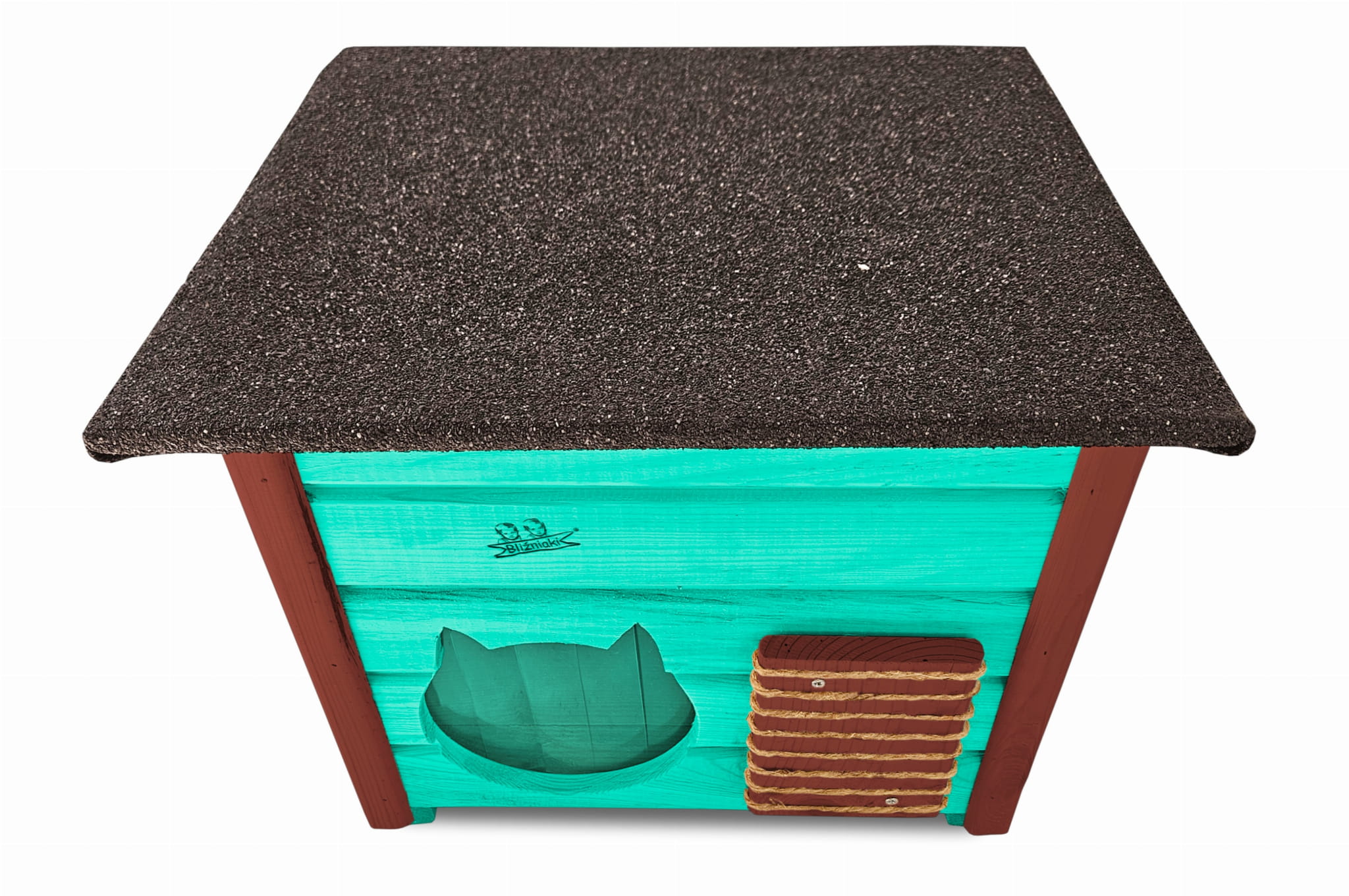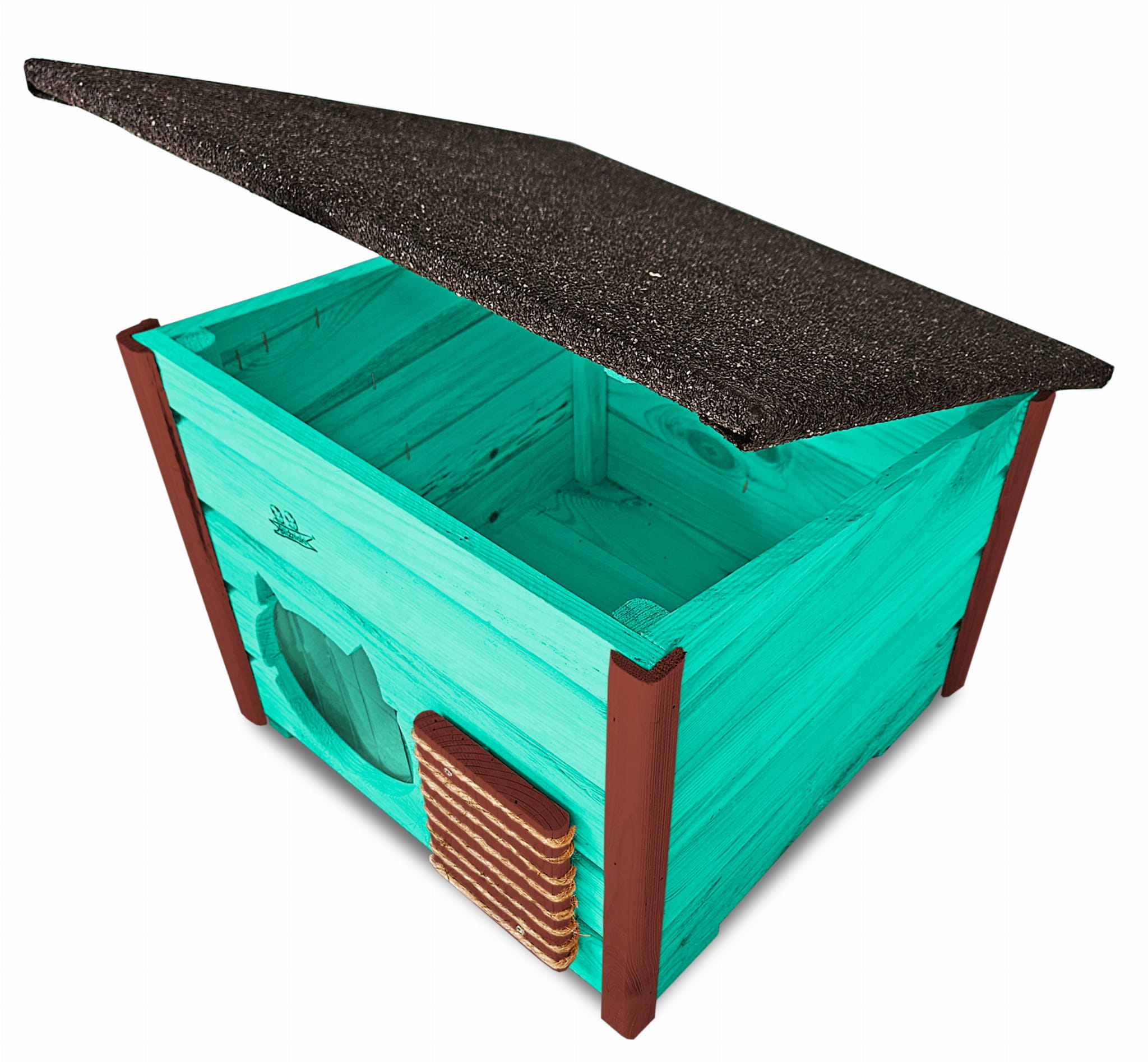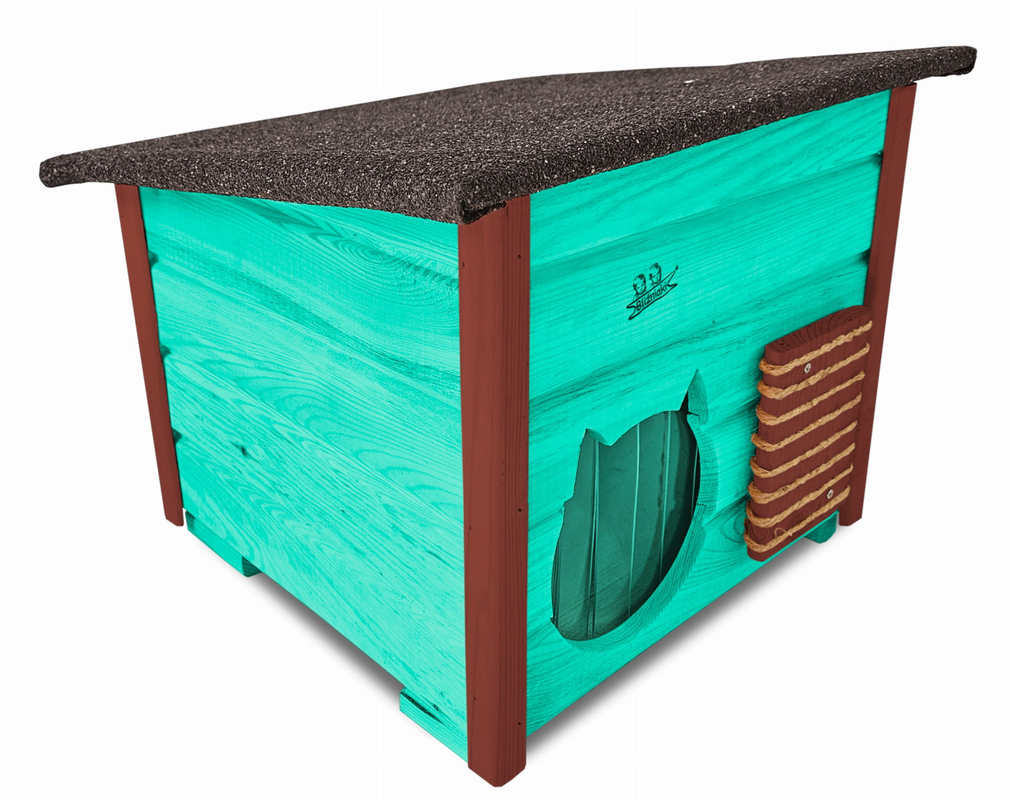Poddane impregnacji drewno sprawia, że oferowana przez nas DOMEK DLA KOTA jest odporna na szkodliwe działanie wody oraz wilgoci, promieni UV, a także grzybów i pleśni a przy tym ma piękny MORSKI z dodatkami ORZECHOWEGO kolor drewna.