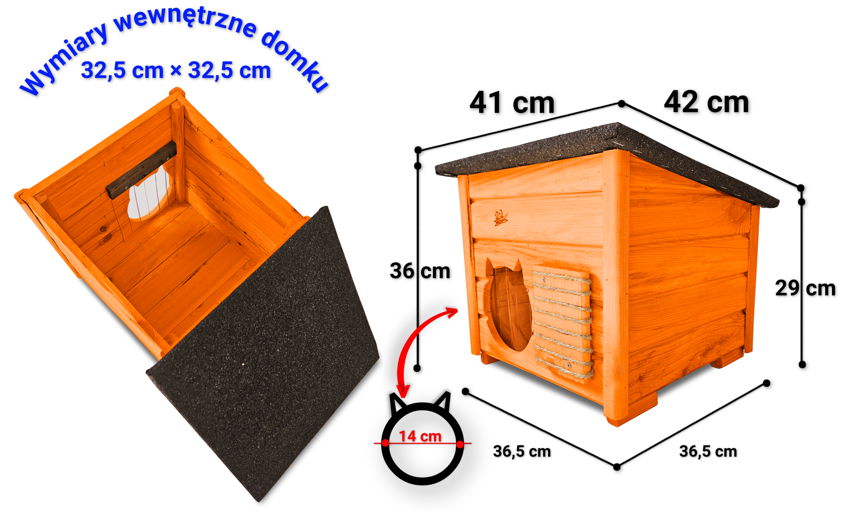 - wejście do domku ma odpowiedni duży otwór 14 cm
