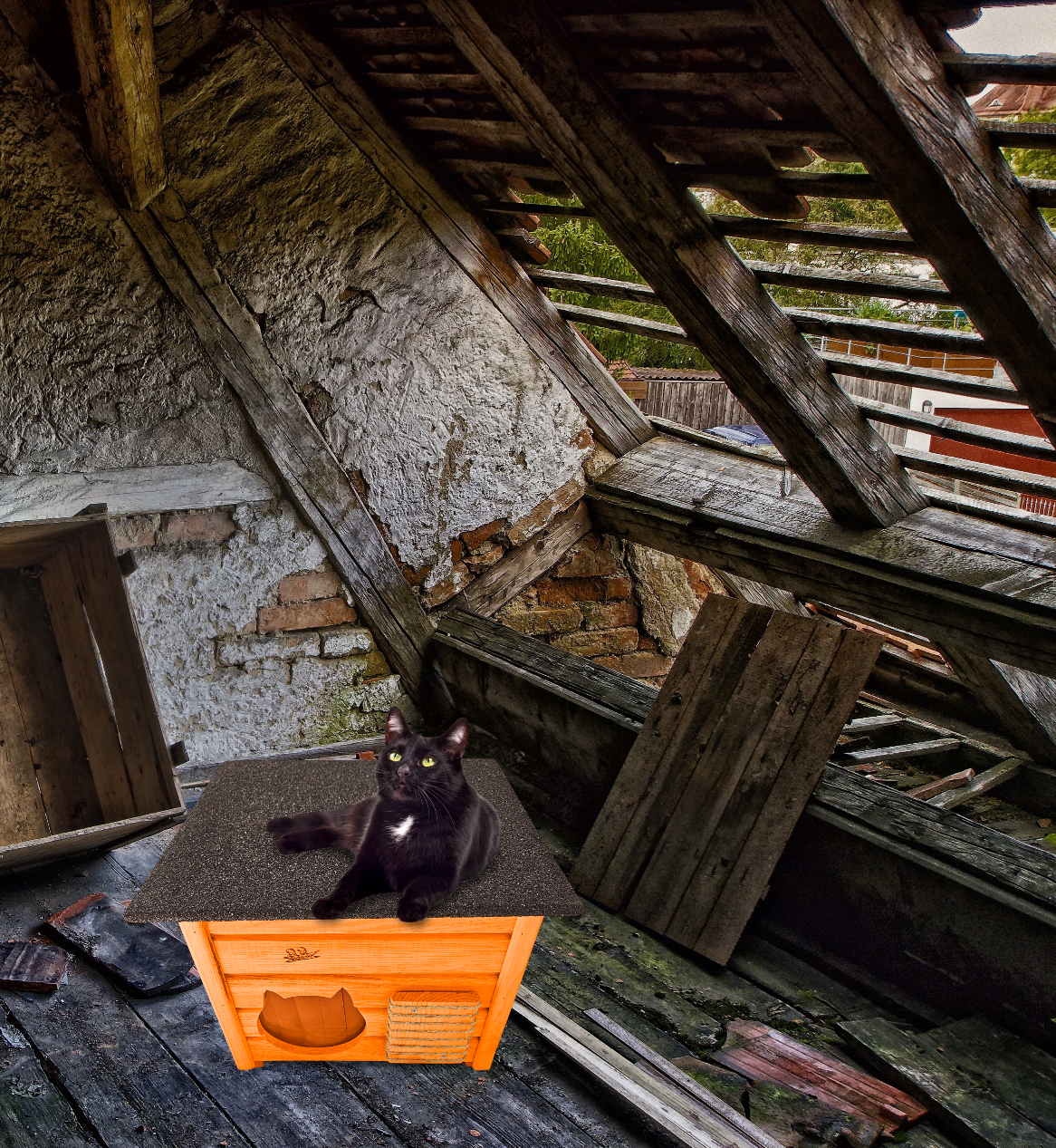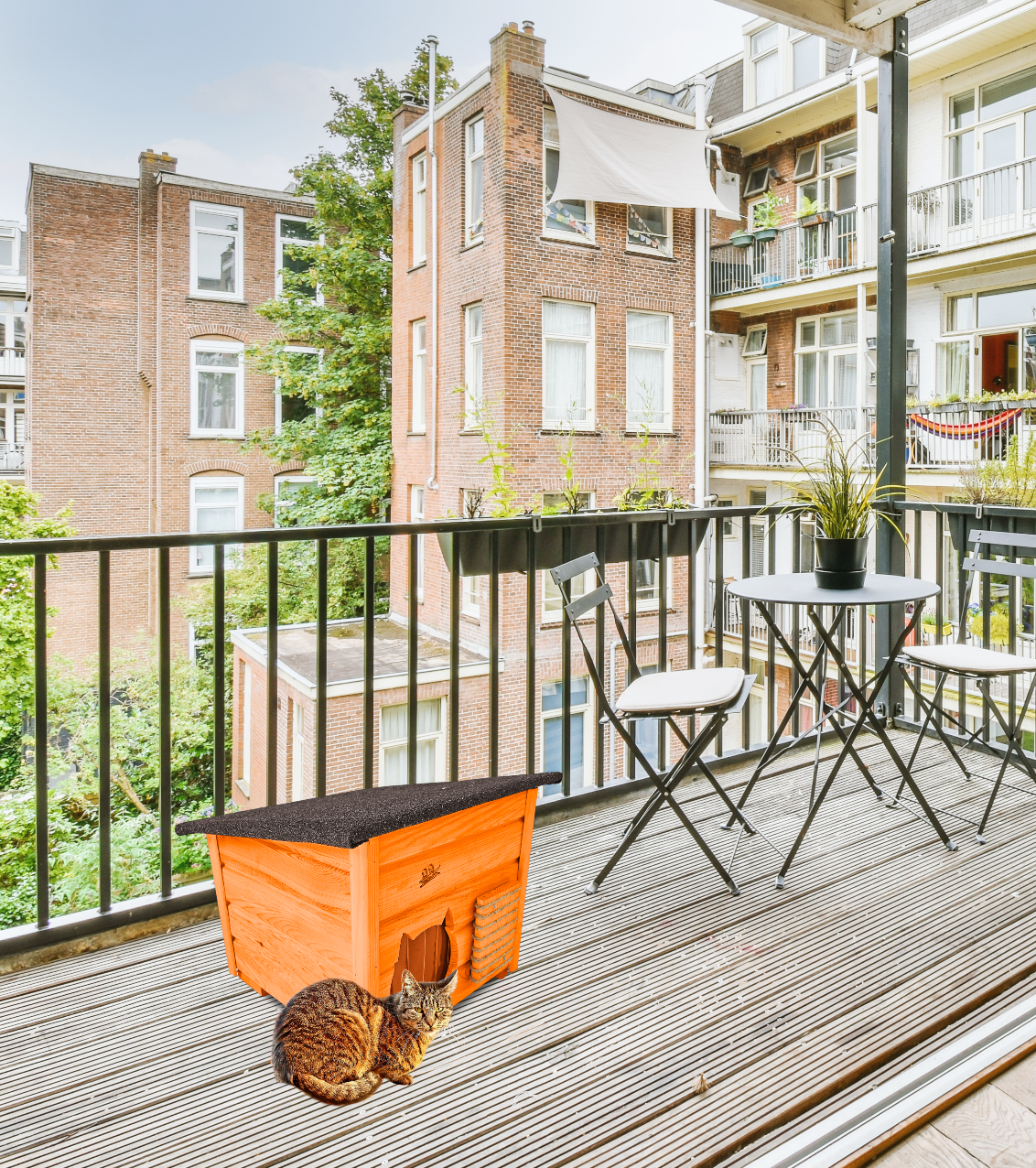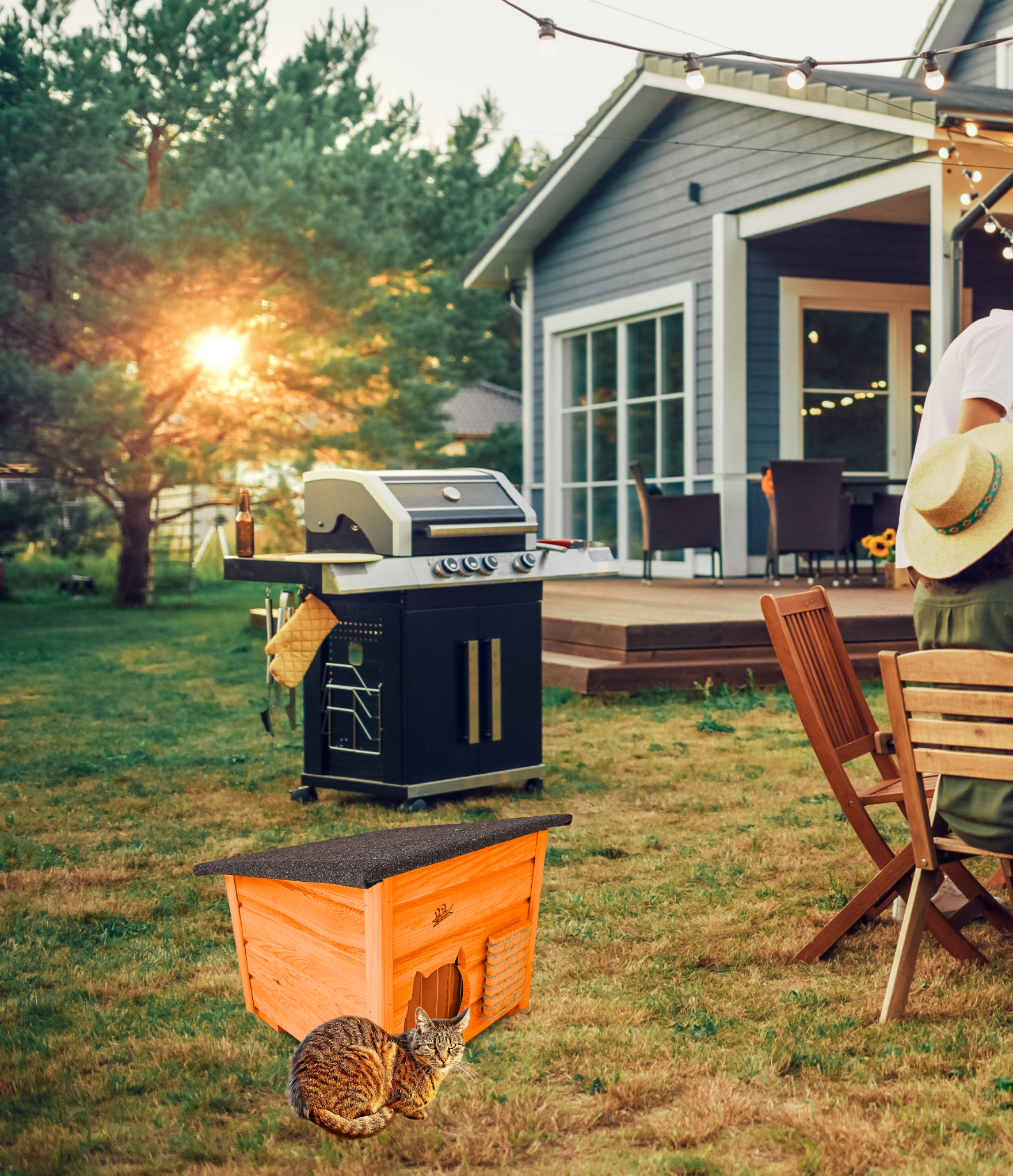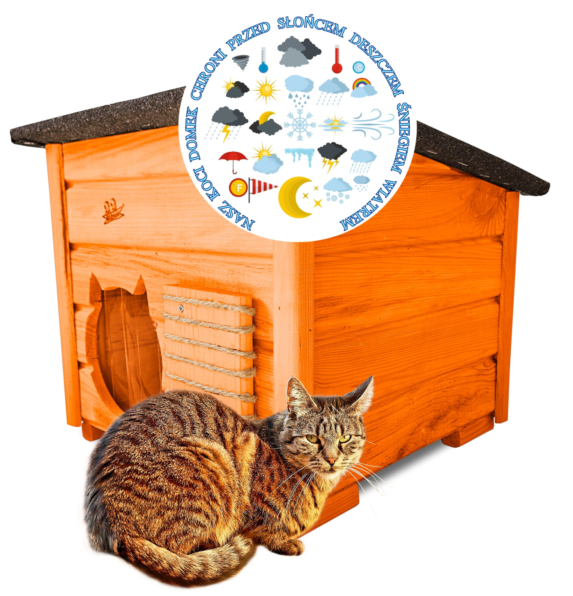 Domek zapewni kotom spokojne, komfortowe miejsce odpoczynku i schronienie przed zimnem oraz upałami.