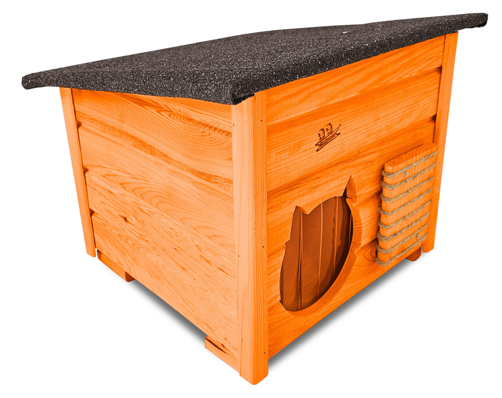 Poddane impregnacji drewno sprawia, że oferowana przez nas DOMEK DLA KOTA jest odporna na szkodliwe działanie wody oraz wilgoci, promieni UV, a także grzybów i pleśni a przy tym ma piękny olchowy kolor drewna.