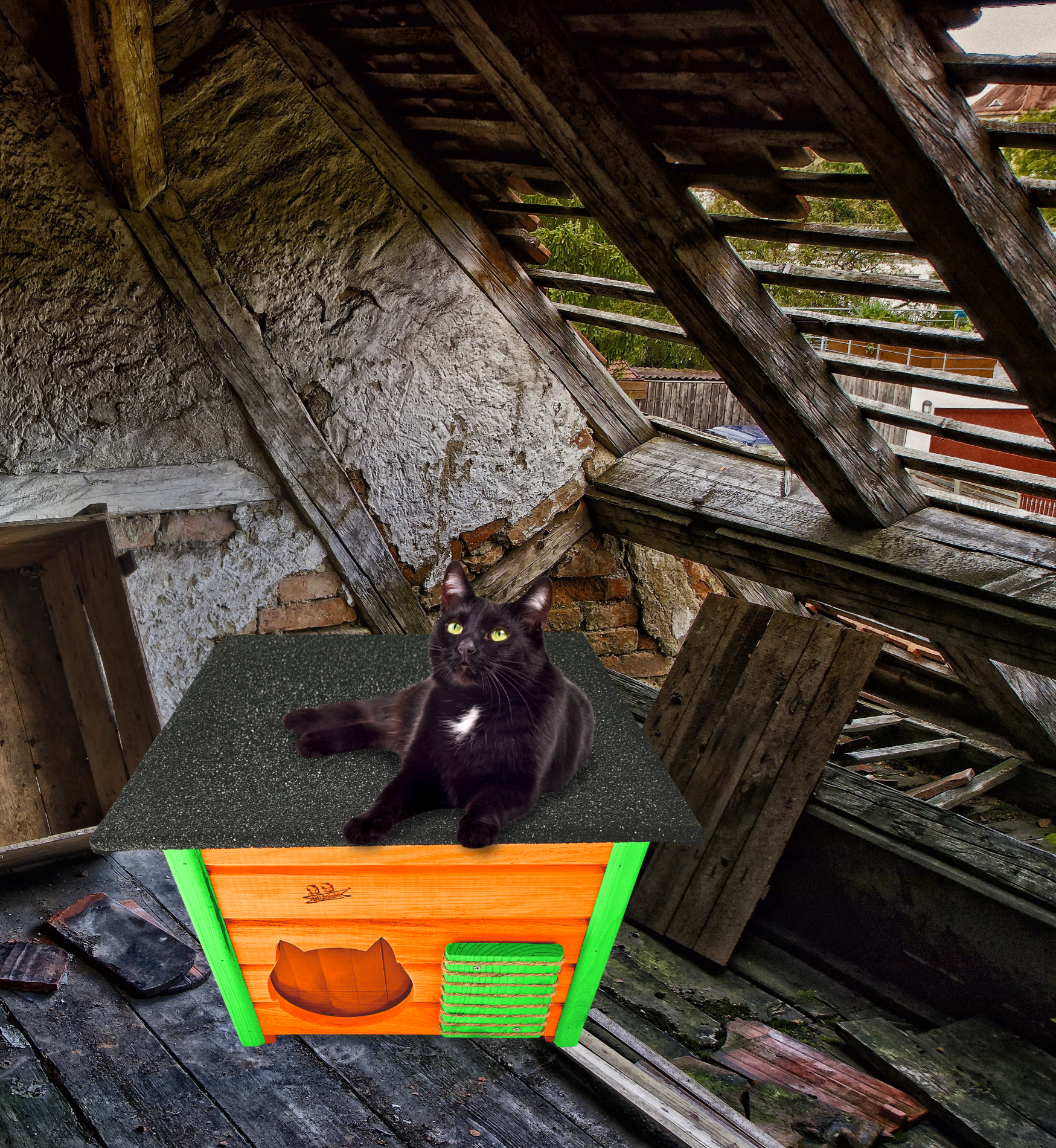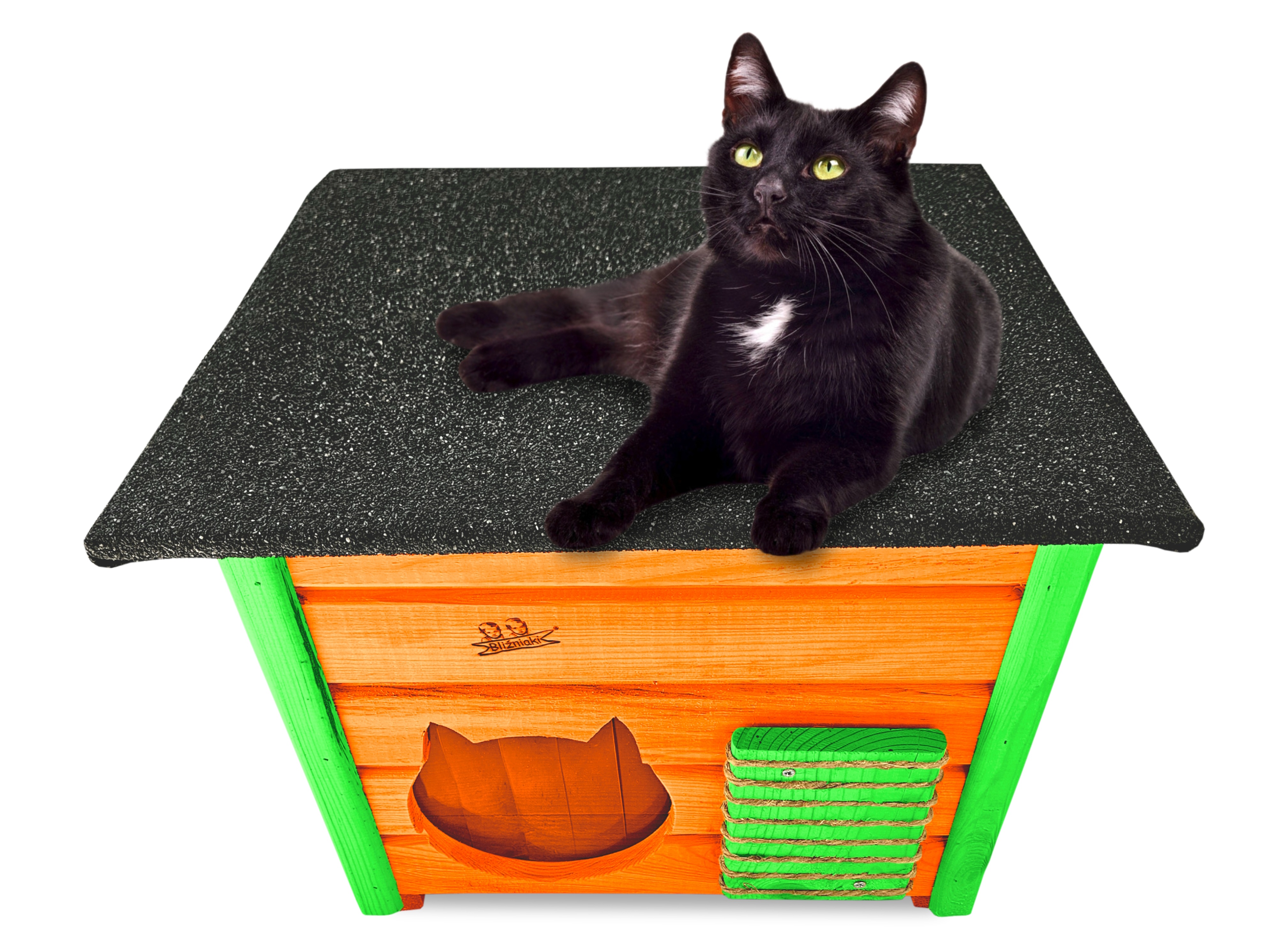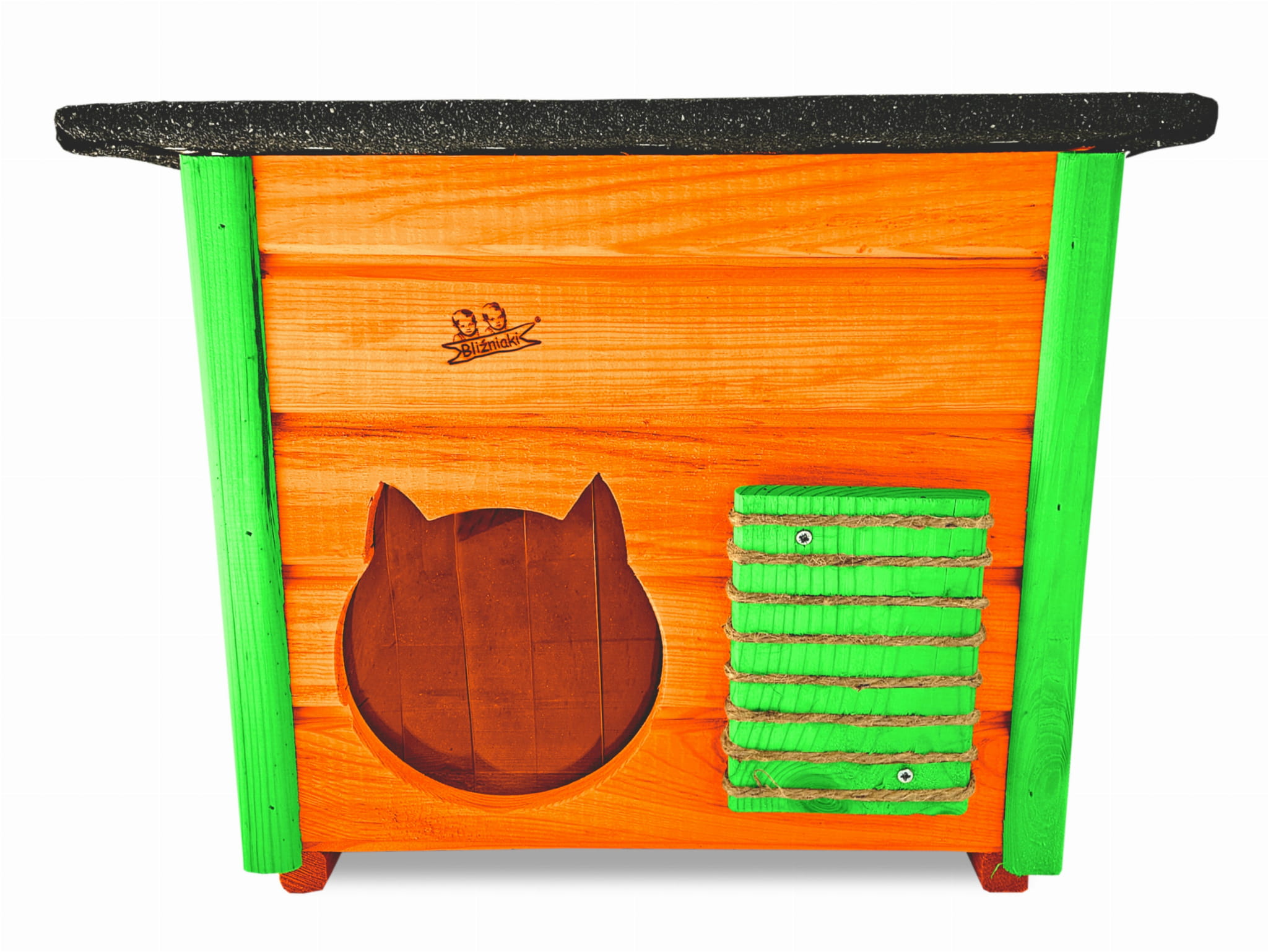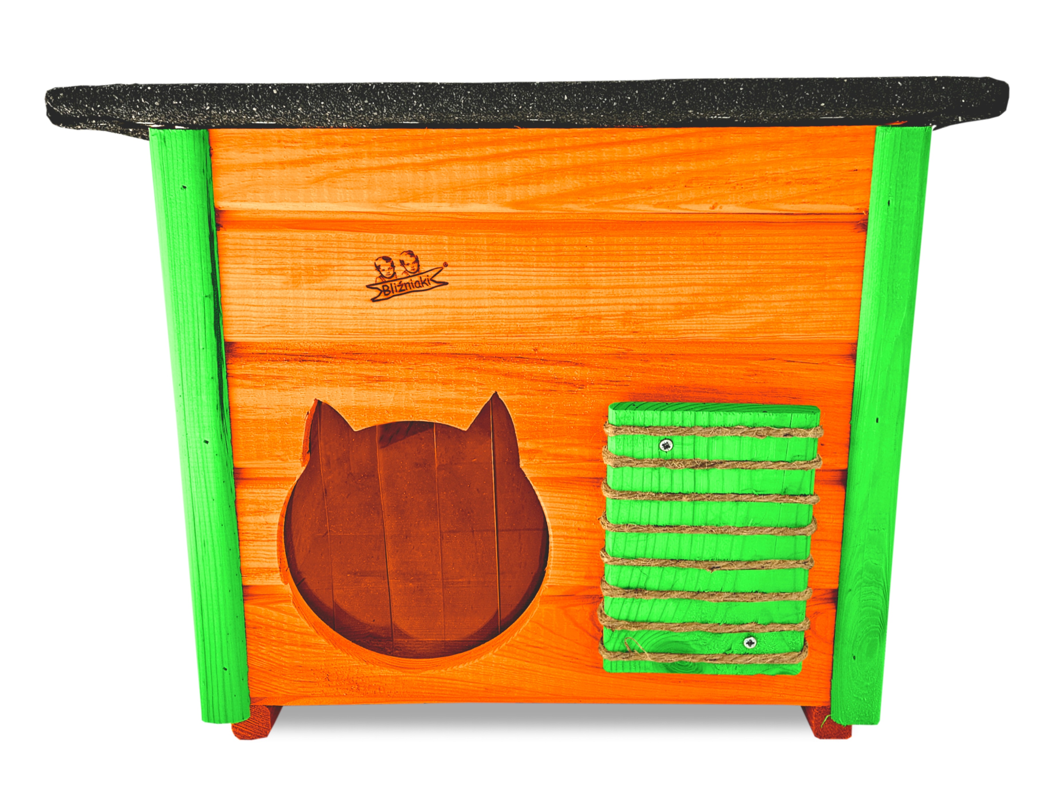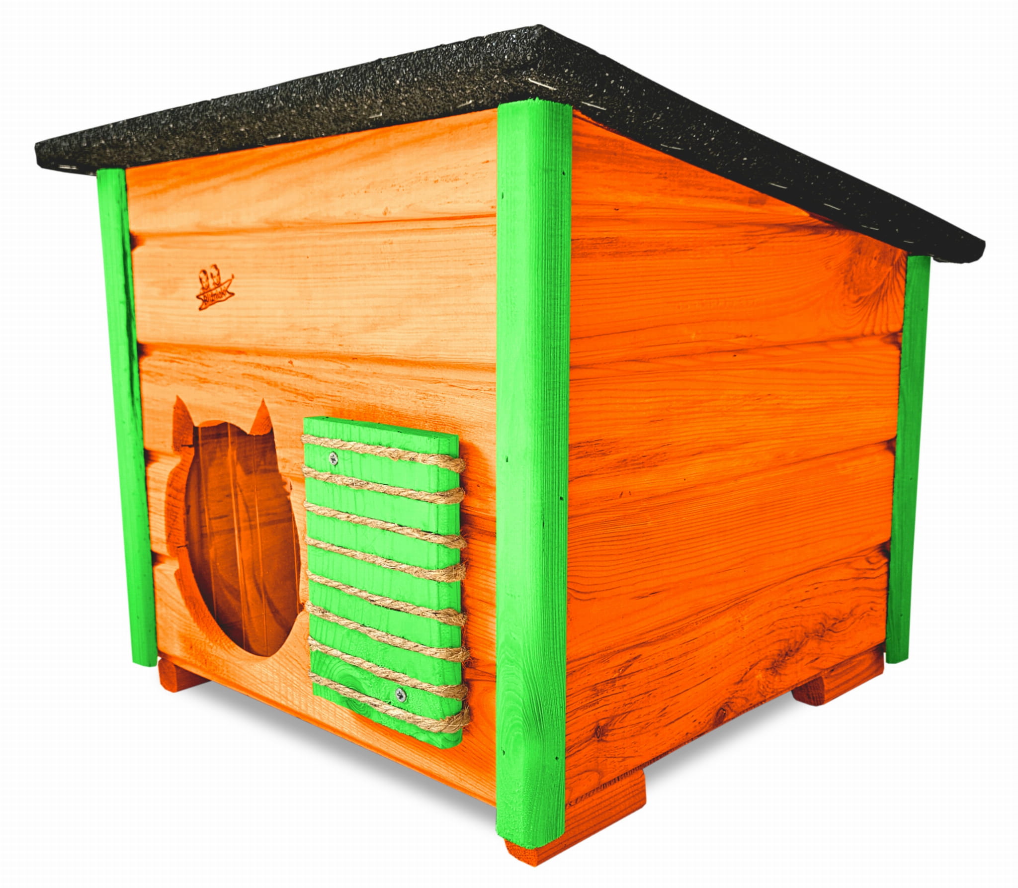 Poddane impregnacji drewno sprawia, że oferowana przez nas DOMEK DLA KOTA jest odporna na szkodliwe działanie wody oraz wilgoci, promieni UV, a także grzybów i pleśni a przy tym ma piękny olchowy kolor drewna.