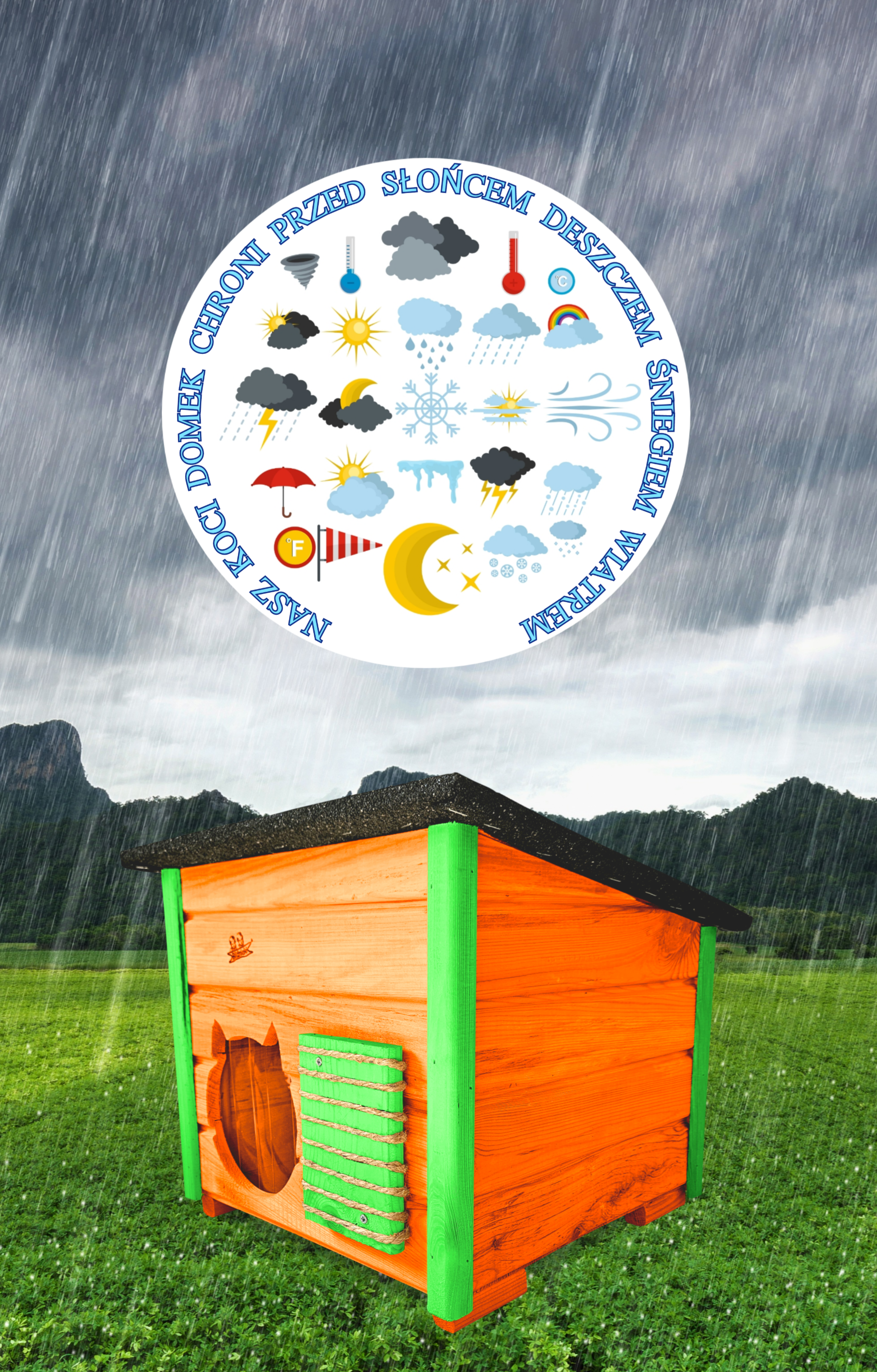Produkt DOMEK DLA KOTA został zaimpregnowany środkiem na bazie wody, co czyni go dekoracyjnym a także przyjaznym dla przyrody.
