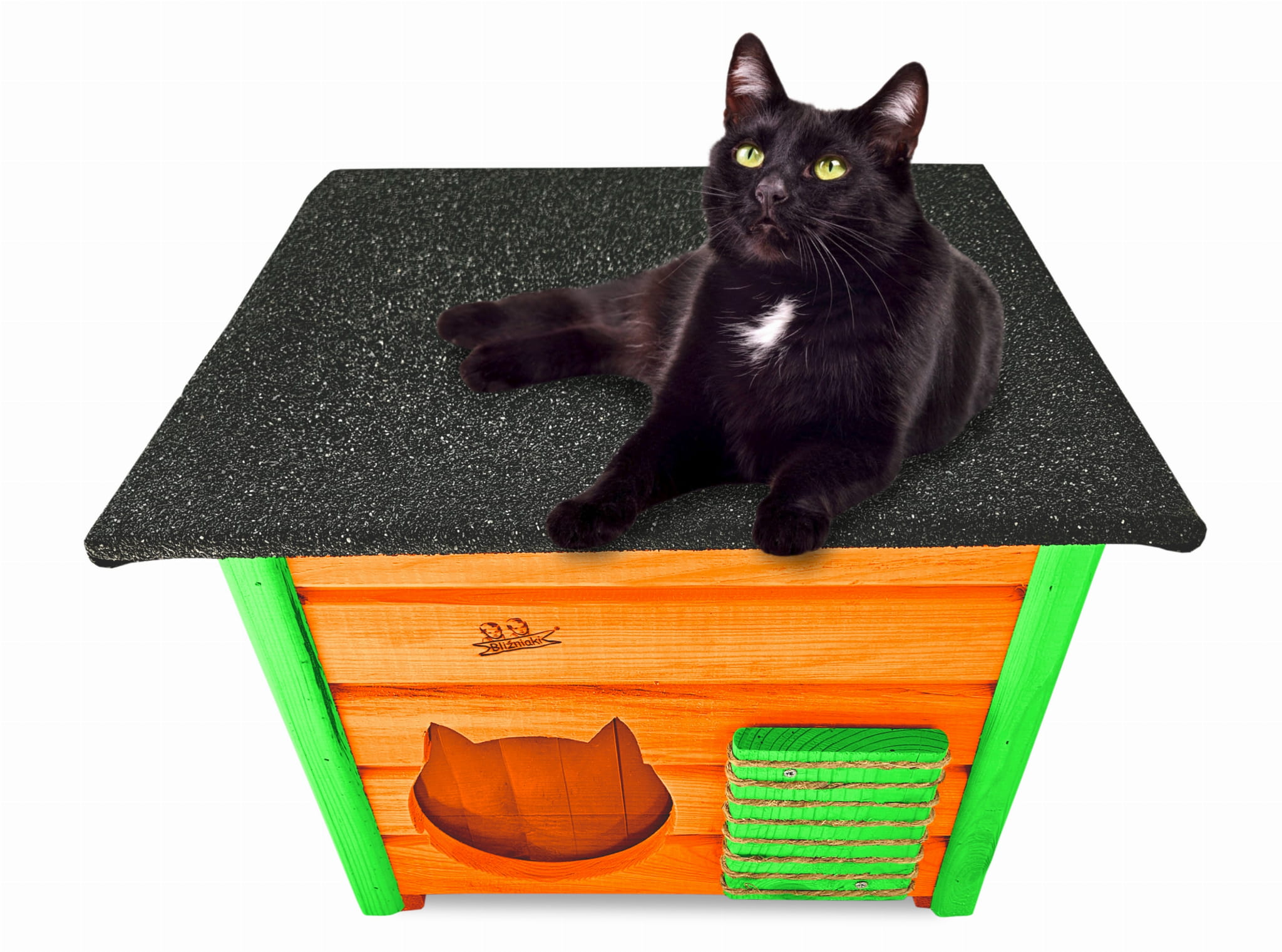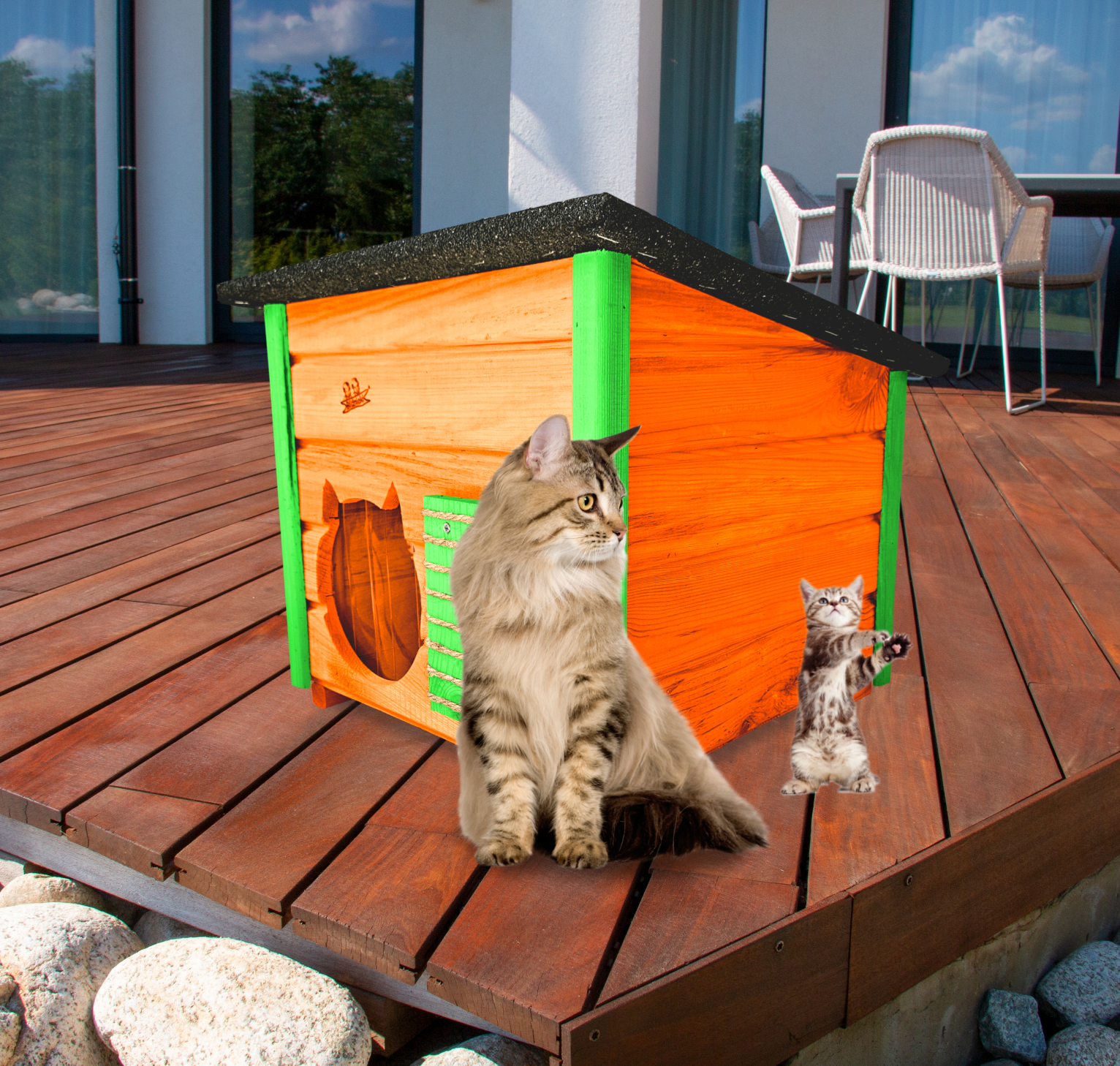 Domek zapewni kotom spokojne, komfortowe miejsce odpoczynku i schronienie przed zimnem oraz upałami.