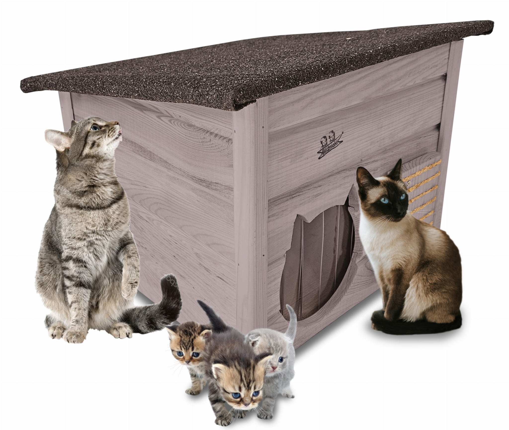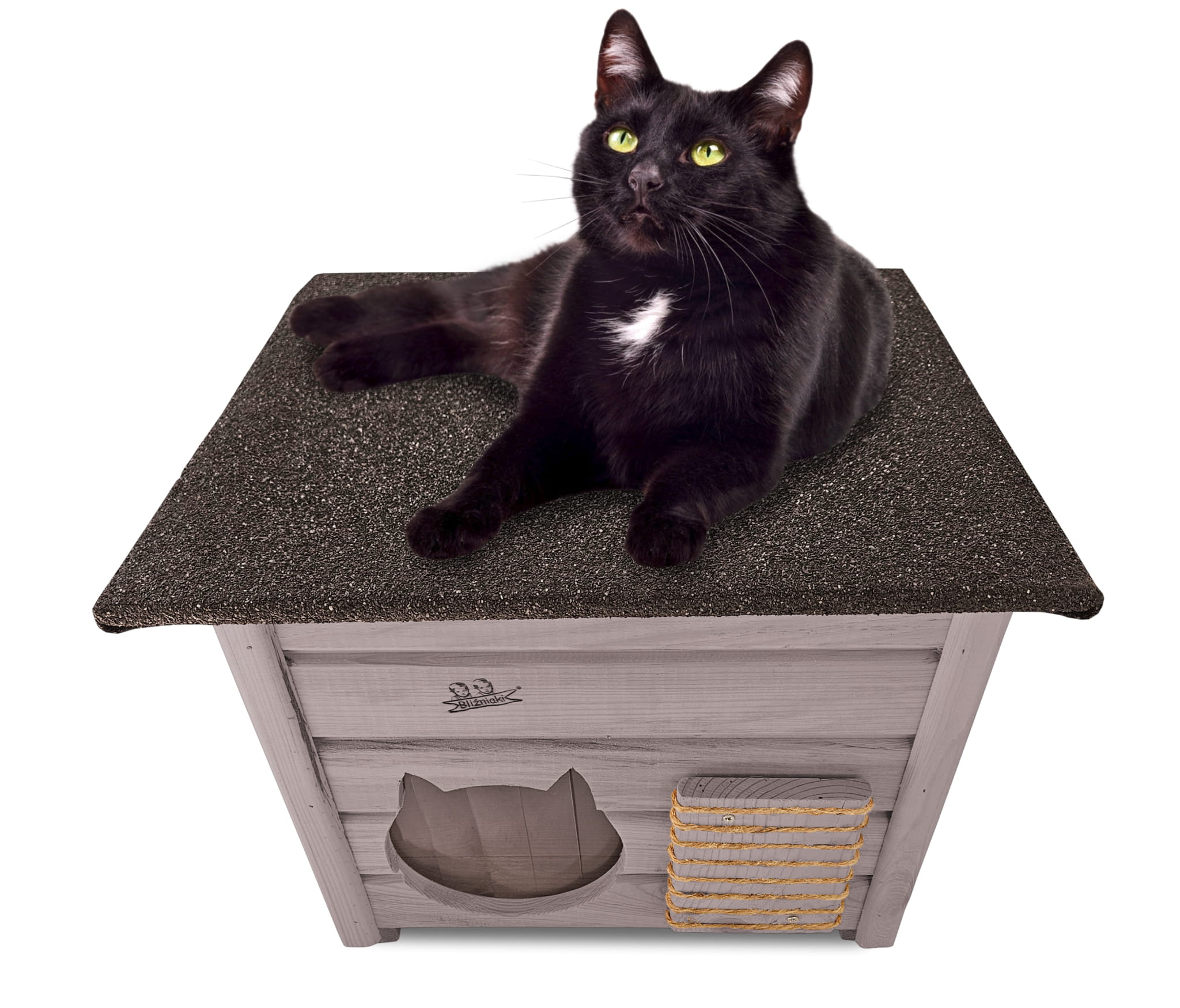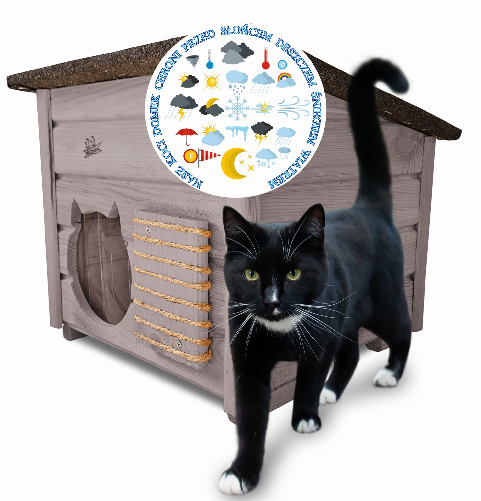 Domek zapewni kotom spokojne, komfortowe miejsce odpoczynku i schronienie przed zimnem oraz upałami.