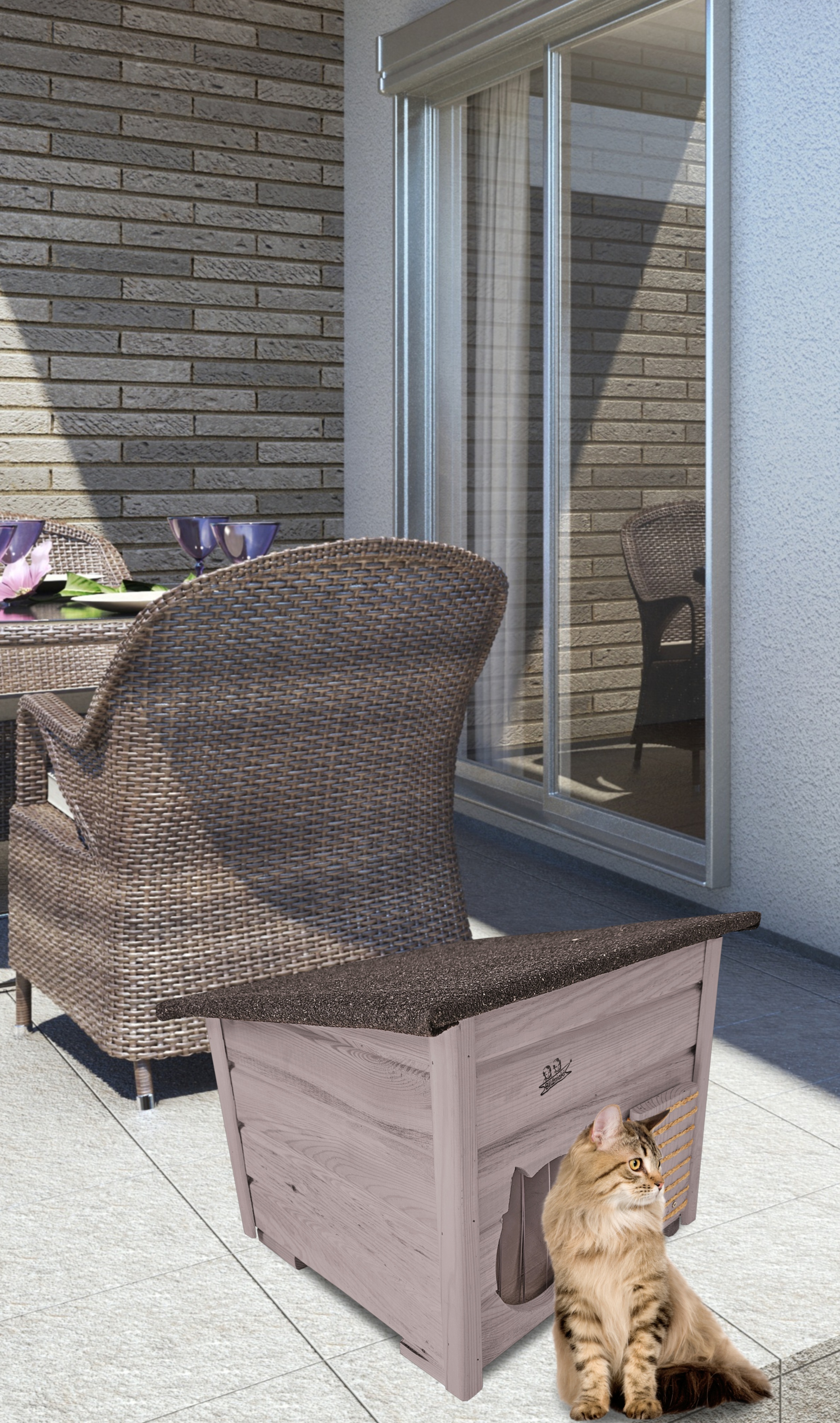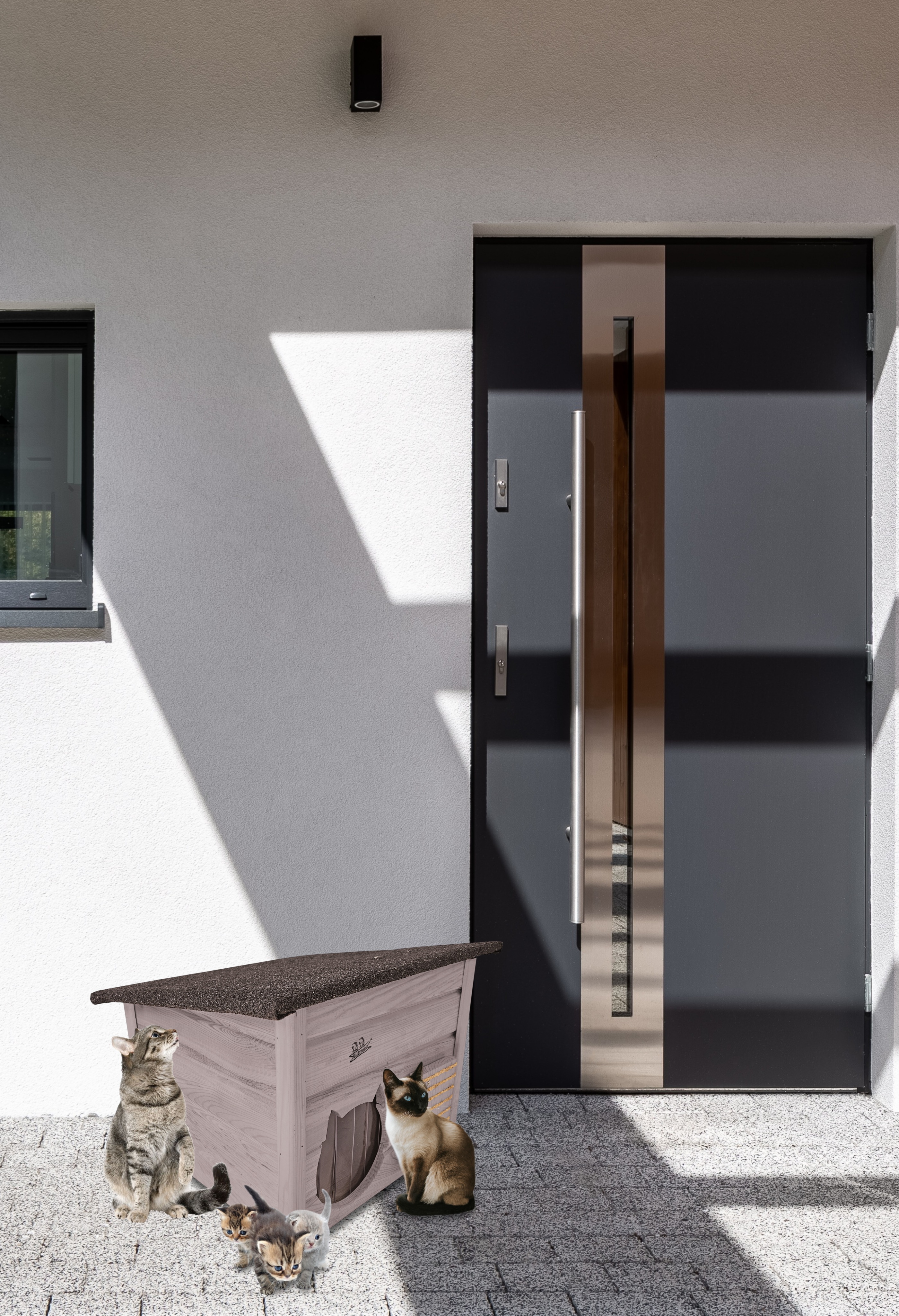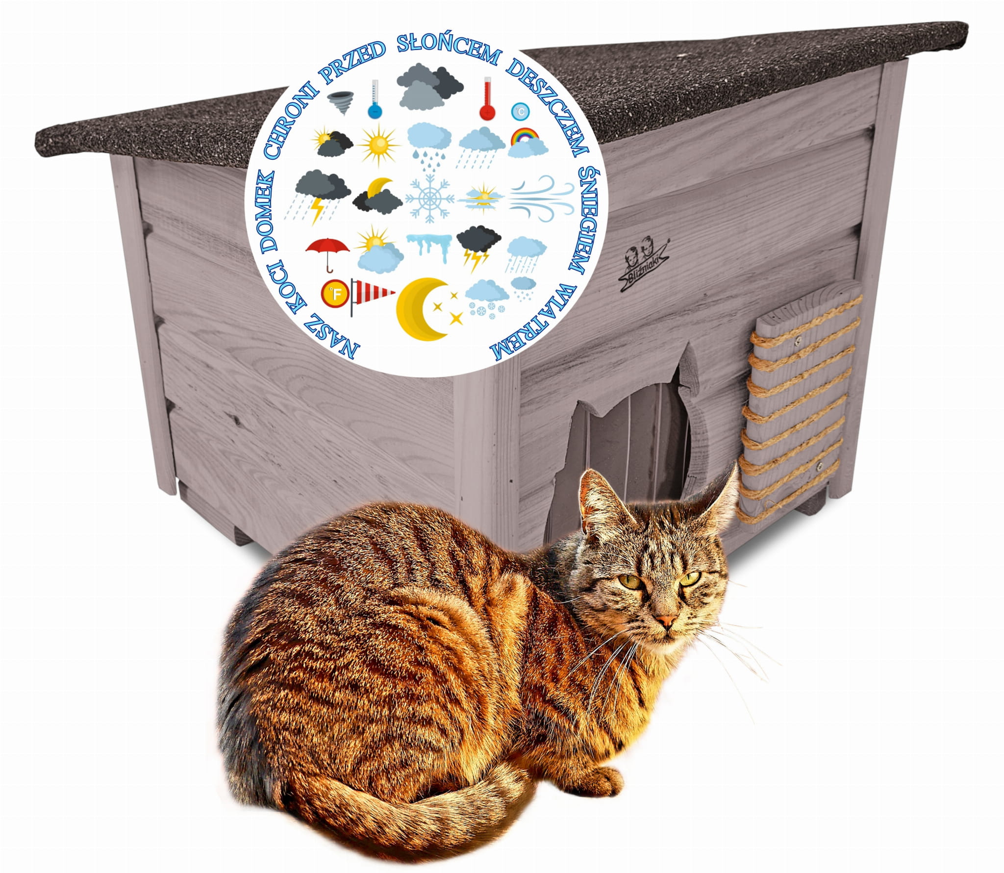 Domek zapewni kotom spokojne, komfortowe miejsce odpoczynku i schronienie przed zimnem oraz upałami.