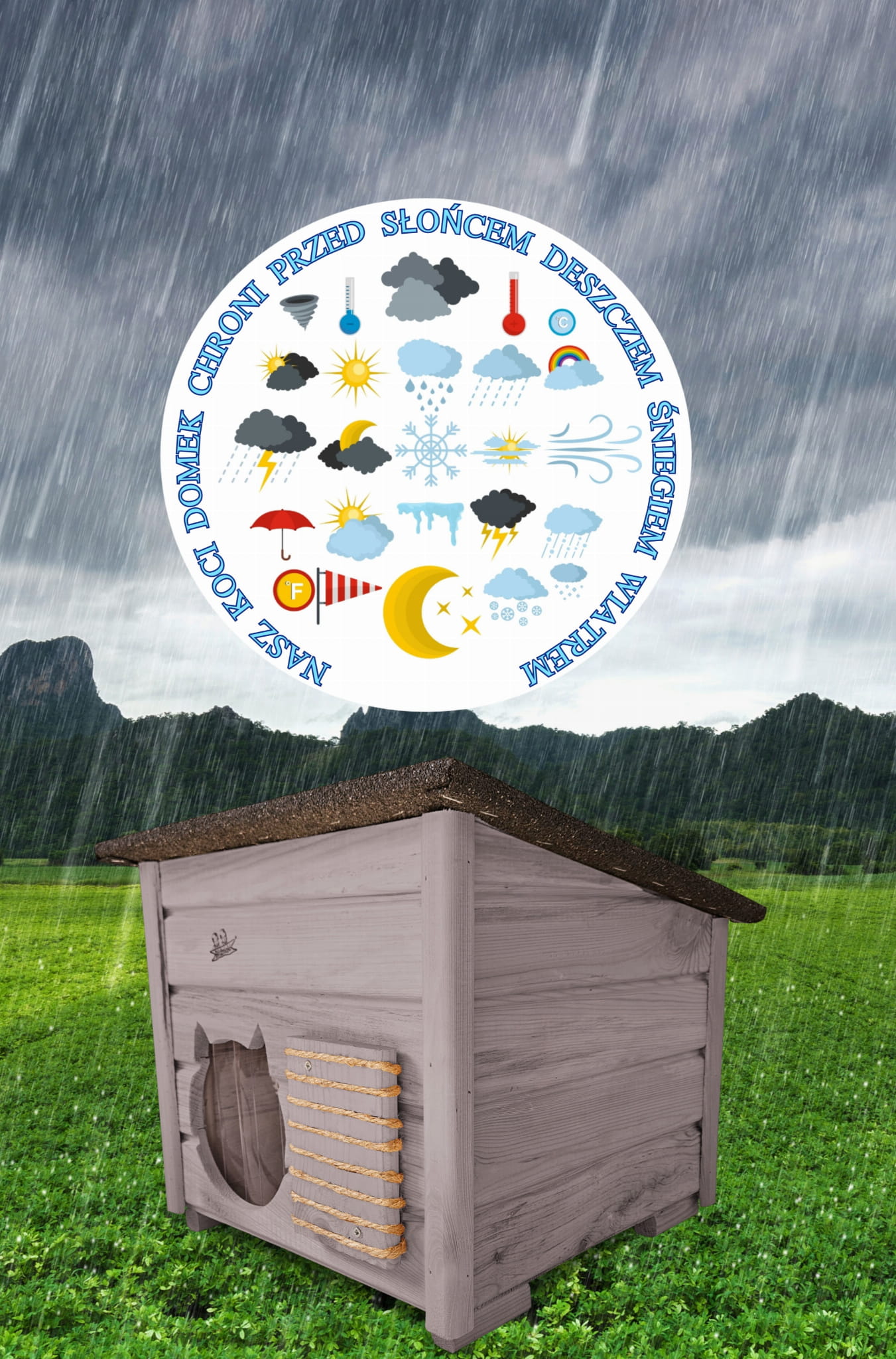 Produkt DOMEK DLA KOTA został zaimpregnowany środkiem na bazie wody, co czyni go dekoracyjnym a także przyjaznym dla przyrody.