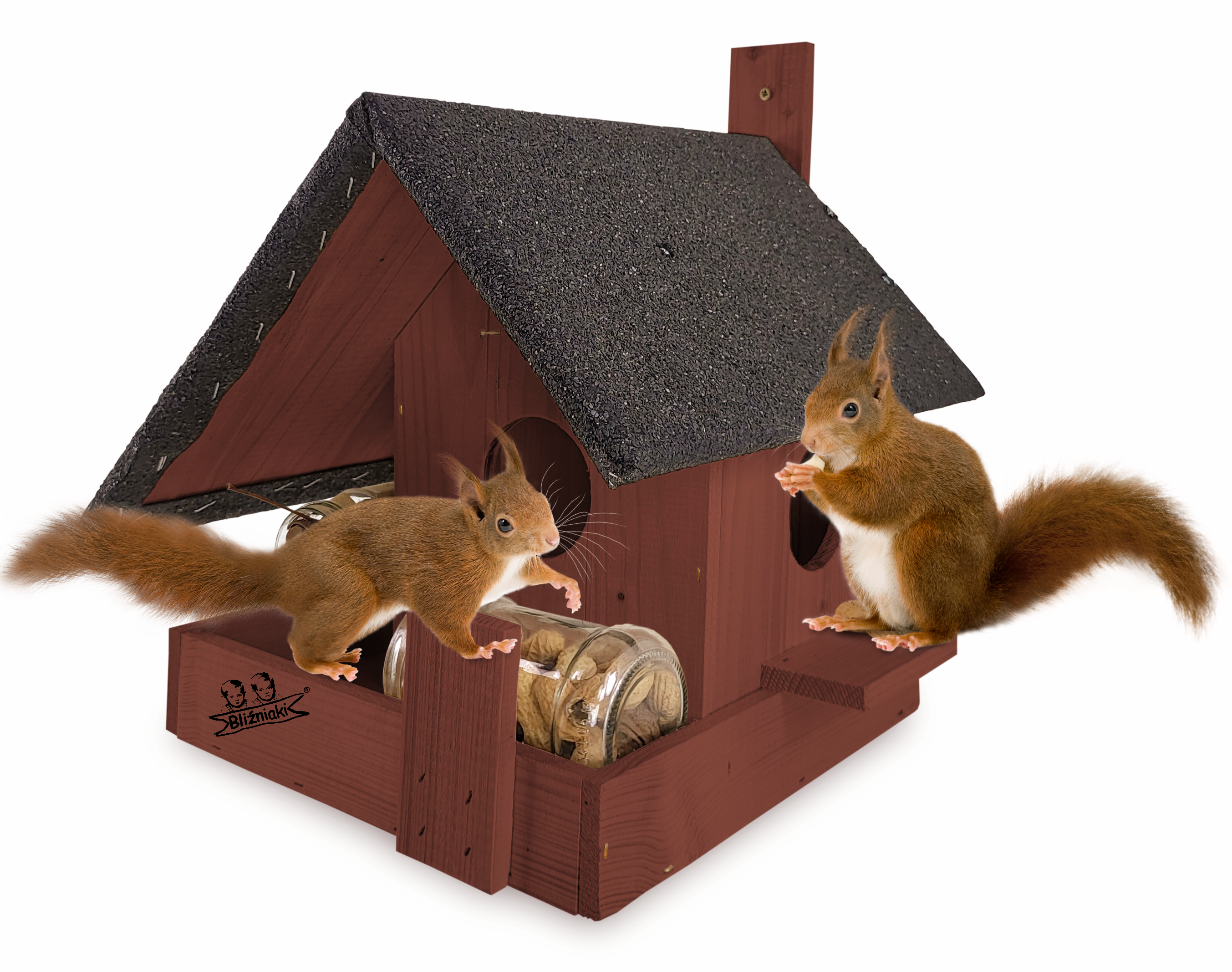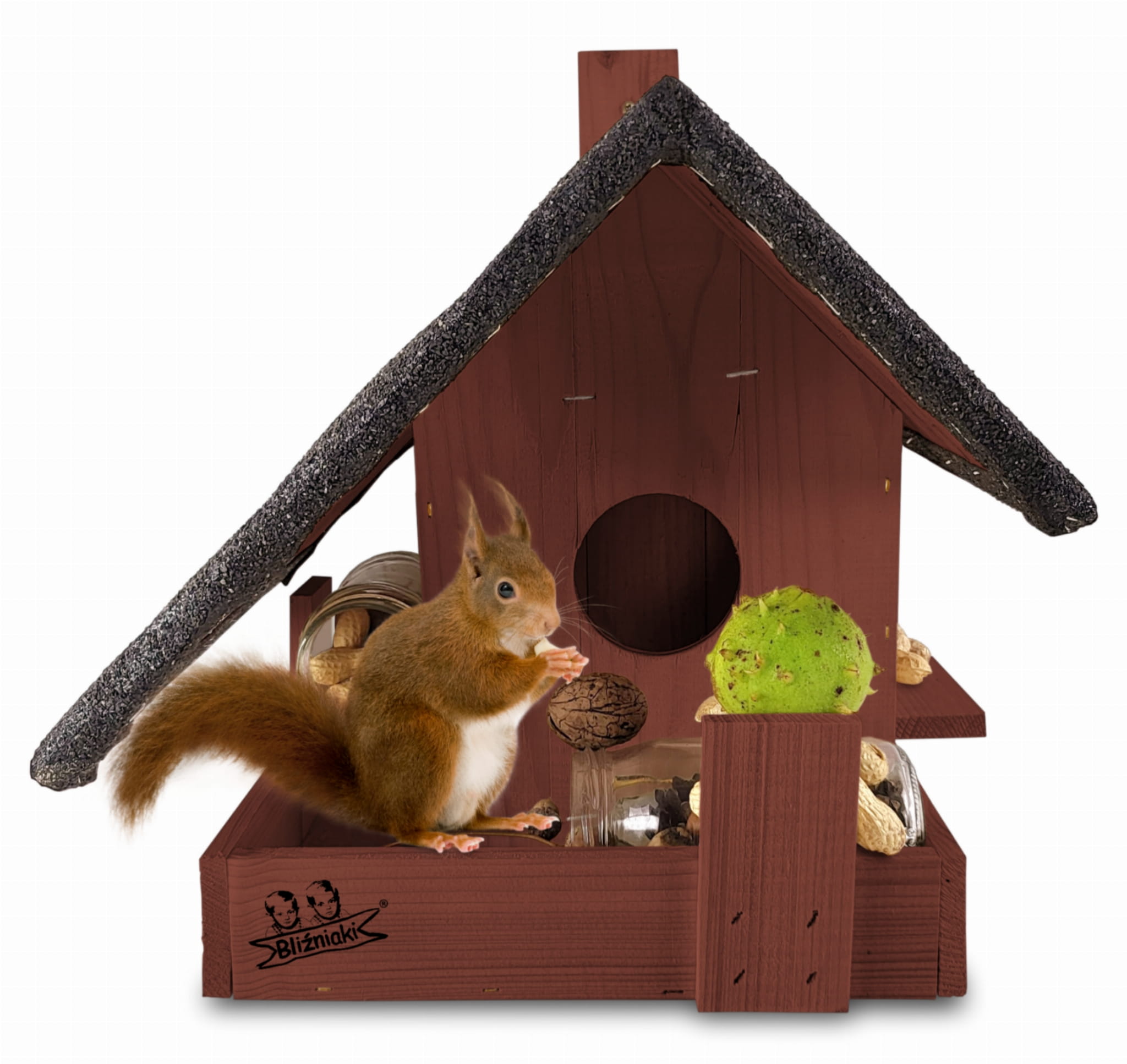 - Domek jest przystosowany na tradycyjne opakowanie słoika z orzechami