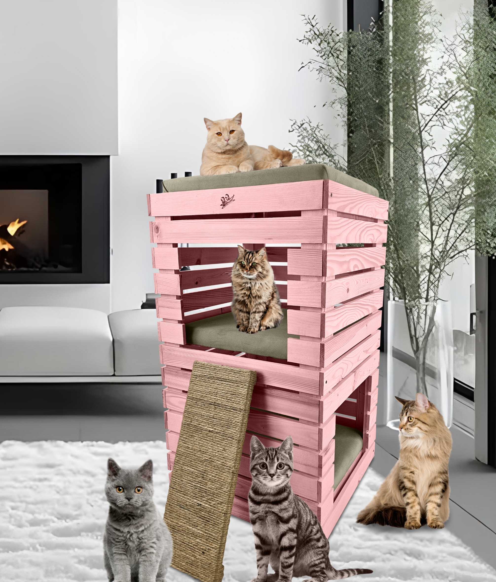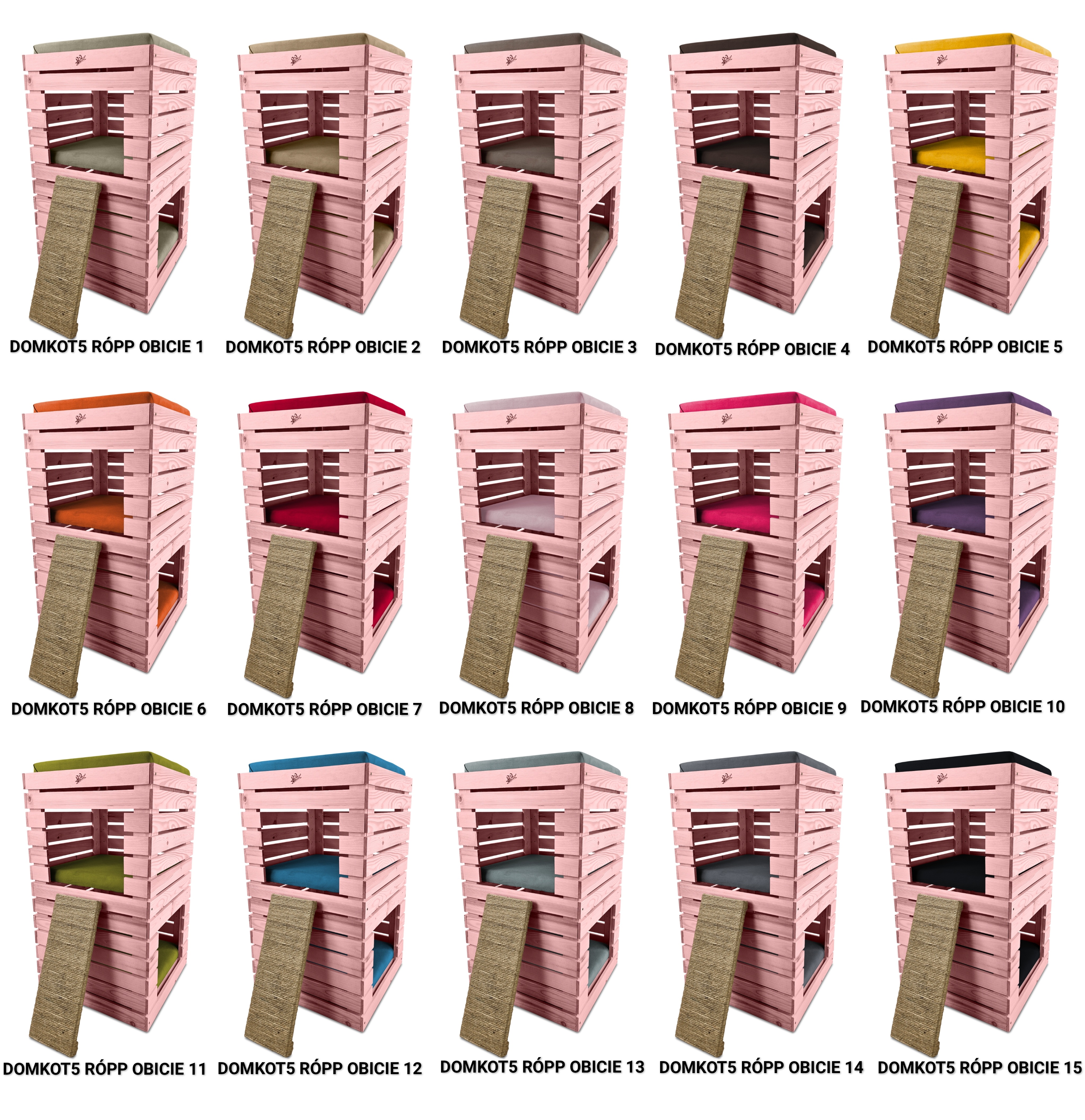 Domek dla kota kotów kotków legowisko piętrowe wieża drapak DOMKOT5 RÓPP OBICIE 1