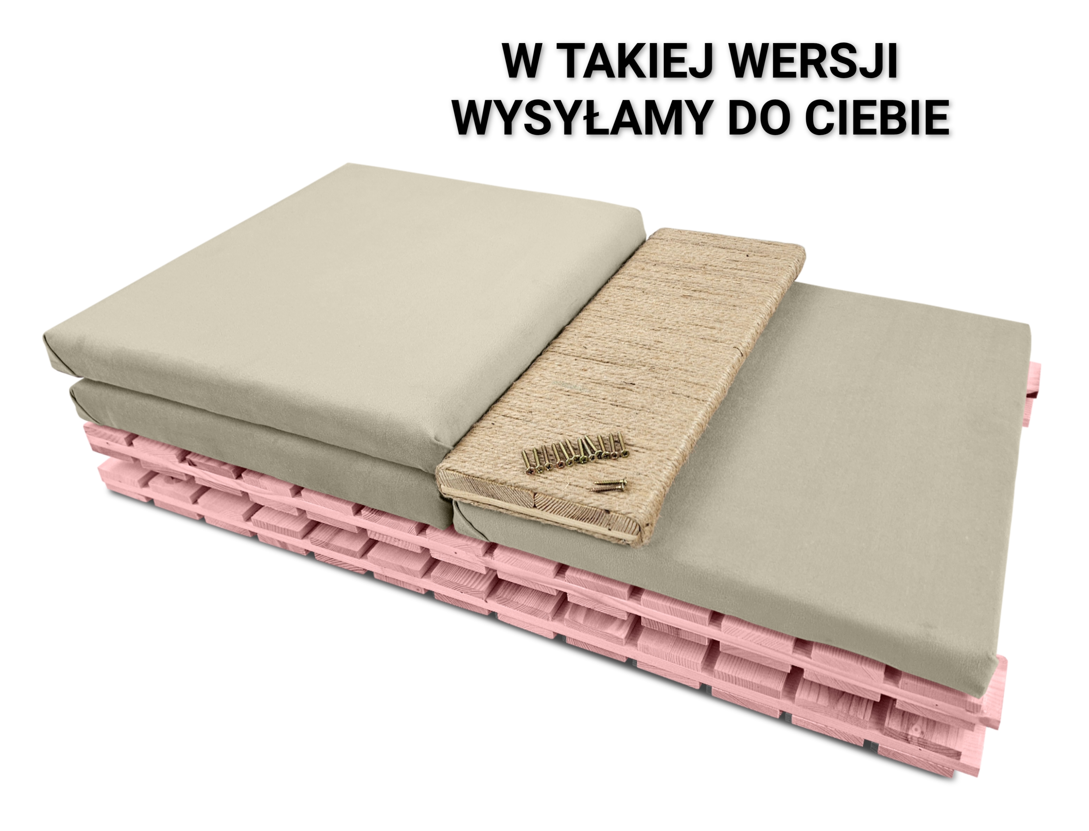 - Budka w kolorze JASNORÓŻOWYM, posłanie w kolorze BEŻOWYM