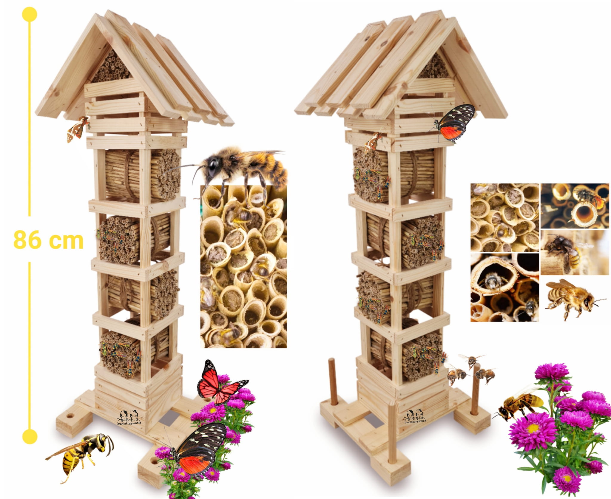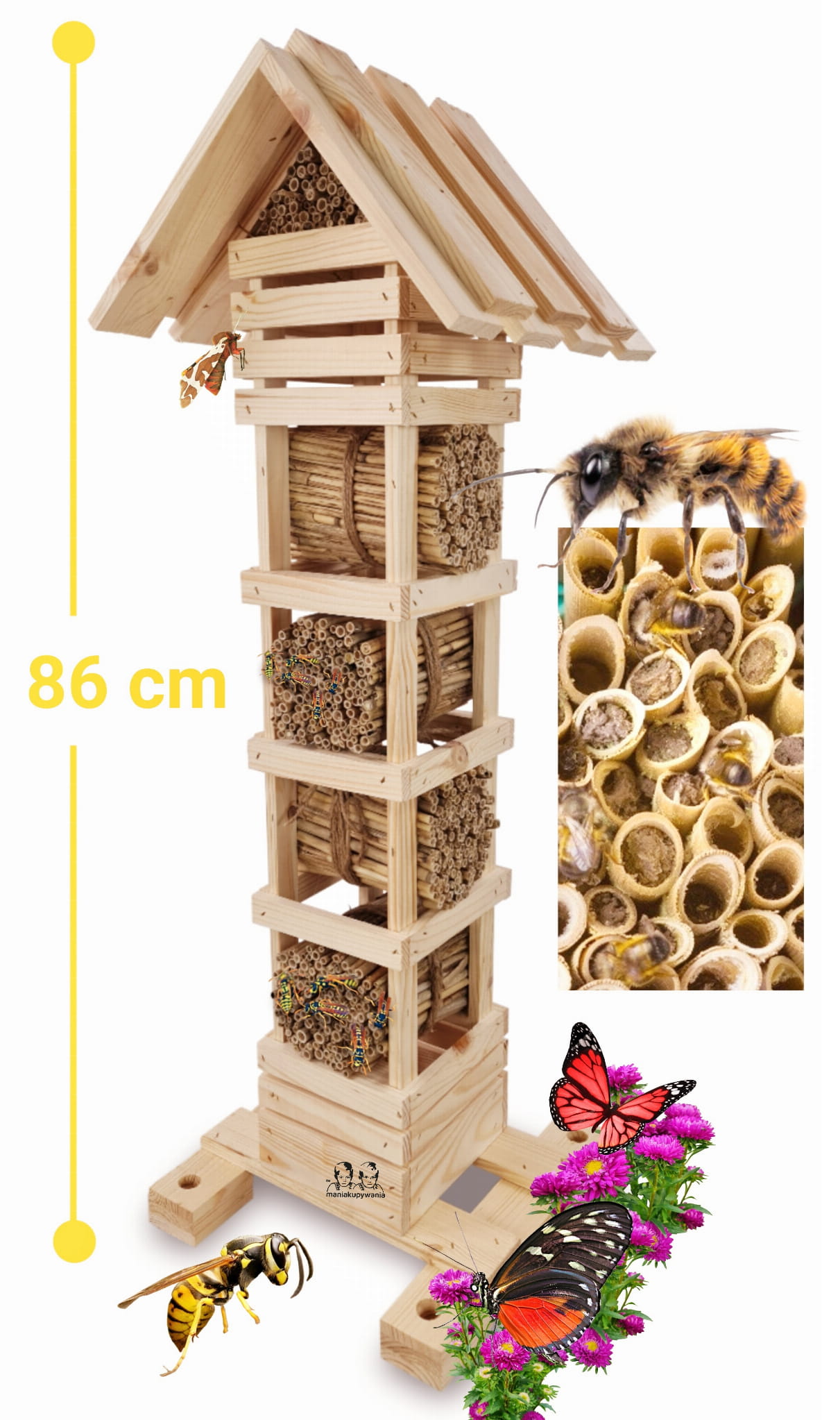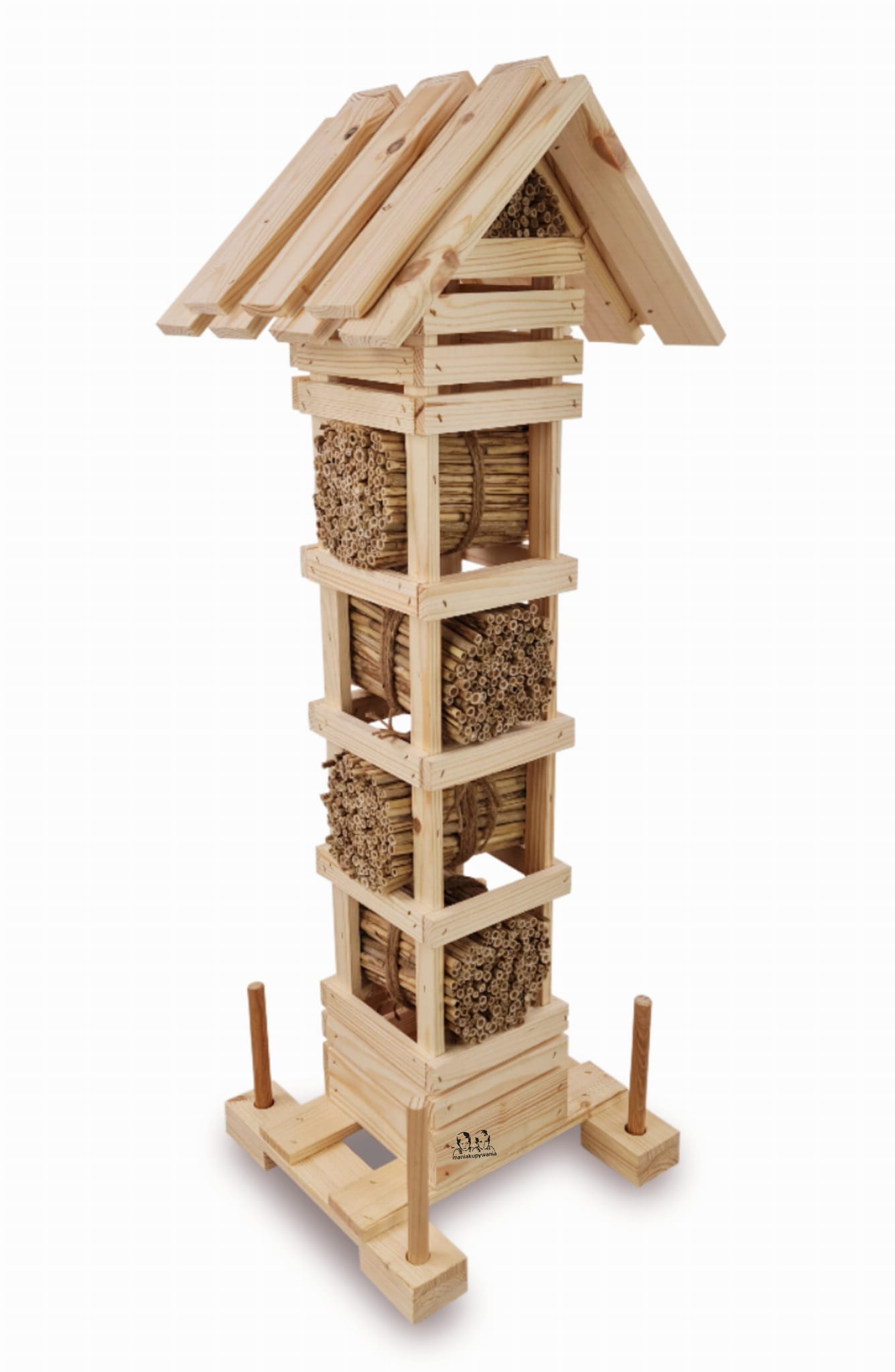 Domek dla owadów, insekt z kotwami drewniany wysoki domek 86 cm dla pszczoły murarki gniazda dla pszczół INS85 N