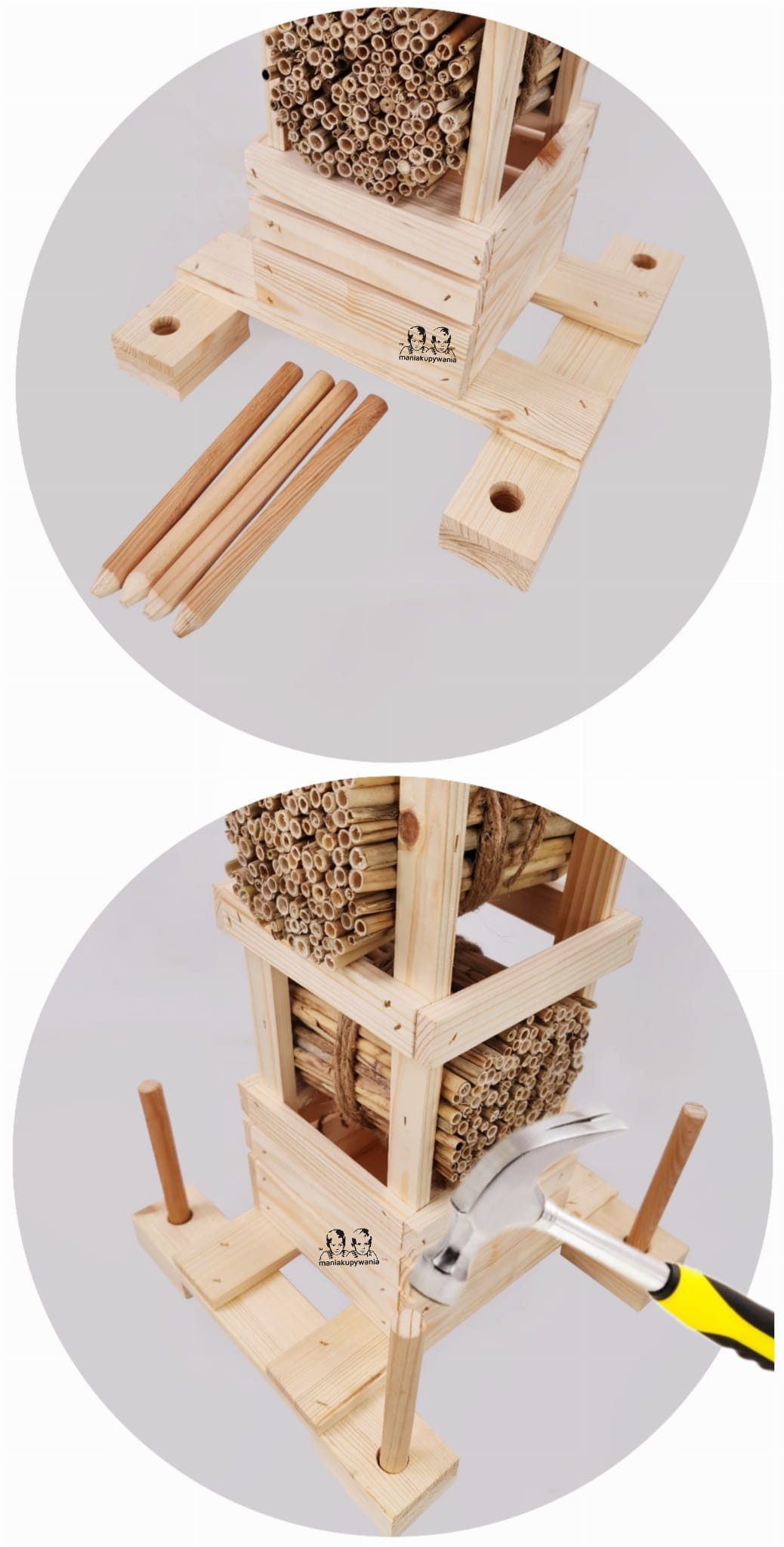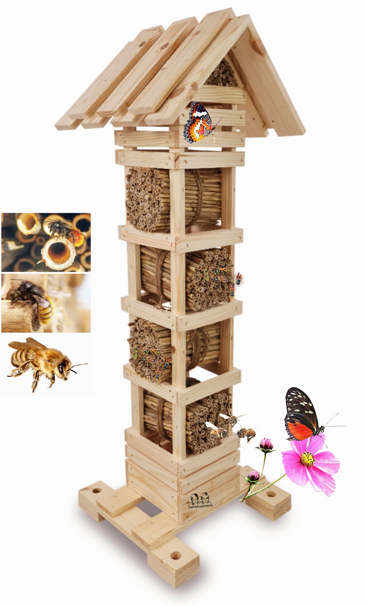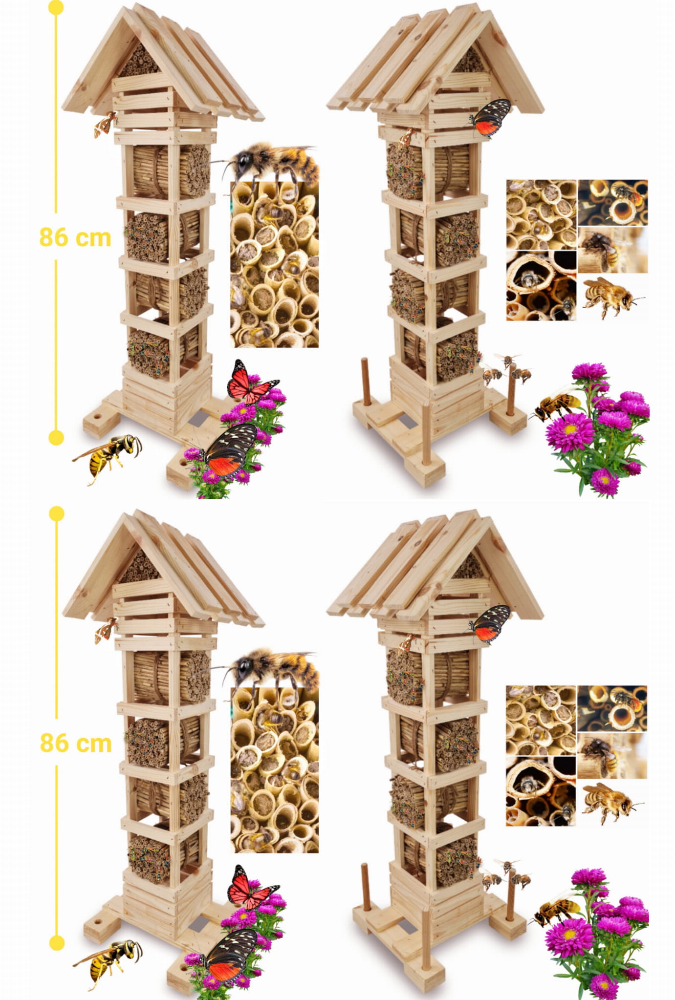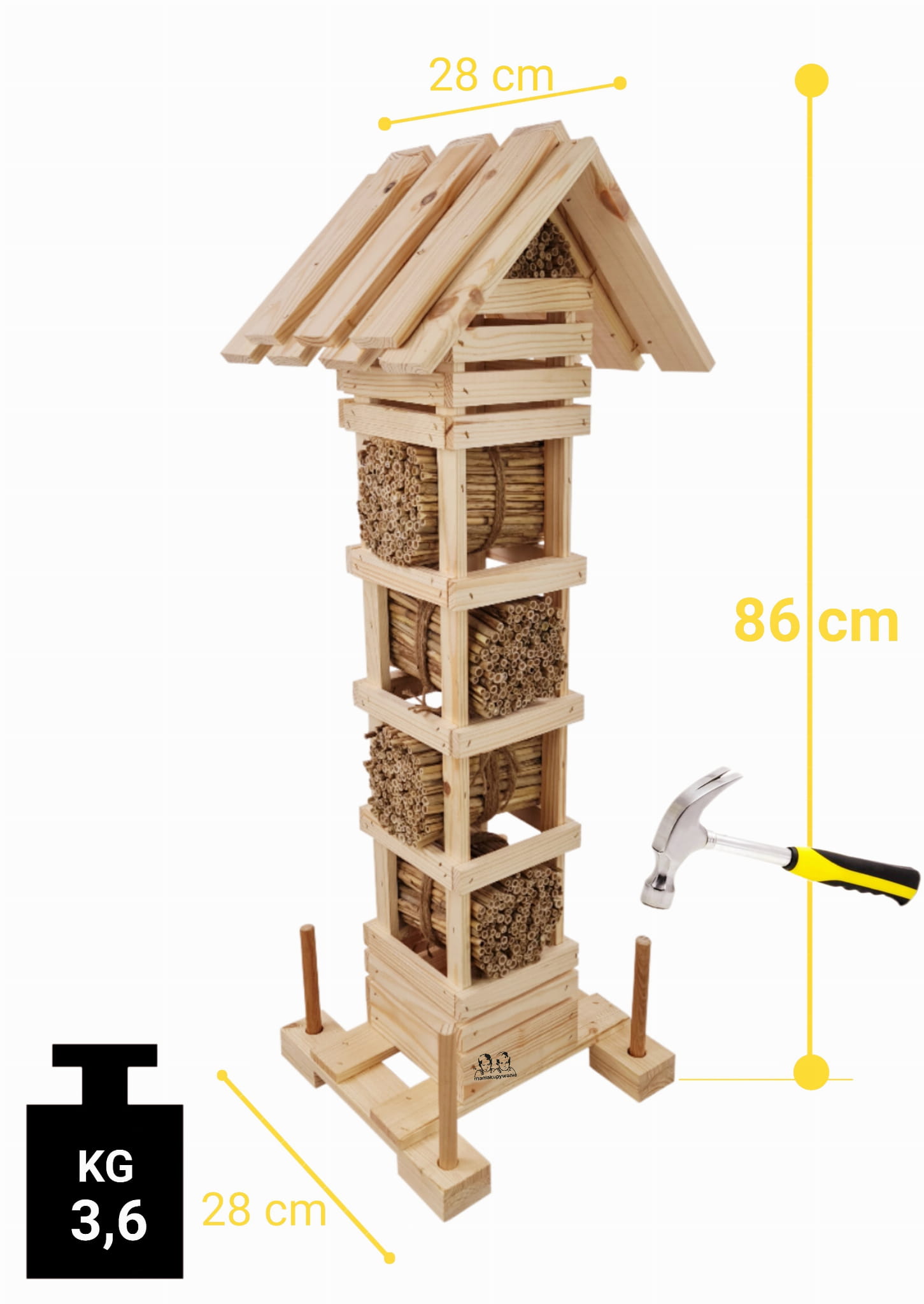 Domek dla owadów, insekt z kotwami drewniany wysoki domek 86 cm dla pszczoły murarki gniazda dla pszczół INS85 N