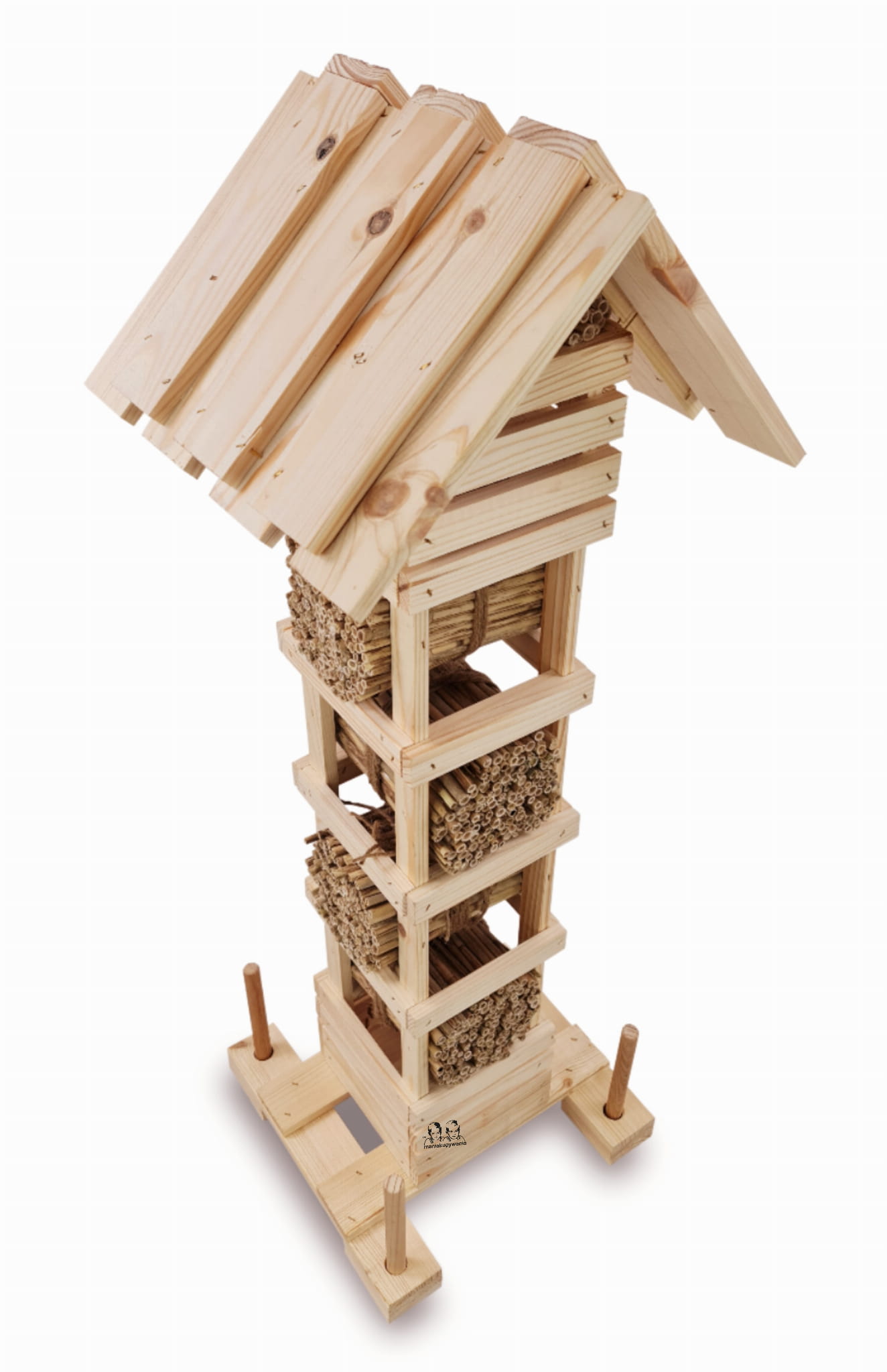 - Cztery piętra składające się na kompletny domek zapewnią odpowiednią ilość miejsca dla owadów w Twojej okolicy