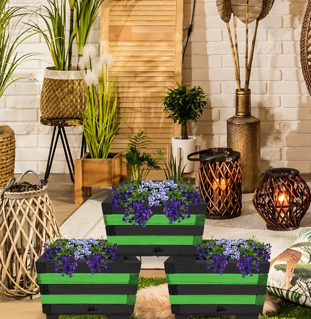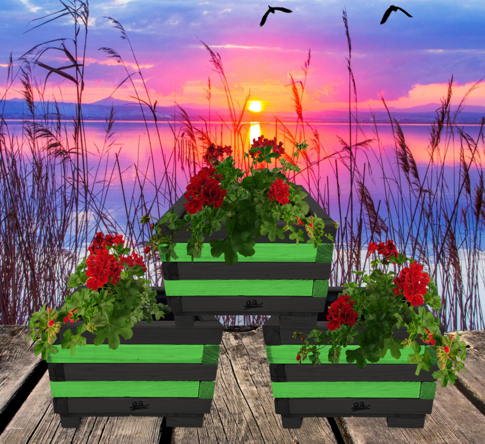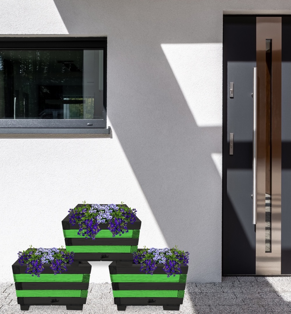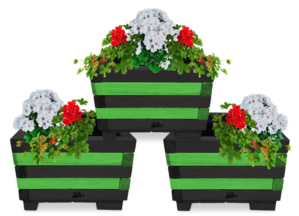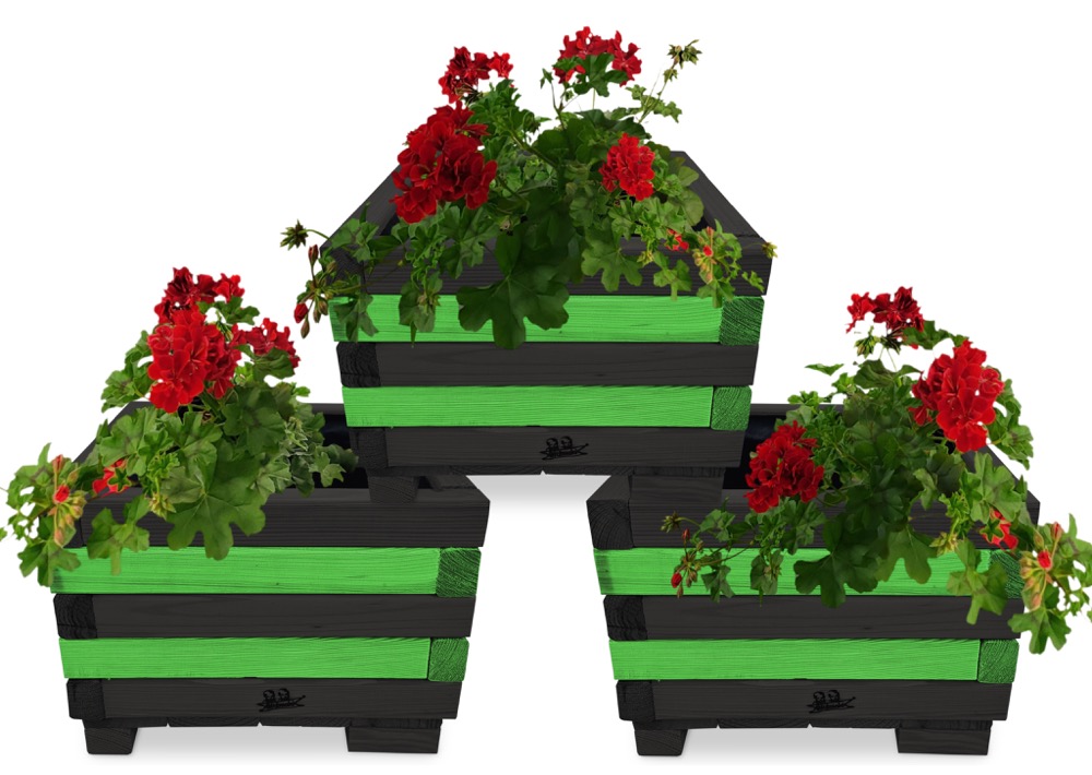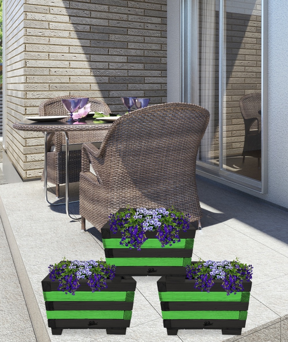 Donica z drewna balkonowa doniczki kwadratowe 3 szt kaskada kwiatowa kwietnik ozdobny do domu i ogrodu KASKADA4 CZ ZZ