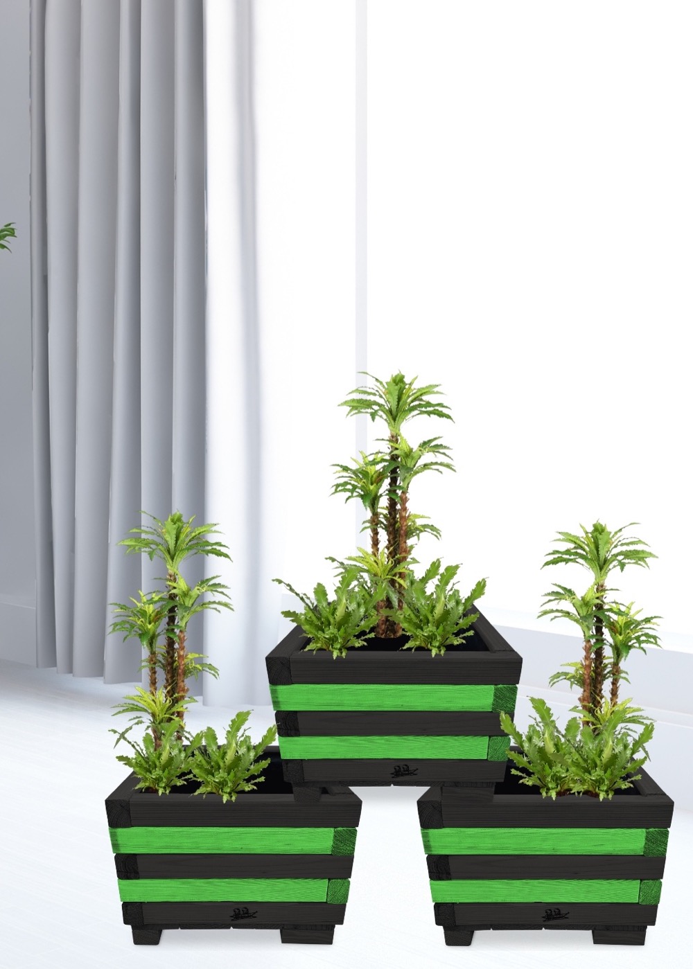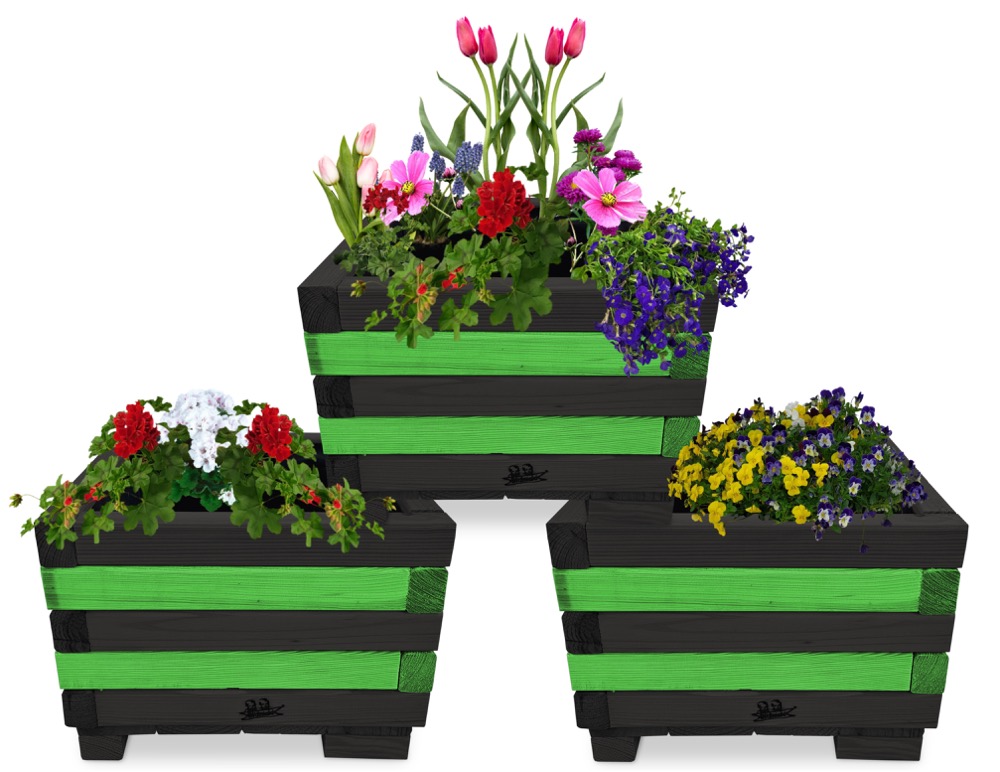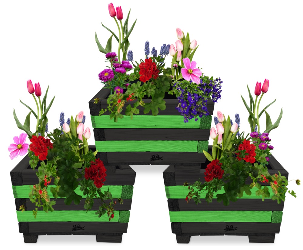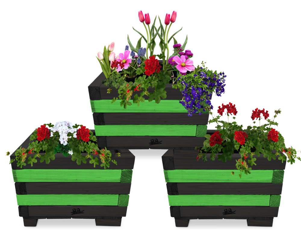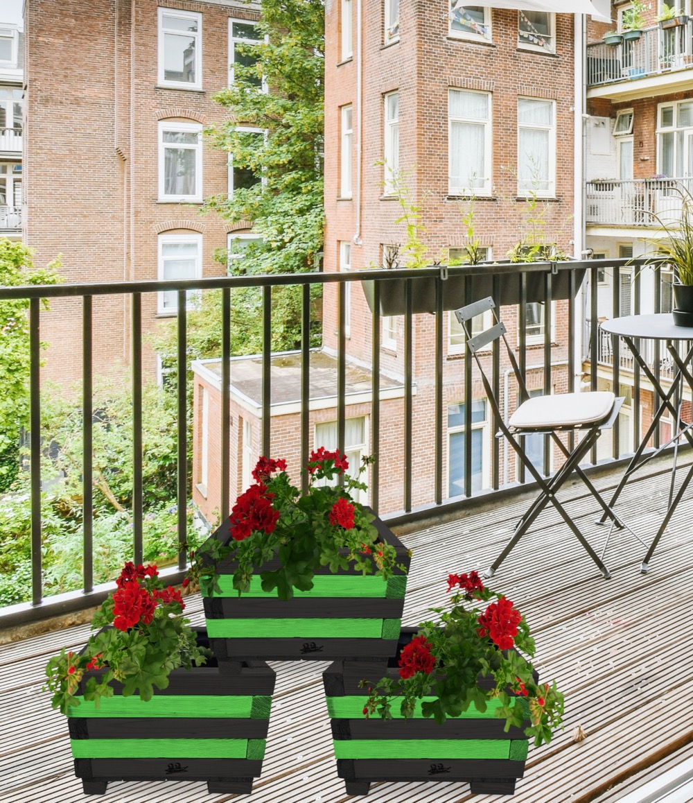 Donica z drewna balkonowa doniczki kwadratowe 3 szt kaskada kwiatowa kwietnik ozdobny do domu i ogrodu KASKADA4 CZ ZZ
