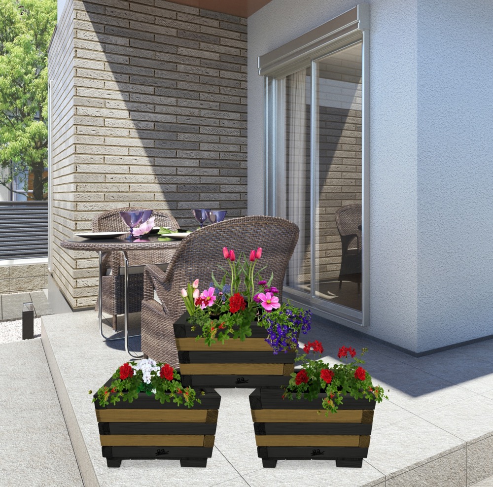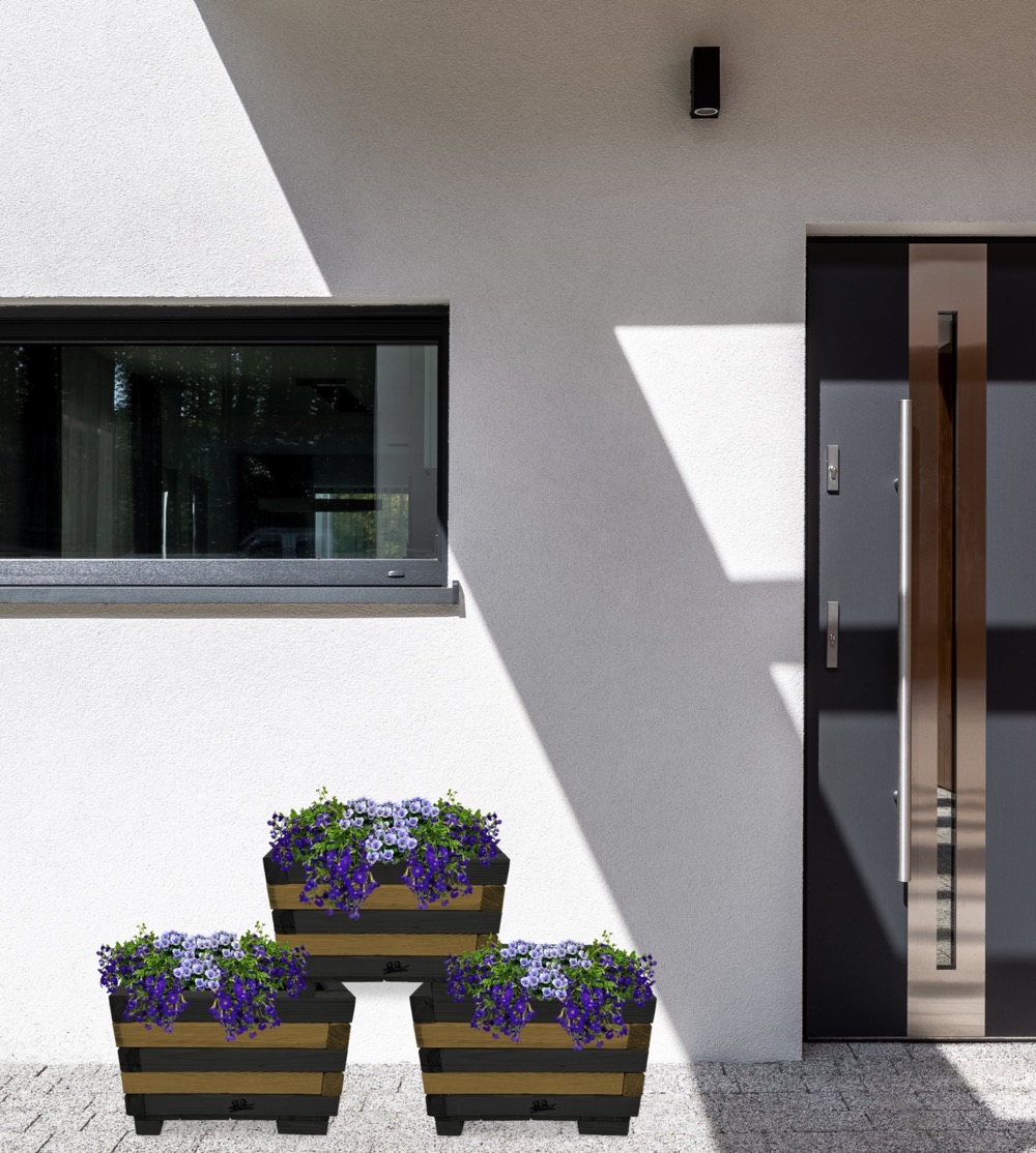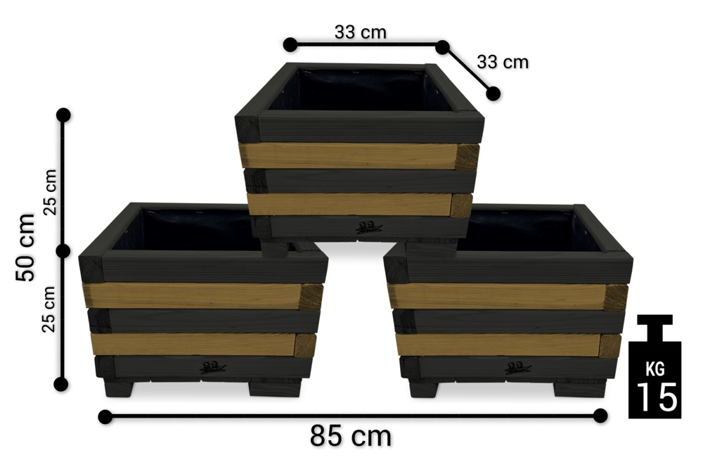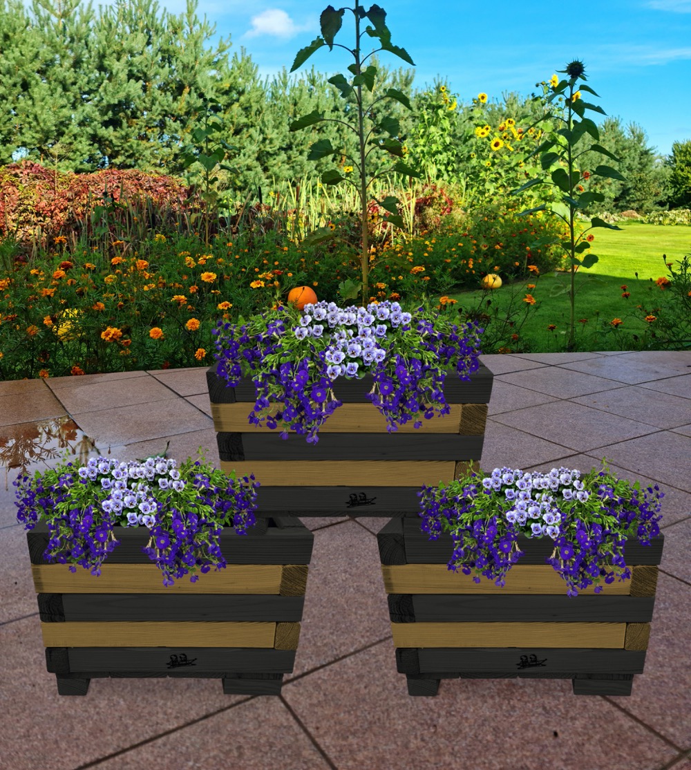 Donica z drewna doniczki kwadratowe 3 szt. kaskada kwiatowa kwietnik ozdobny do domu i ogrodu KASKADA4 CZ DEB